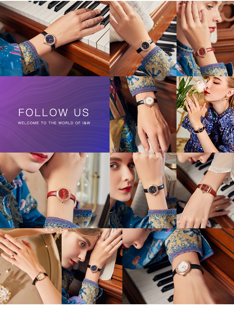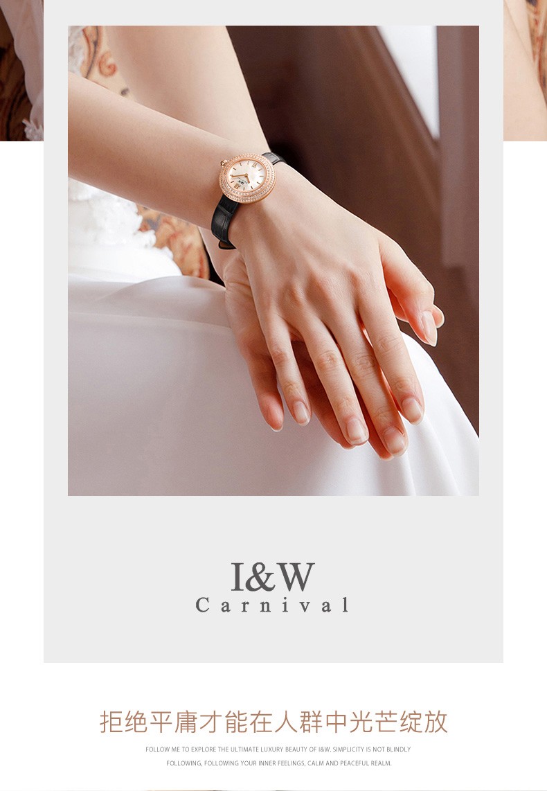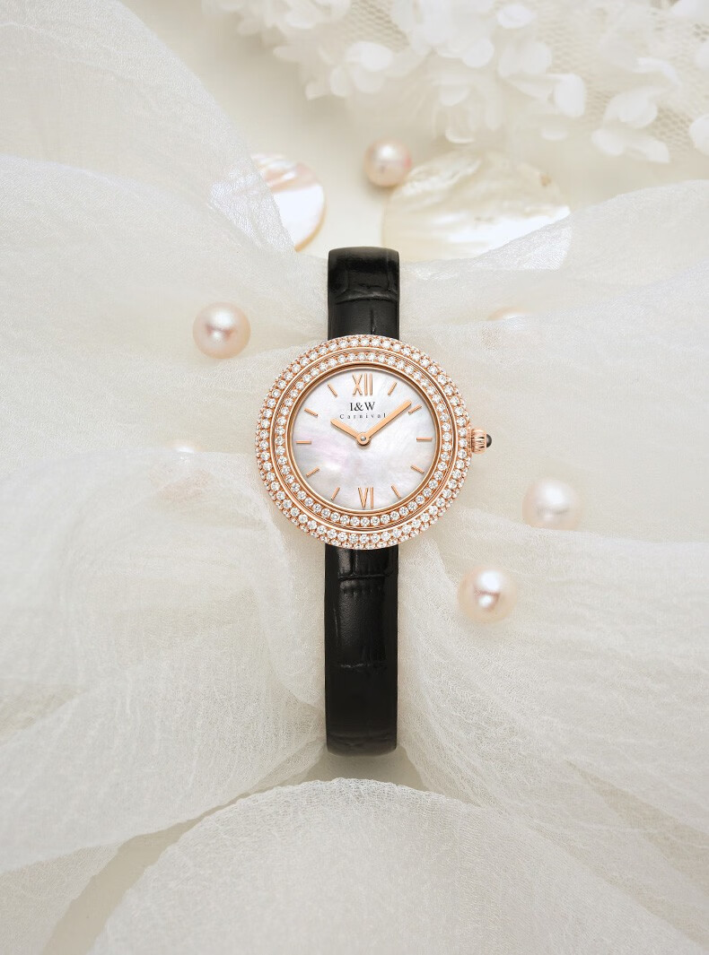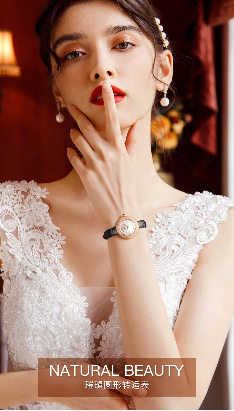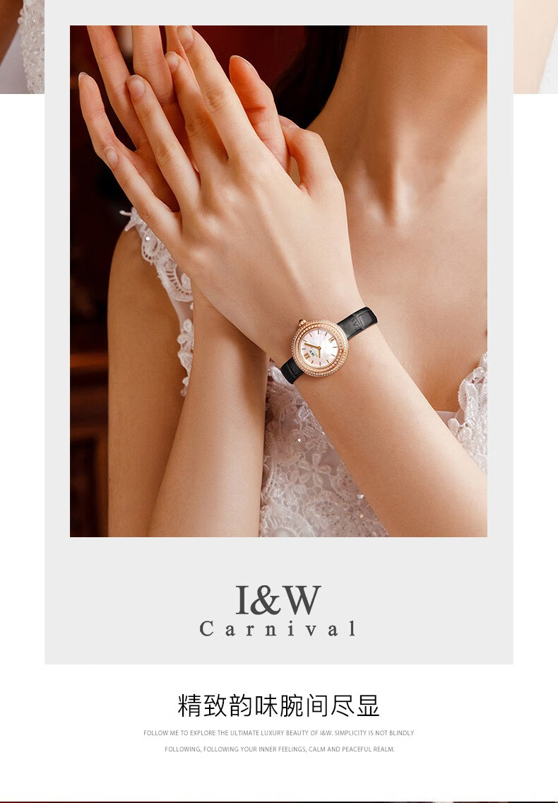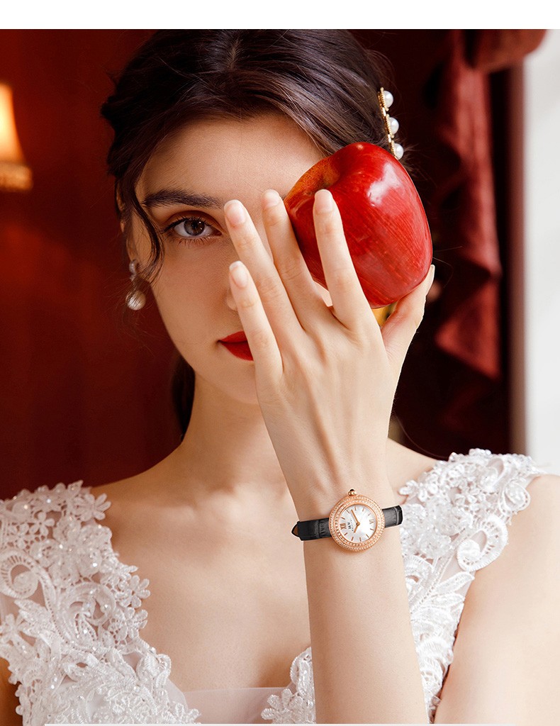 爱沃驰瑞士达芬奇系列璀璨星空轻奢石英手表女士表七夕生日礼物送女友 玫壳白盘|红皮带