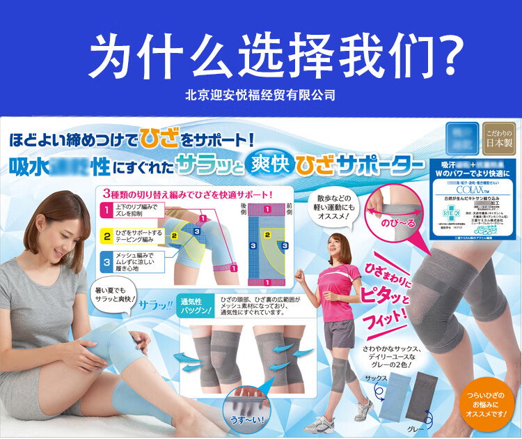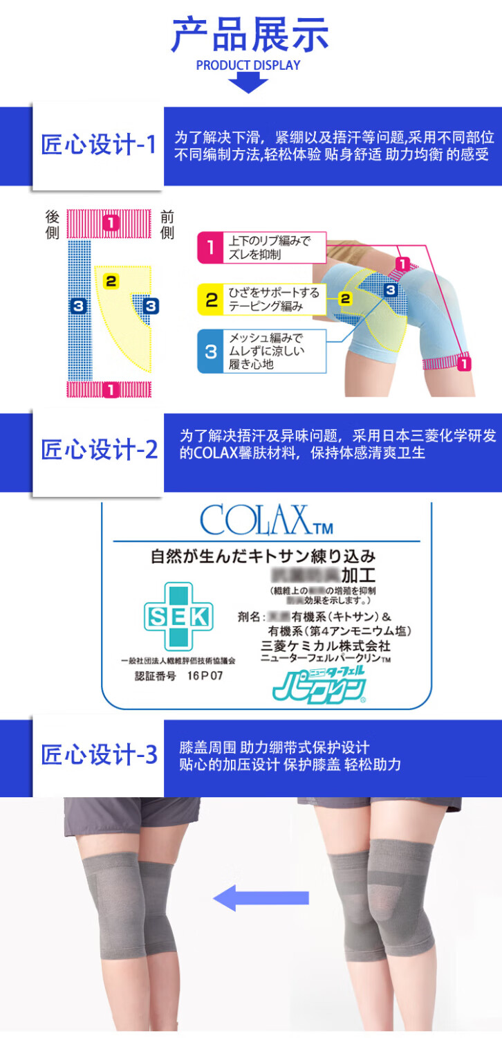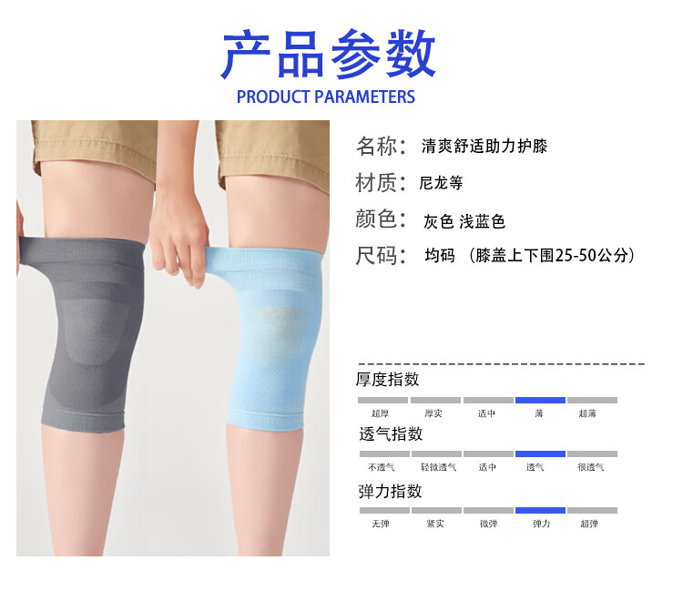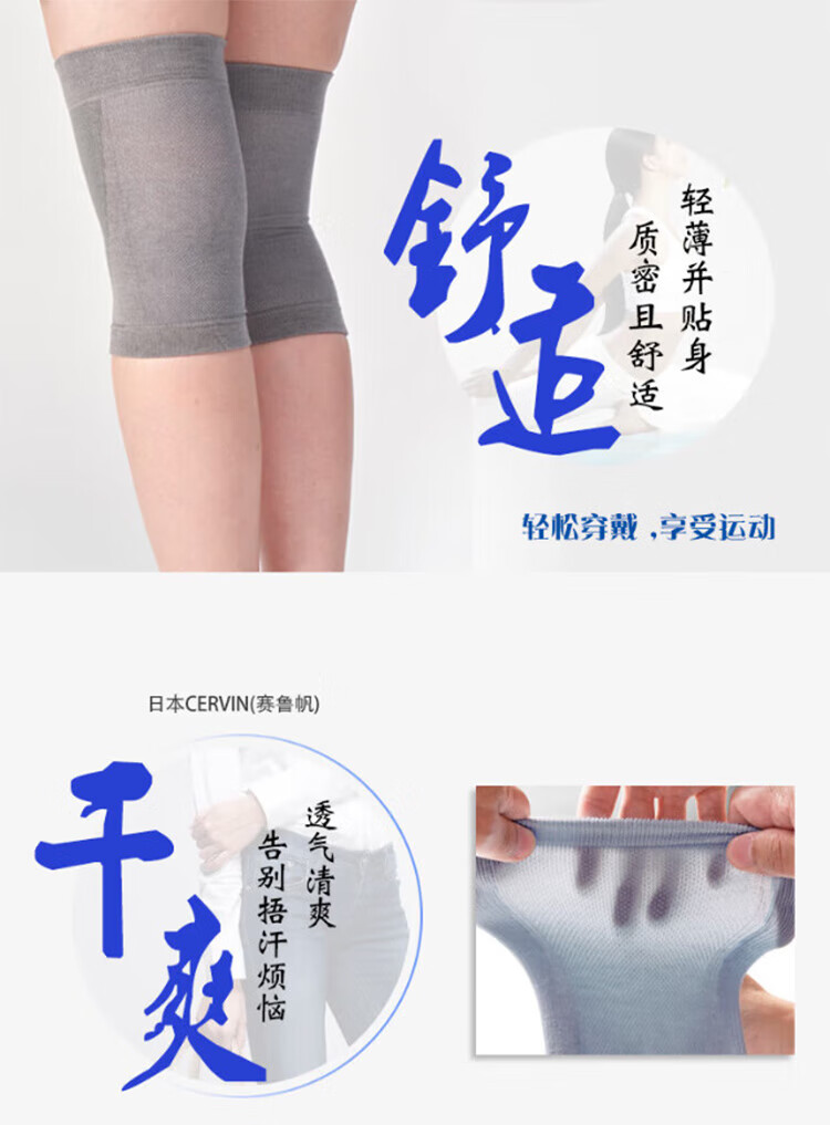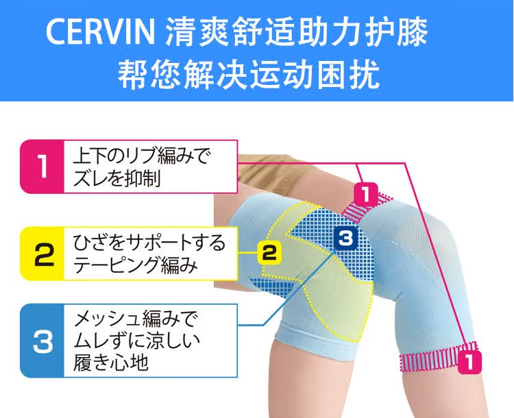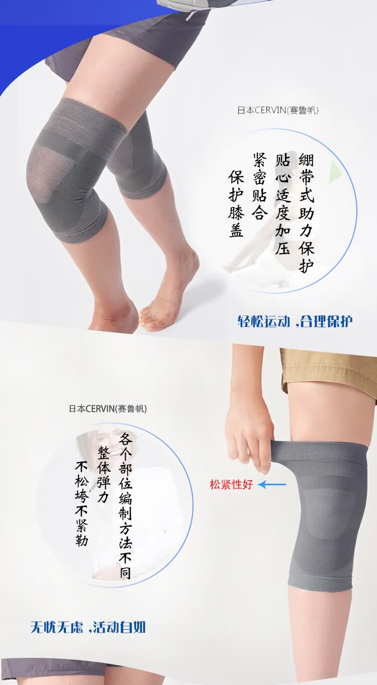CERVIN日本原装进口护膝清爽舒适跑步助力护膝三菱化工透气吸汗关节护膝 天蓝色 23.5cm 2只装 均 码 膝盖上下围25-50公分