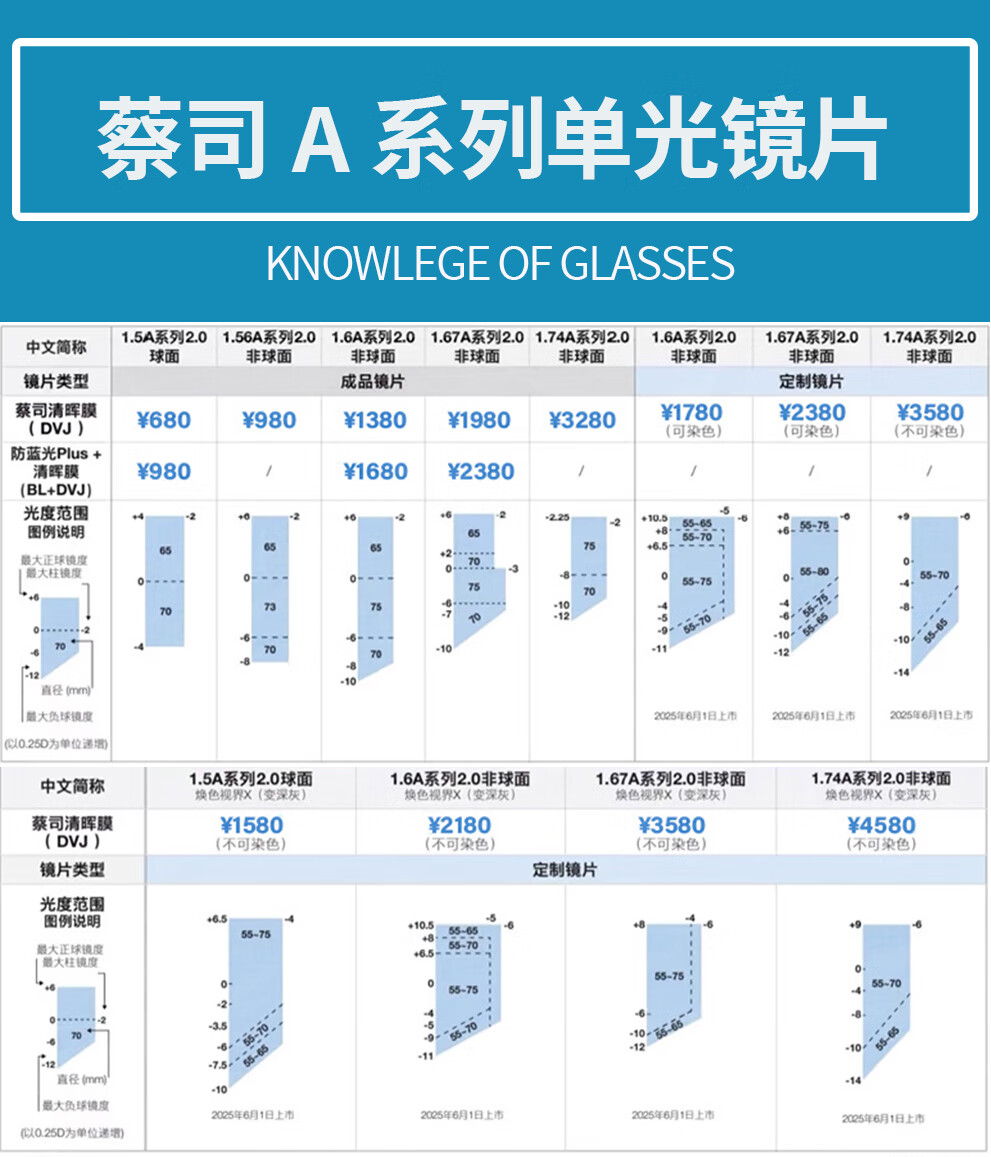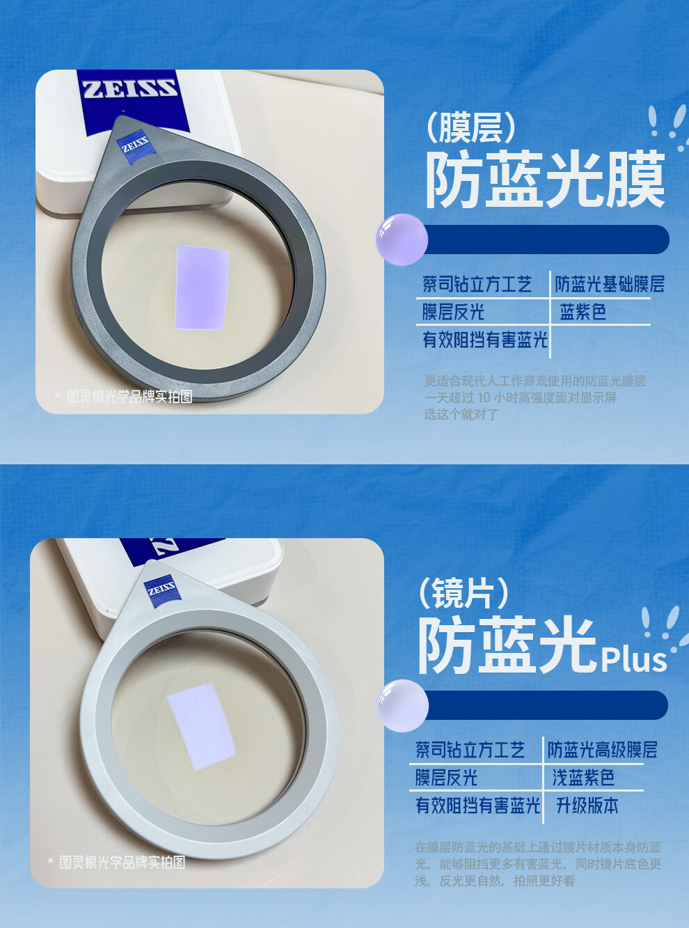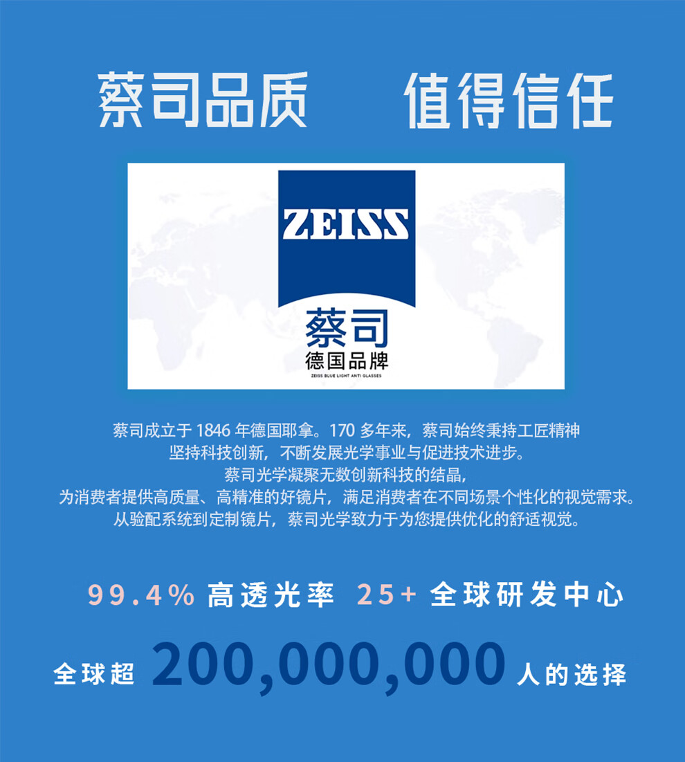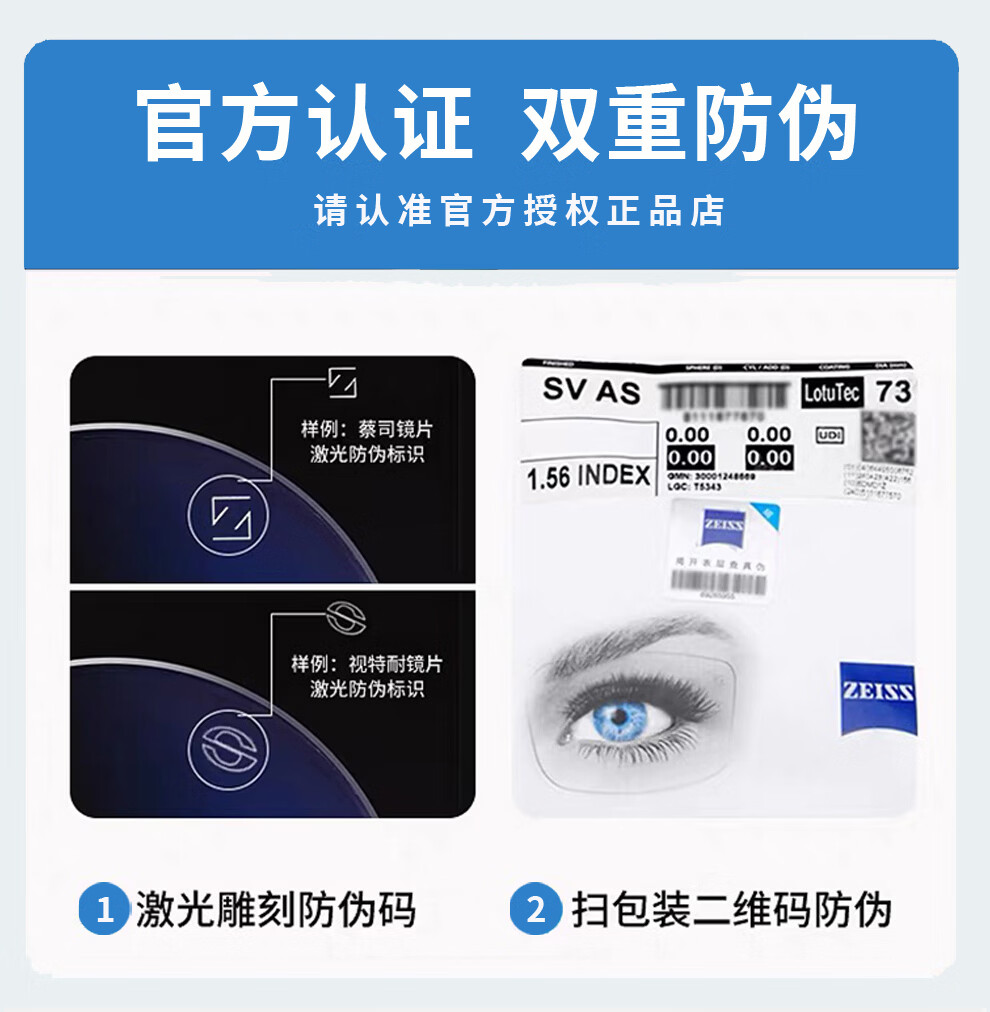 蔡司(ZEISS)镜片【官方授权】近视眼镜散光学配镜防蓝光眼镜近视可配度数 【佳锐】冰蓝膜 1.56折射率【0-300度】2片装 成品镜片