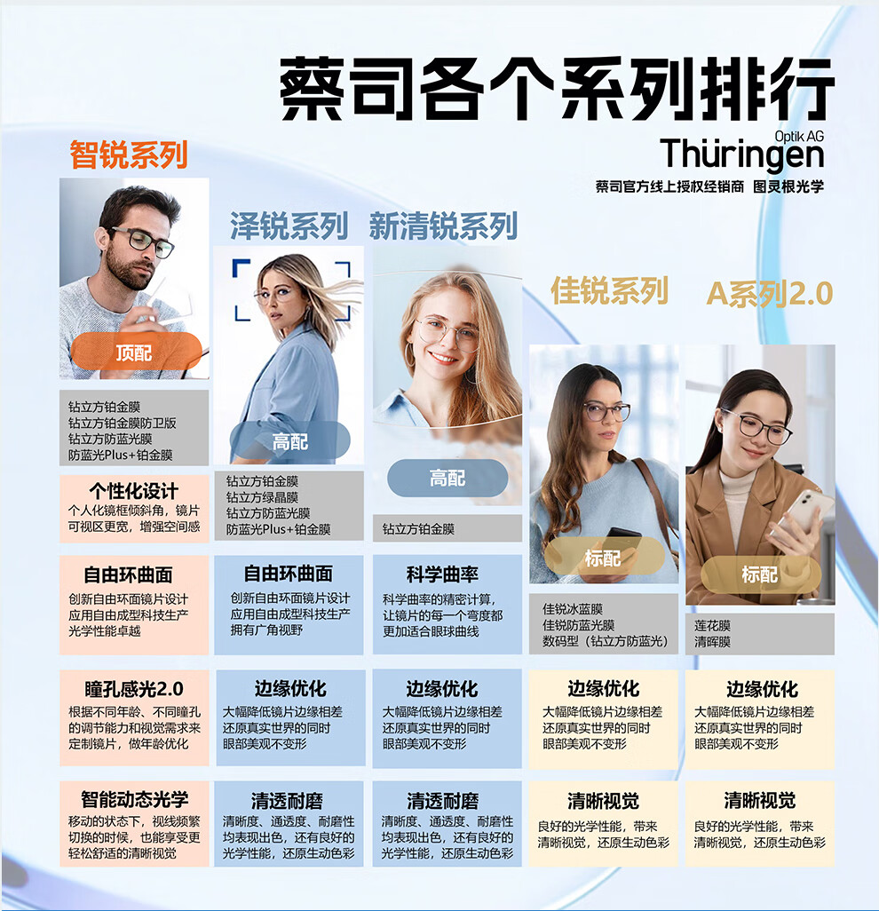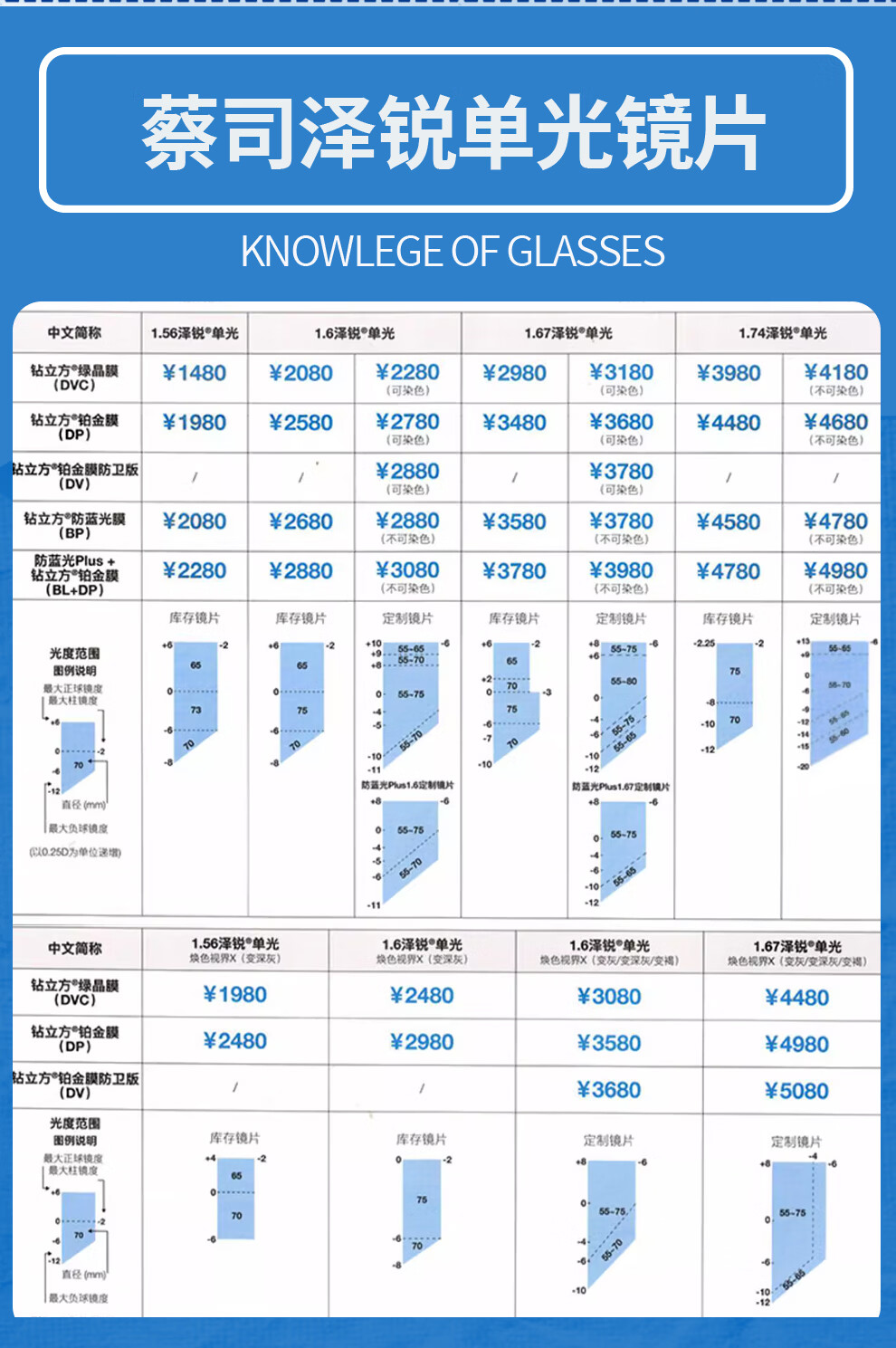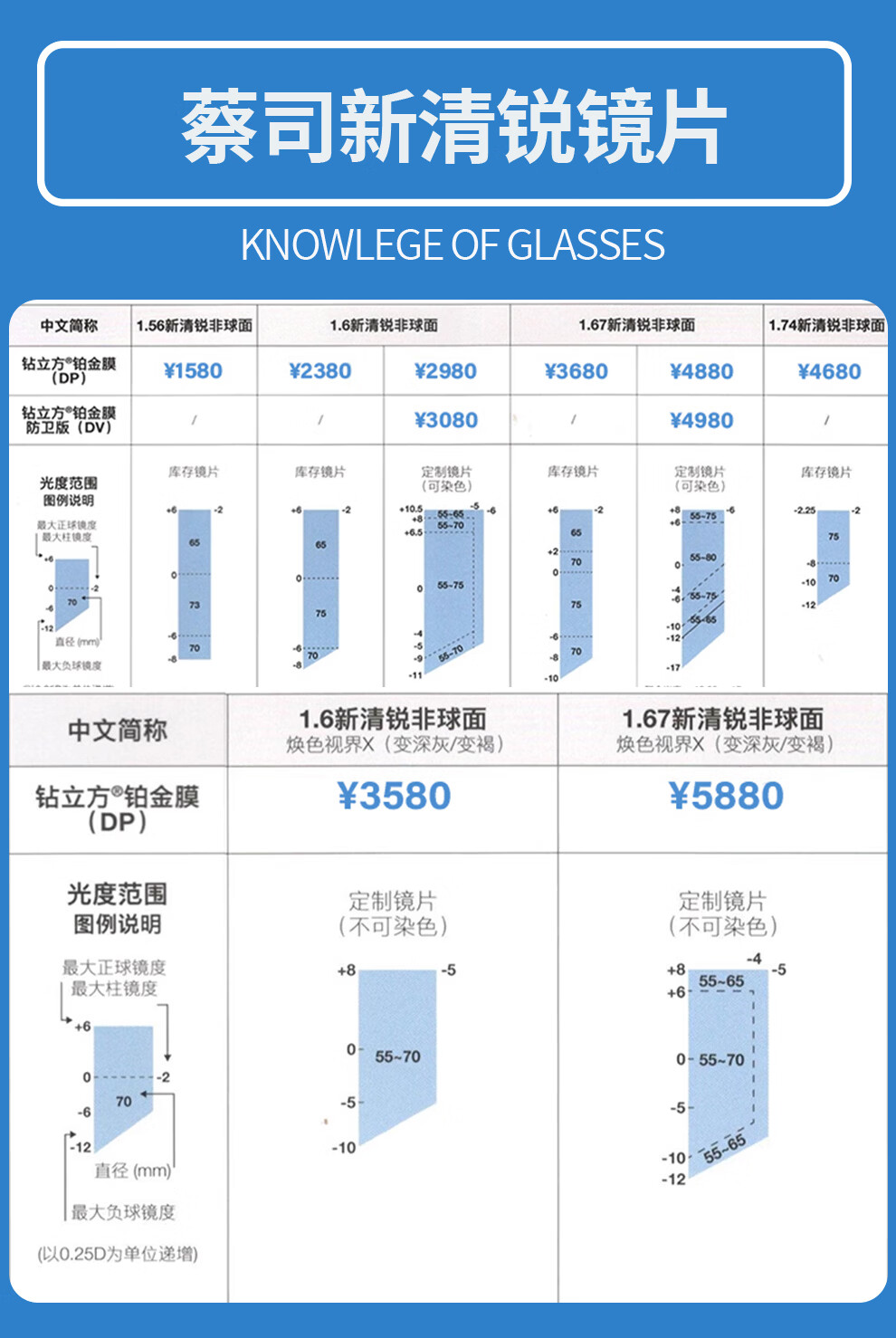 蔡司(ZEISS)镜片【官方授权】近视眼镜散光学配镜防蓝光眼镜近视可配度数 【佳锐】冰蓝膜 1.56折射率【0-300度】2片装 成品镜片