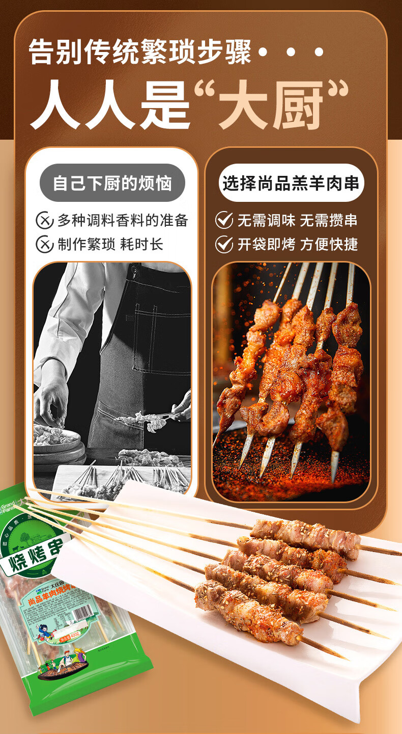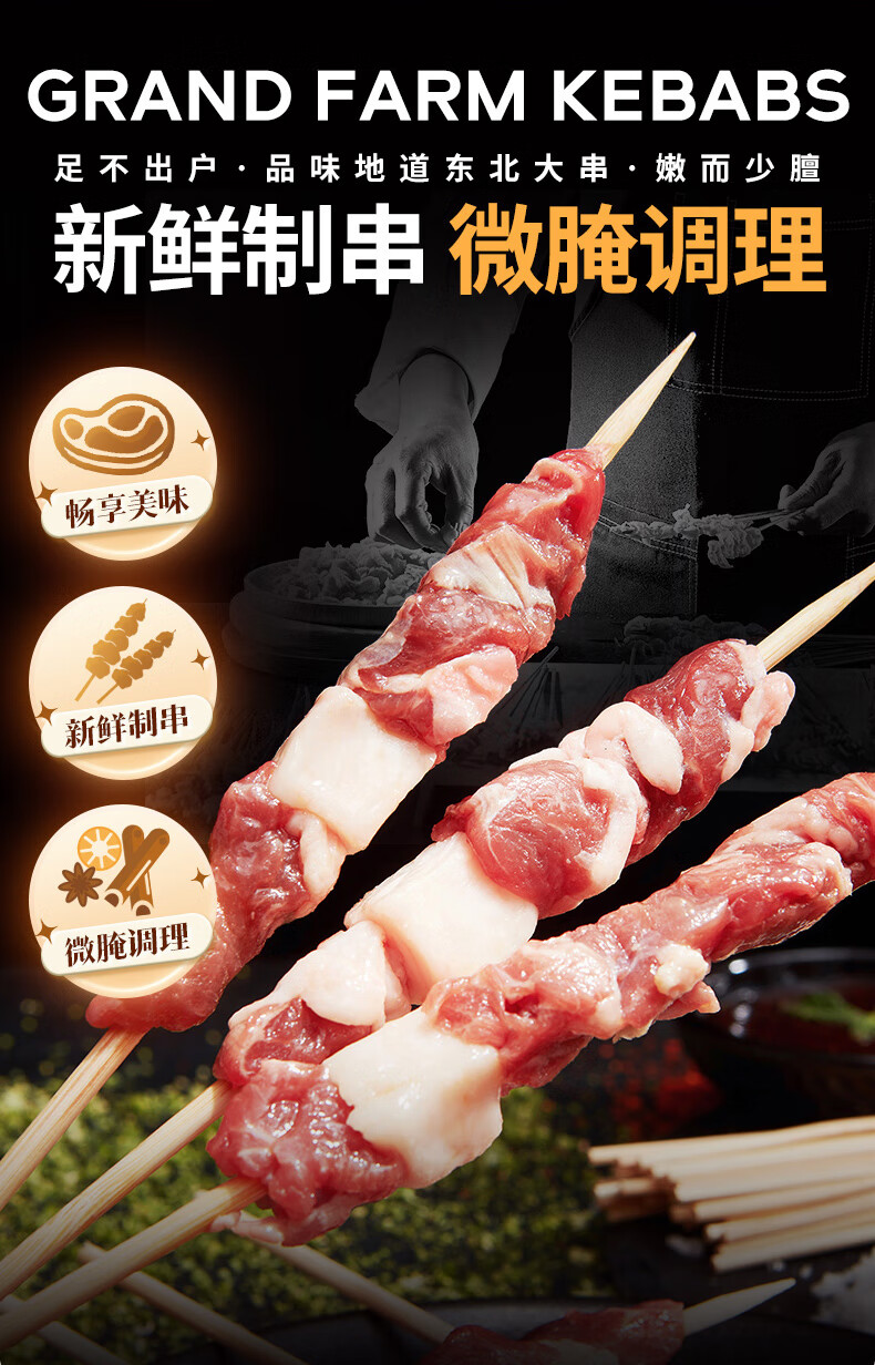 大庄园新西兰羔羊肉串 净重400g/袋(约20串)烧烤串微调理非真空
