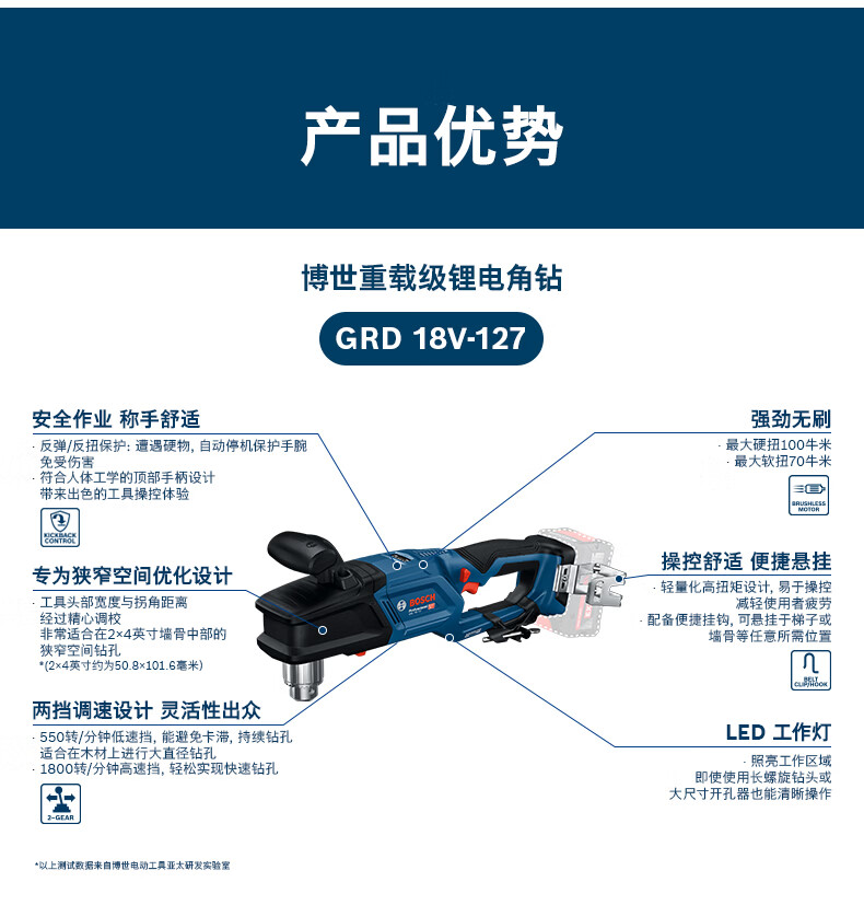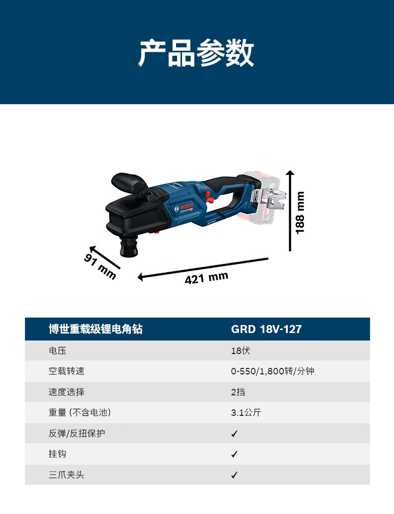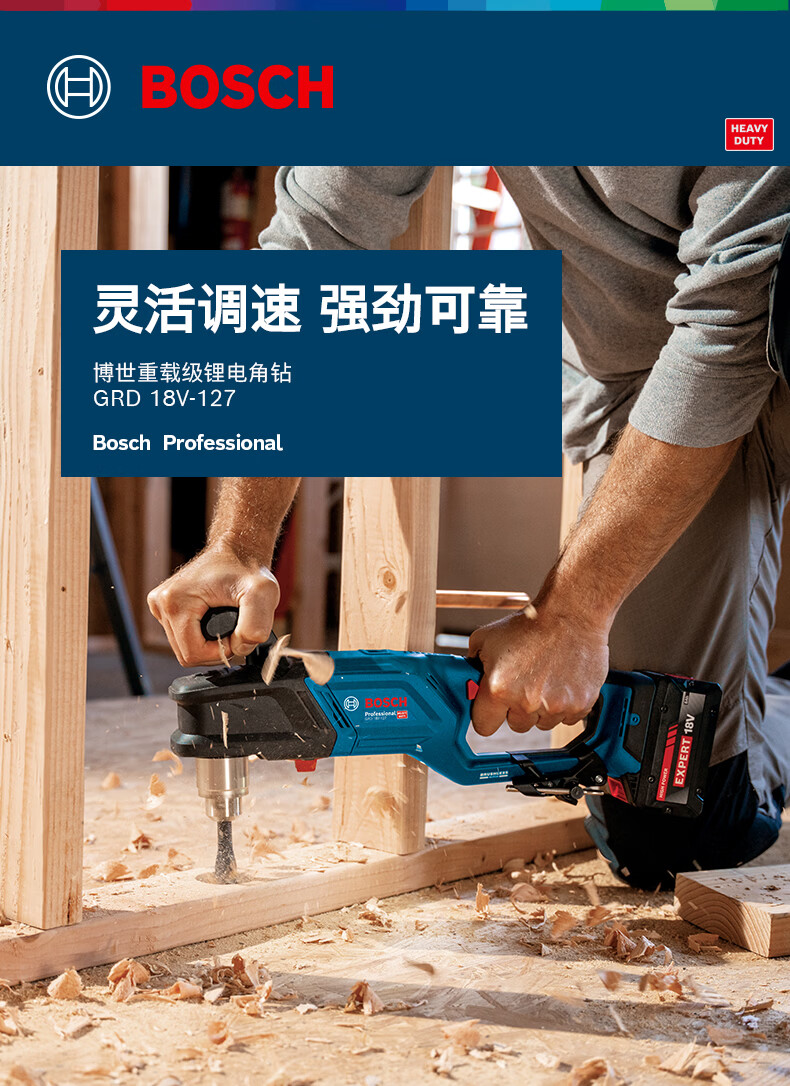 博世(BOSCH)GRD 18V-127重载级锂电角钻木材打孔专业手电钻无刷高效开孔电钻 锂电角钻(不含电池)