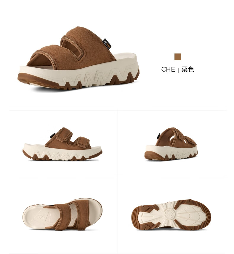 UGG夏季男女同款厚底露趾休闲凉拖鞋 1167497CHE|栗色 37