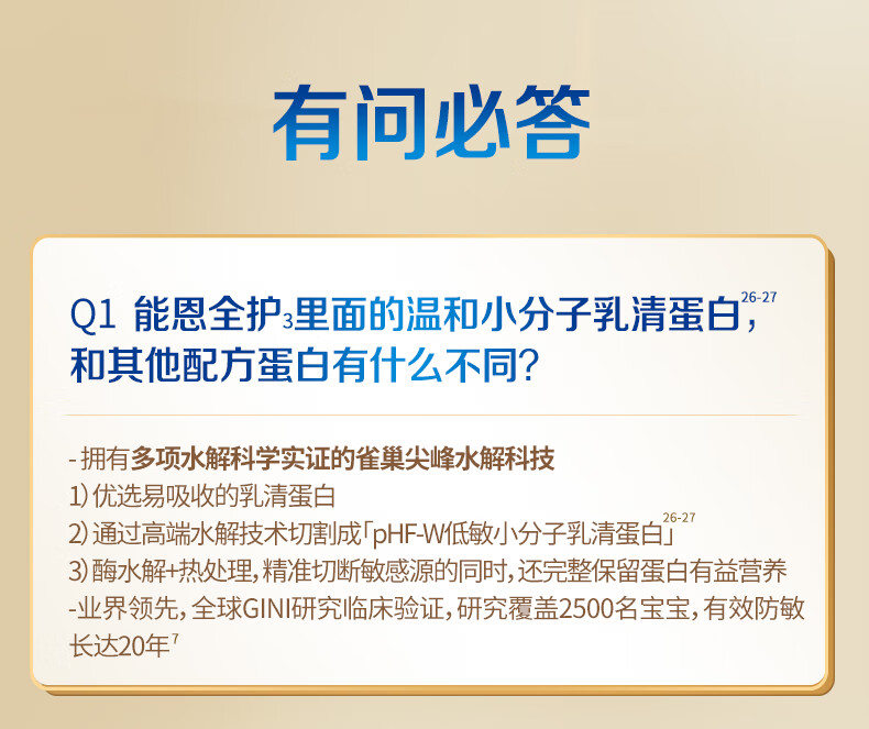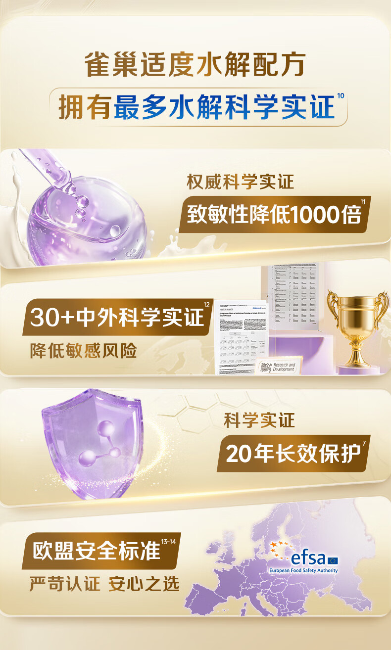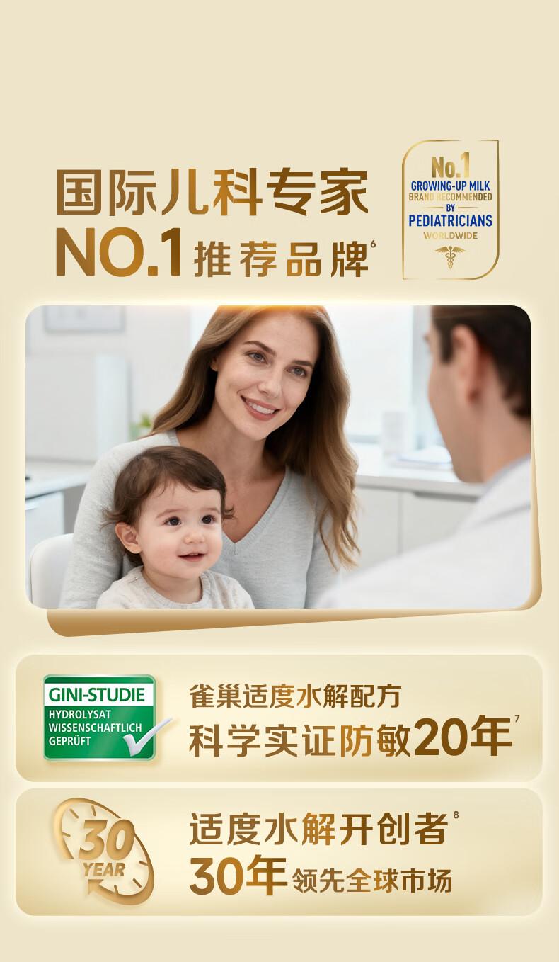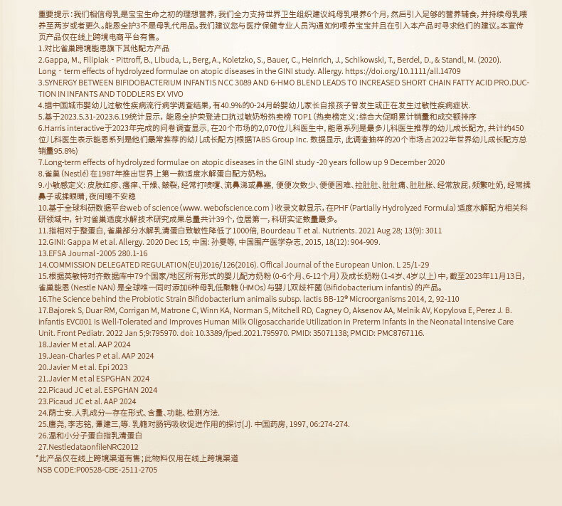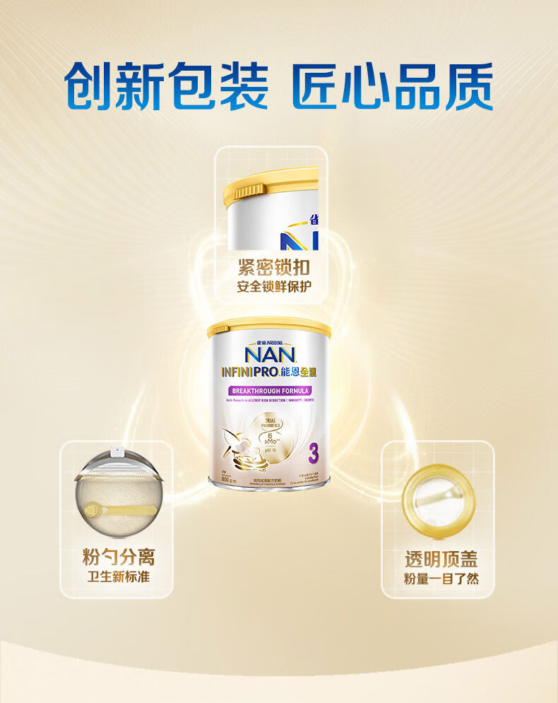 雀巢(Nestle)能恩全护适度水解6HMO婴幼儿奶粉3段800g/罐12-36个月低敏免疫力