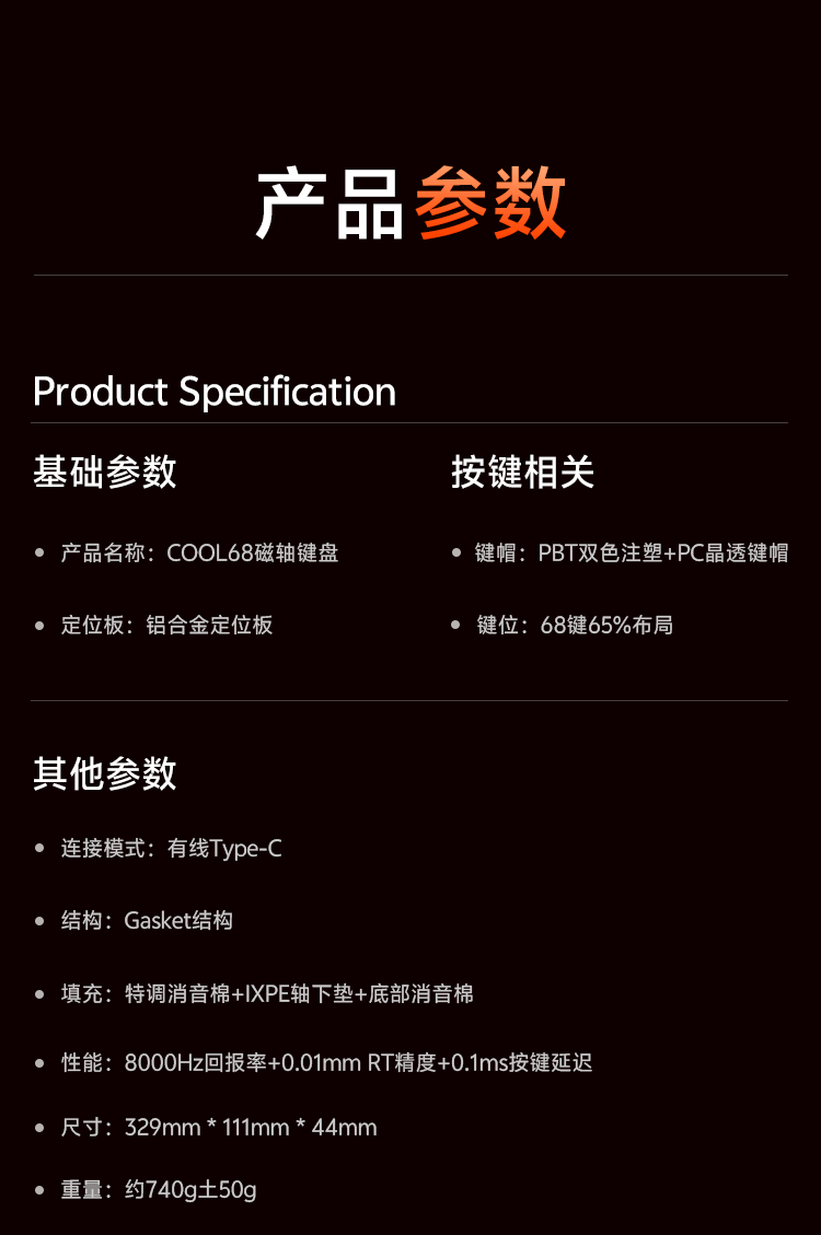 达尔优(DAREU)COOL68磁轴键盘RT电竞游戏机械键盘8K回报率热插拔RGB双驱动灯箱无畏契约68配列COOl68 云海蓝