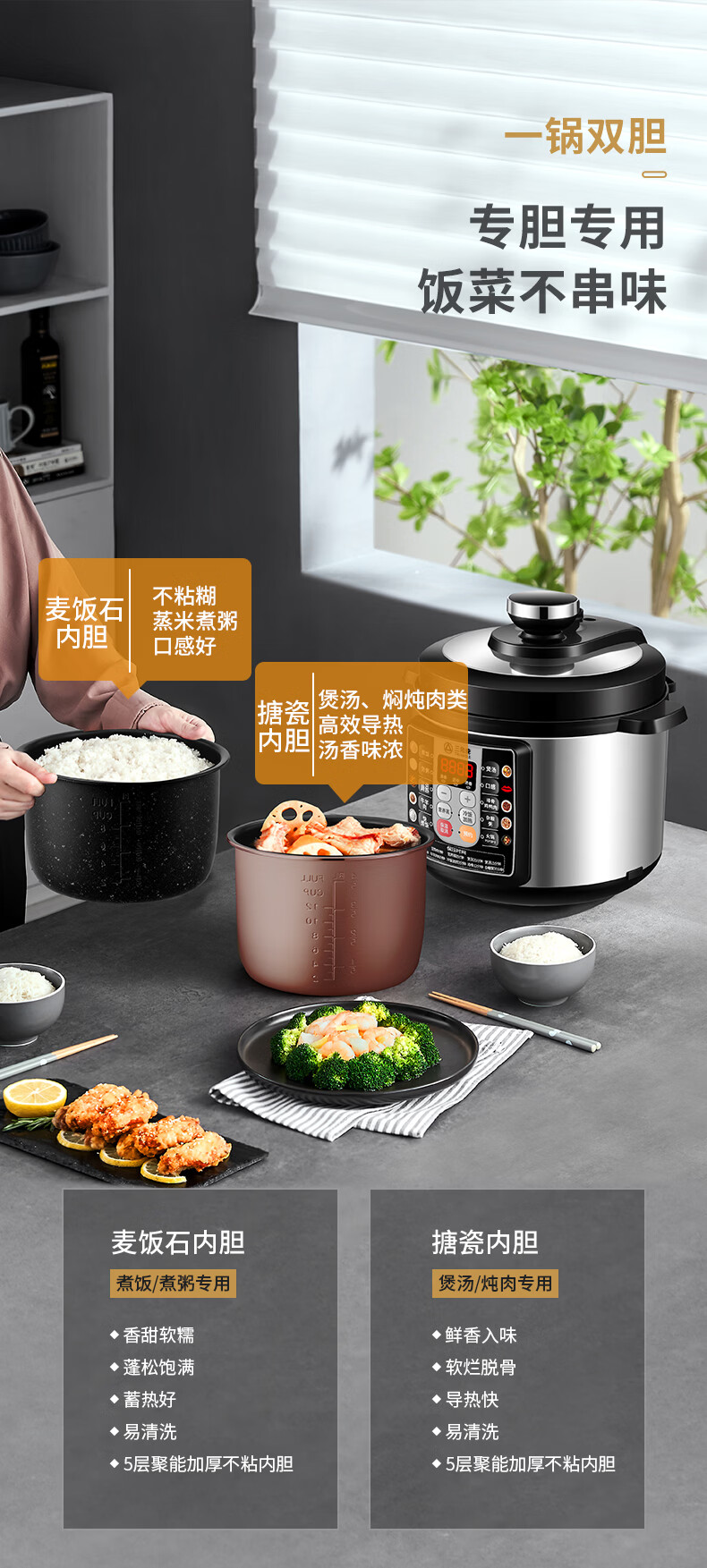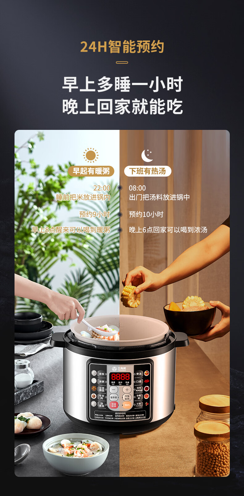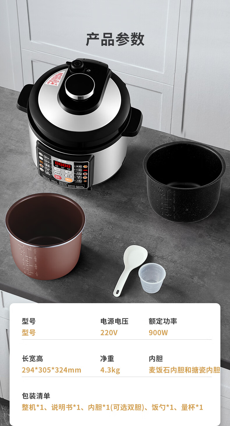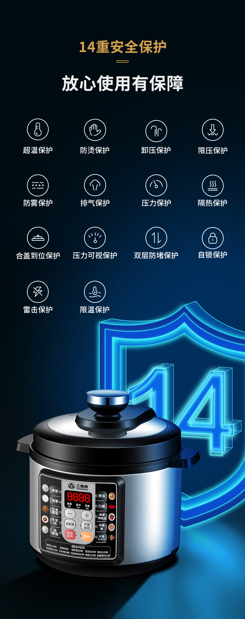 三角牌(Triangle)电压力锅家用2.5-6L智能多功能饭锅24H预约上盖可拆卸煮饭煲汤炖肉高压电饭锅 推荐3-6人【麦饭石胆】 5L