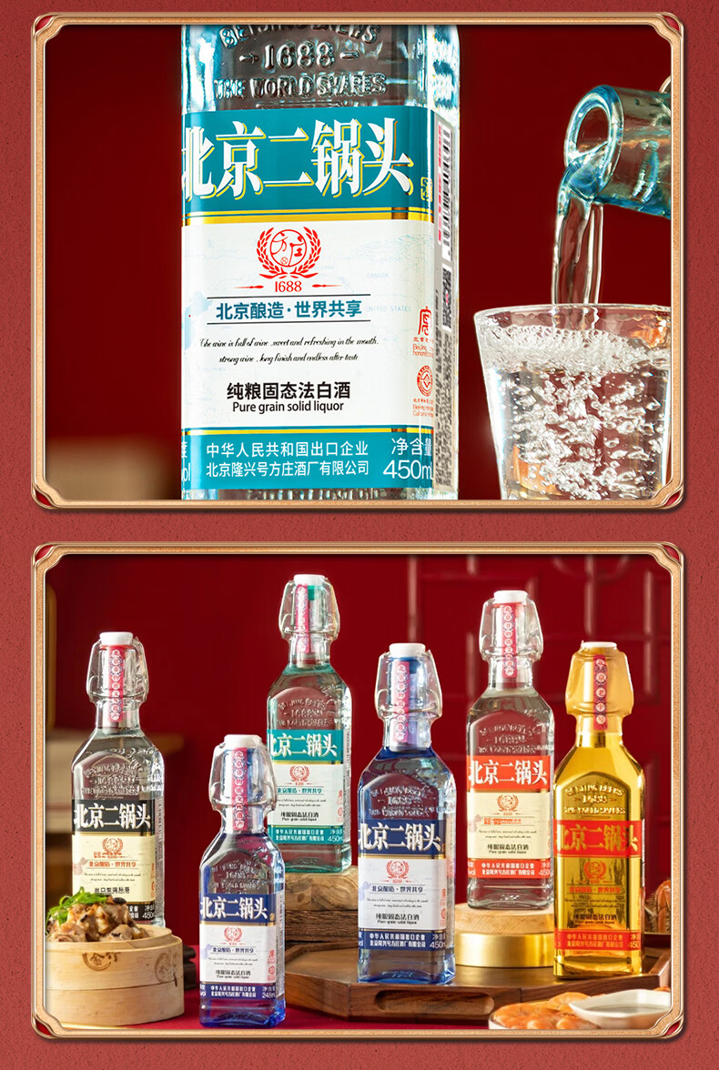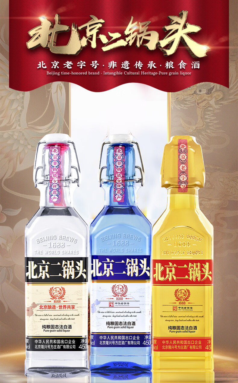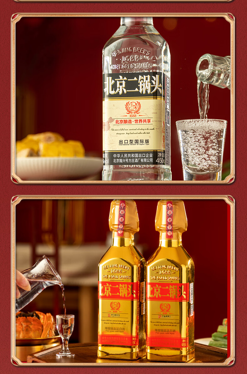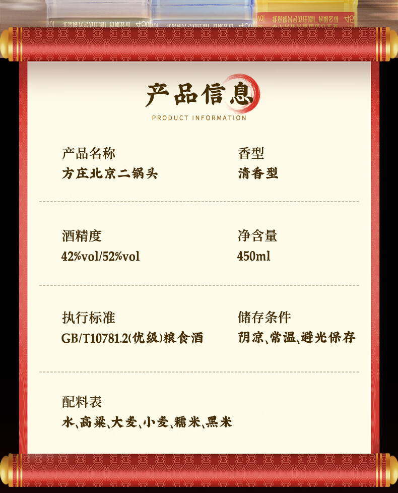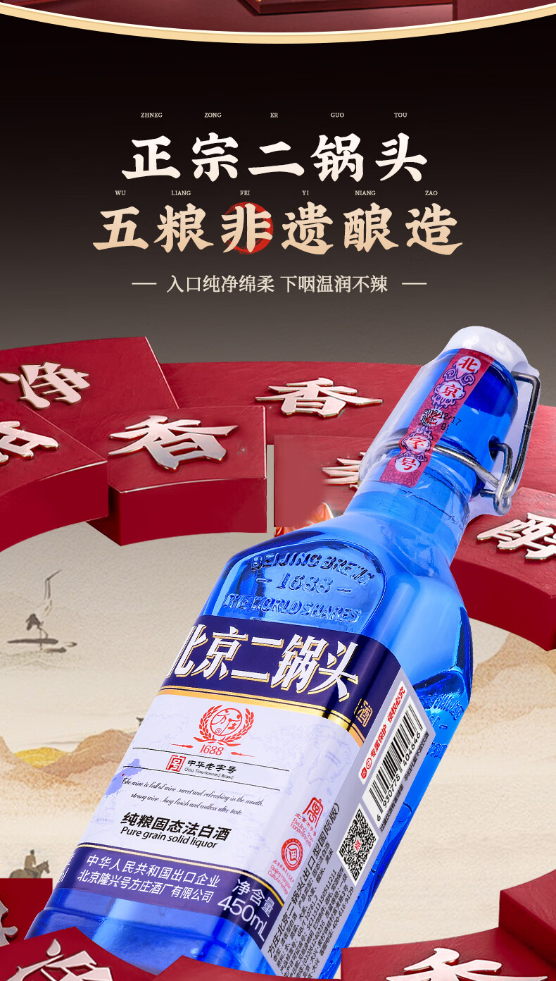 方庄北京二锅头出口方瓶 清香型白酒礼盒 送礼送长辈高粱纯粮酒整箱 42度 450mL 6瓶 【赠3斤酒】