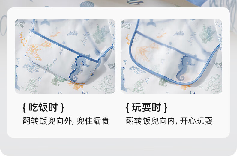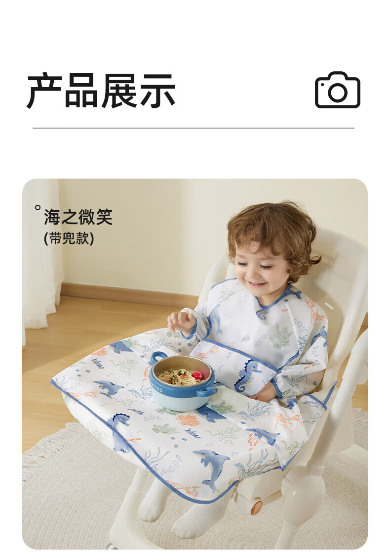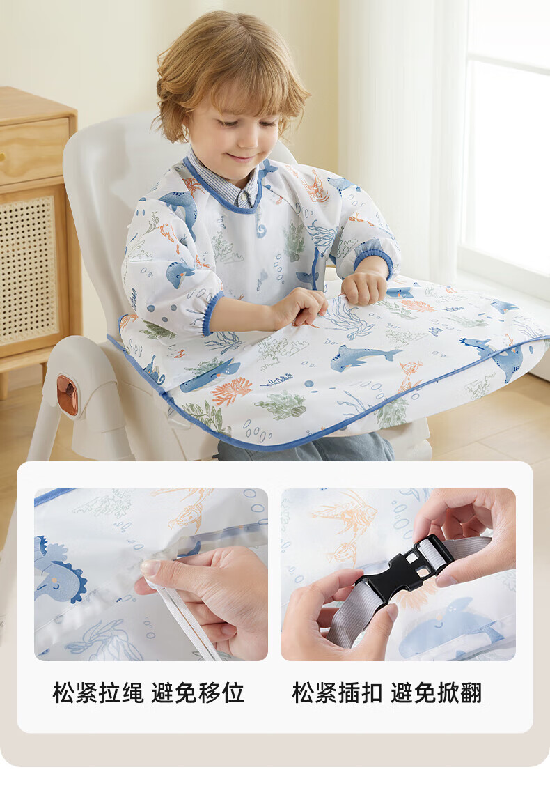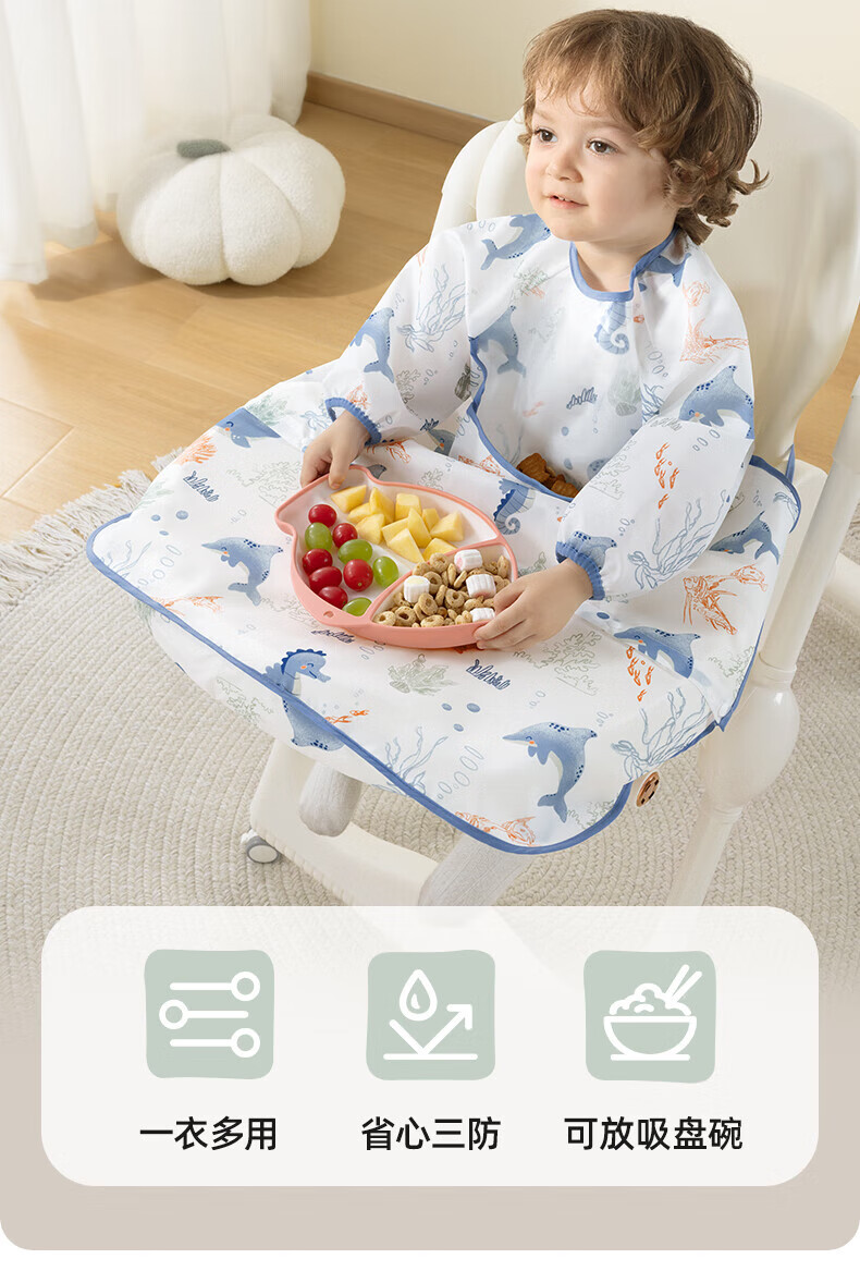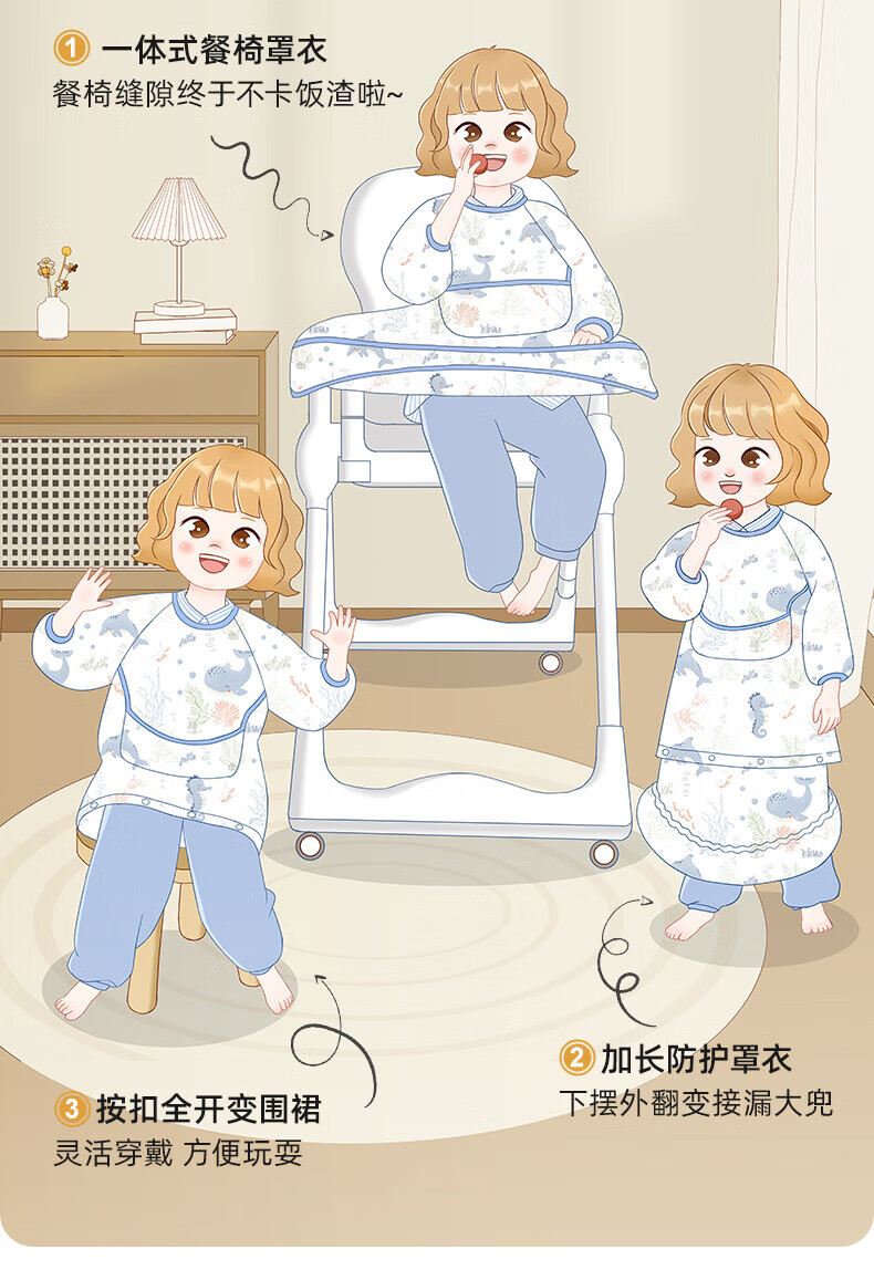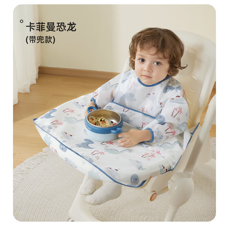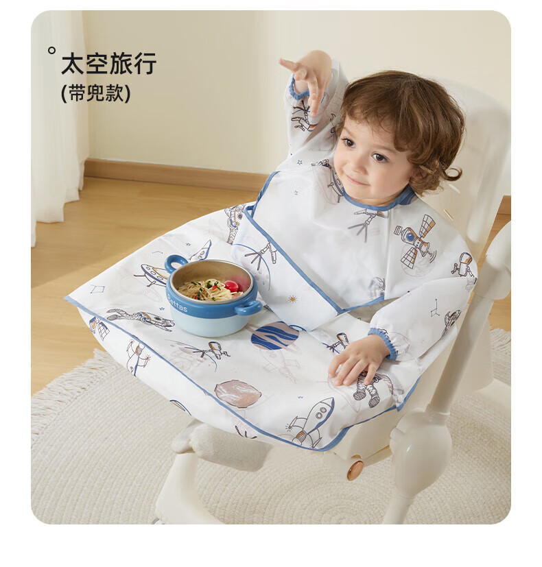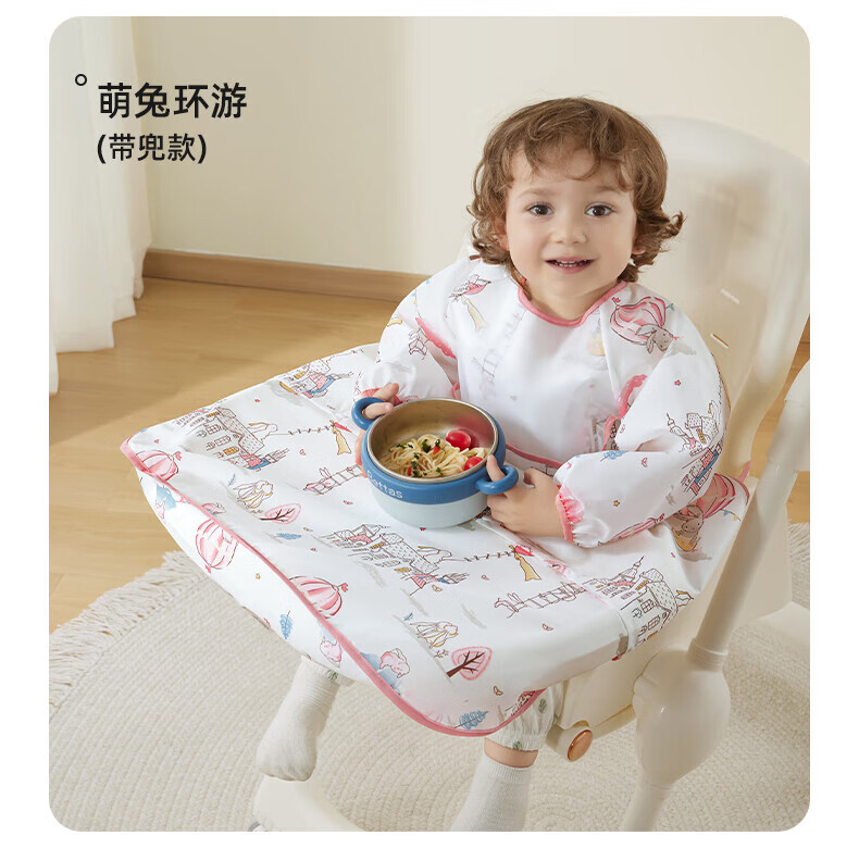 贝肽斯一体式餐椅罩衣冬季宝宝吃饭围兜防水儿童辅食防脏饭兜进食围裙 萌兔环游【下摆可拆】 均码 [建议4个月-6岁]一衣三用