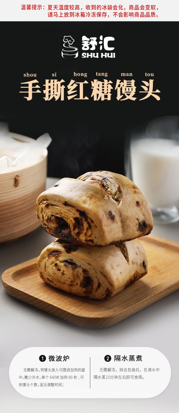 舒汇(SHUHUI)手撕红糖馒头儿童学生营养早餐半成品包子速冻面点加热即食 510g 3包*510g(6只装) 手撕红糖馒头510g