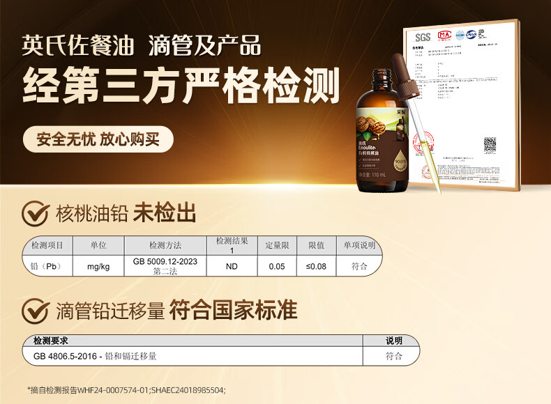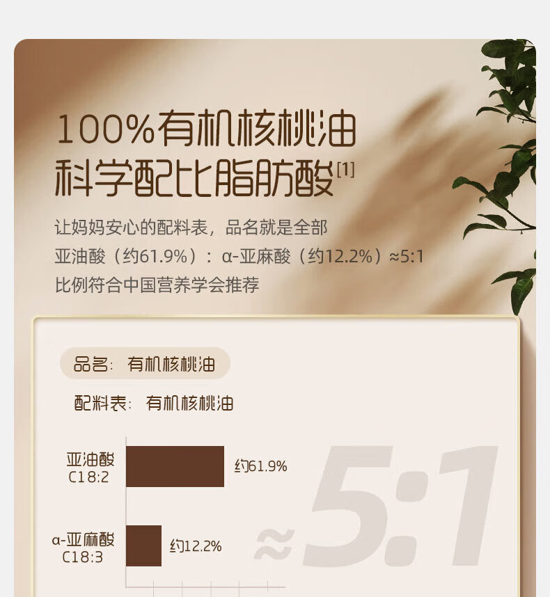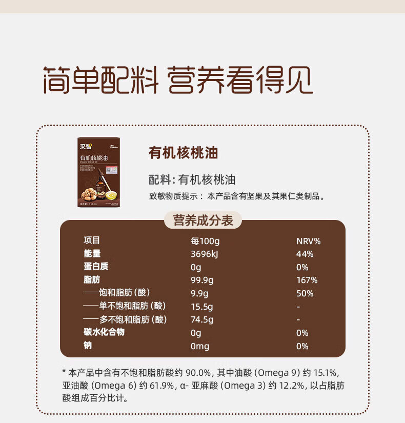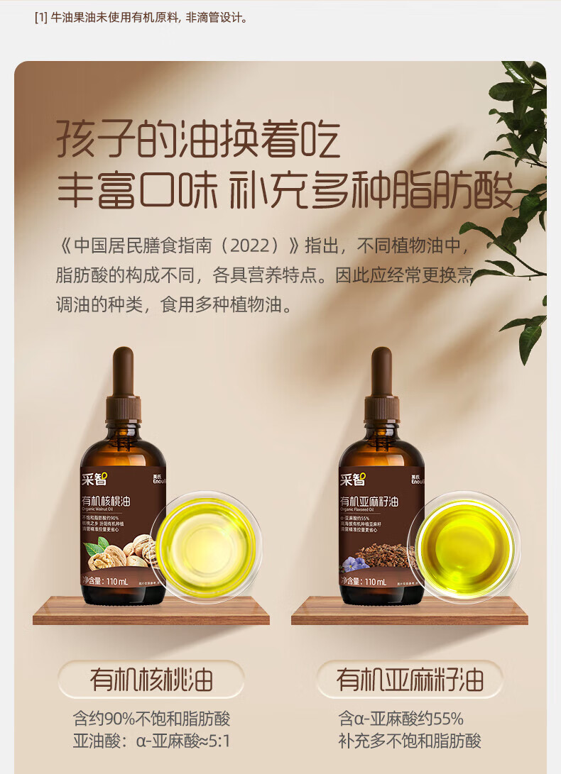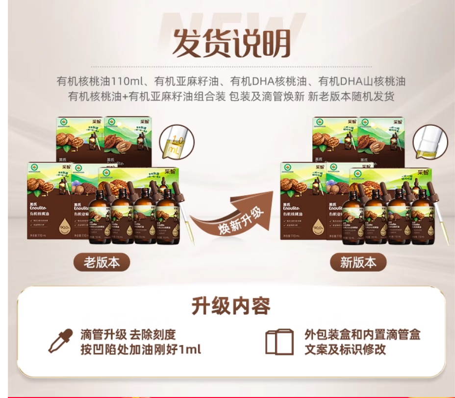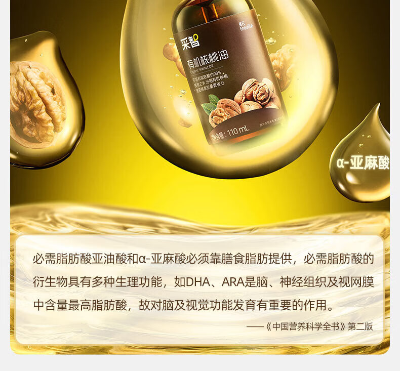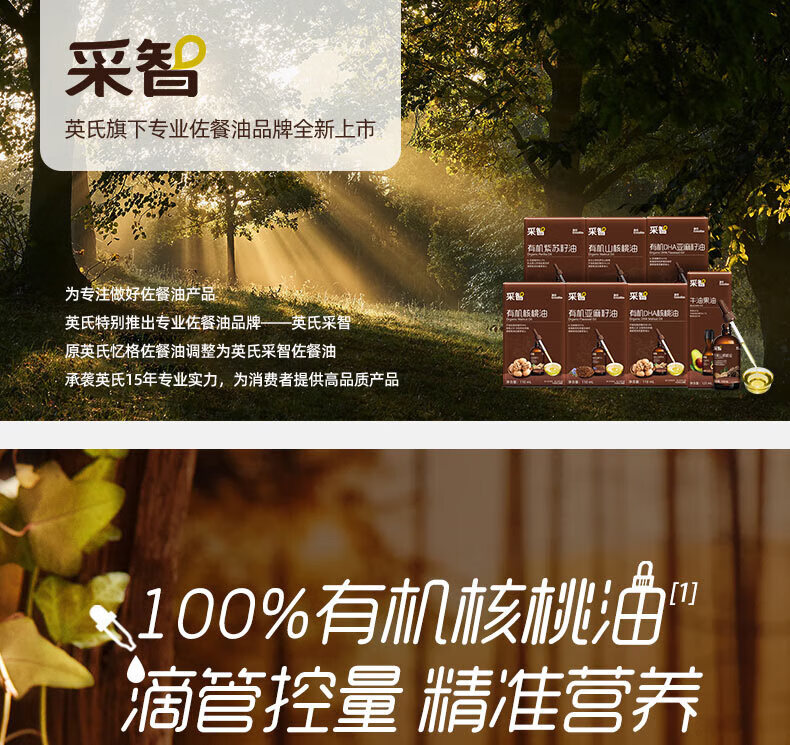英氏(Engnice)核桃油亚麻籽油牛油果油宝宝辅食添加油英式儿童营养食用油 【大瓶装】 250ml 1瓶 核桃油