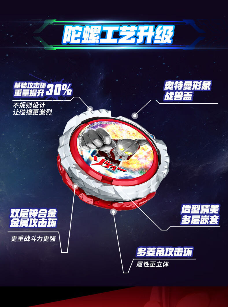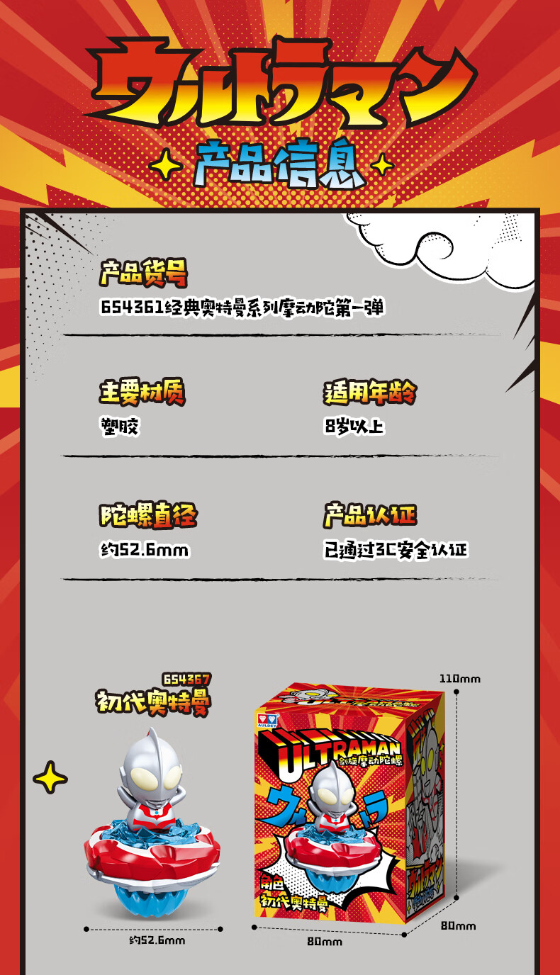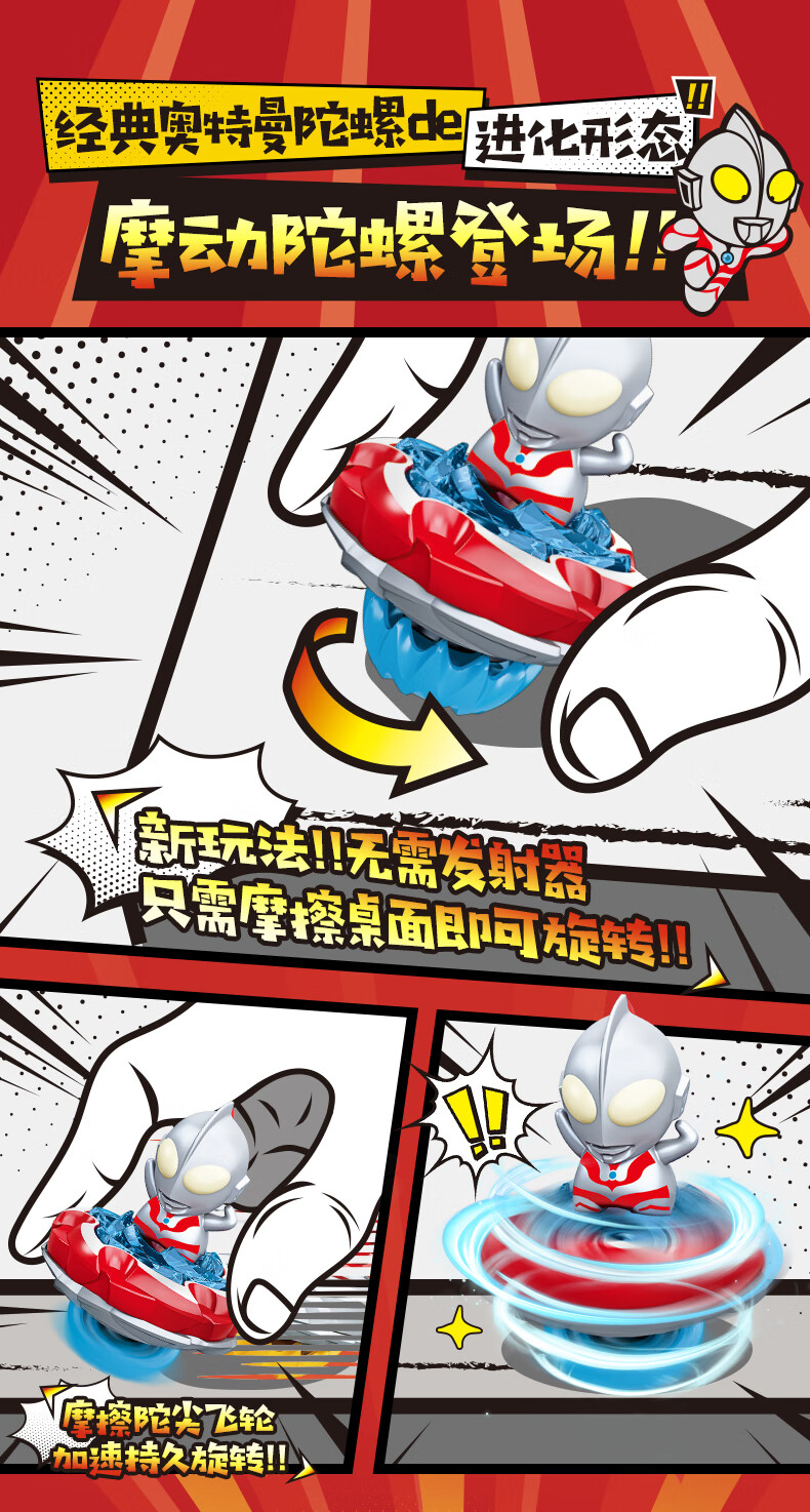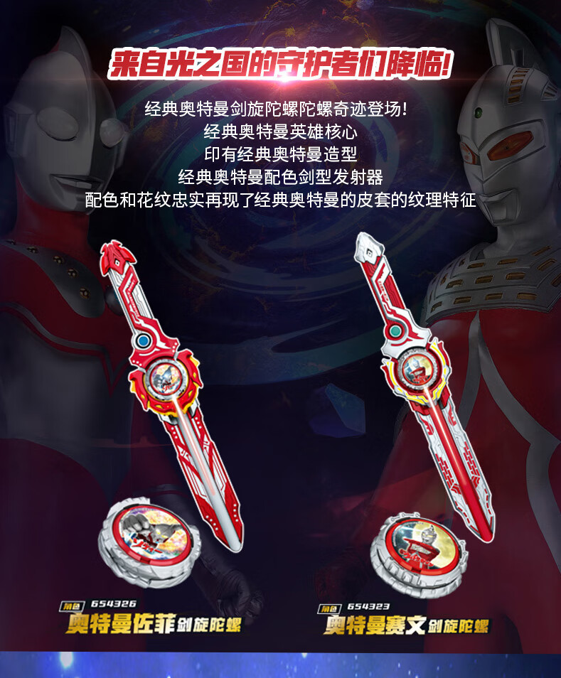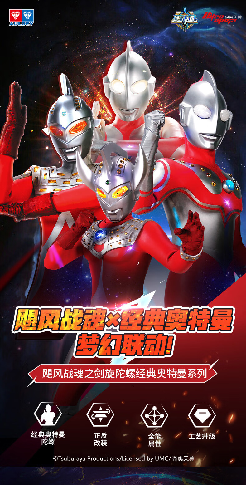 奥迪双钻飓风战魂经典奥特曼立体人偶剑旋摩动陀螺儿童男孩玩具礼物 初代奥特曼