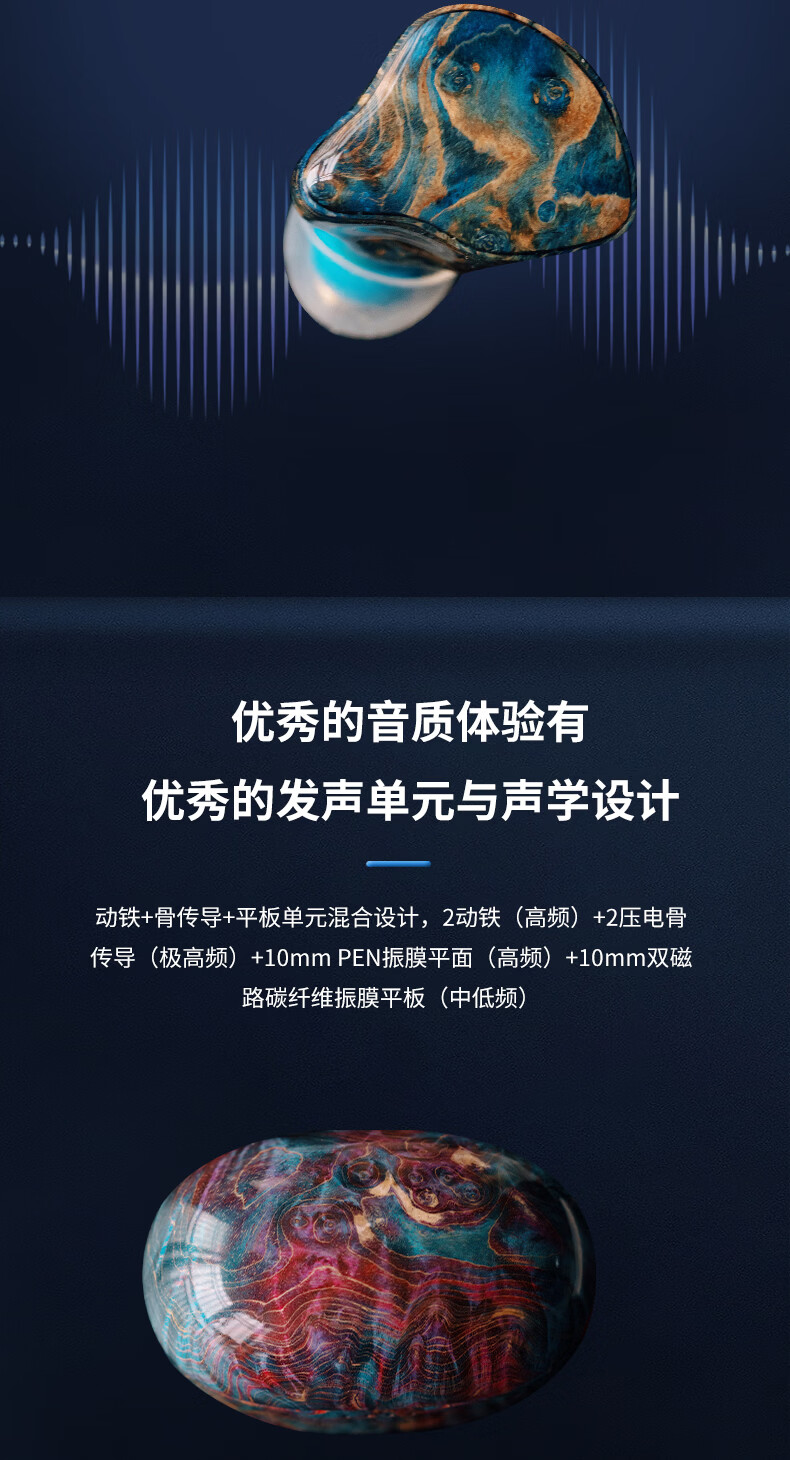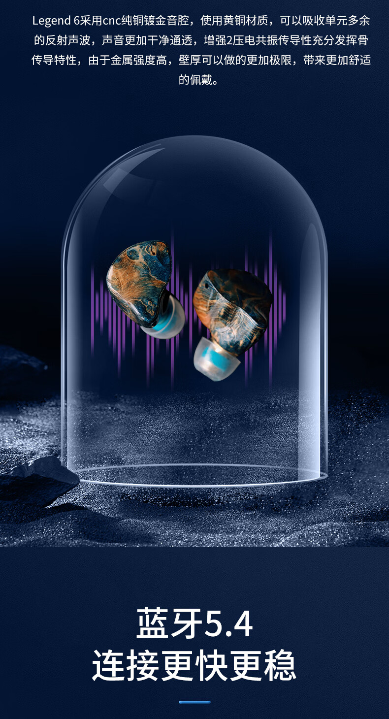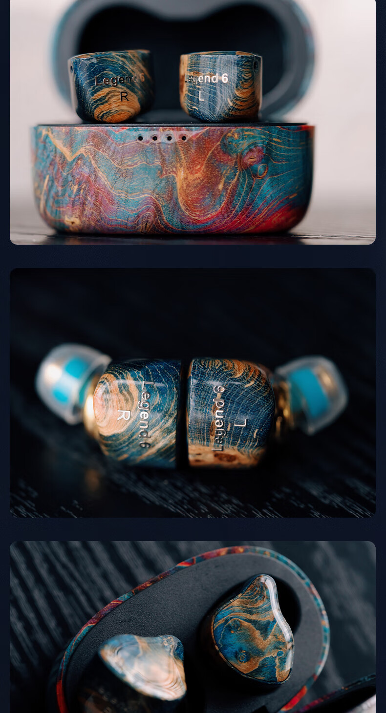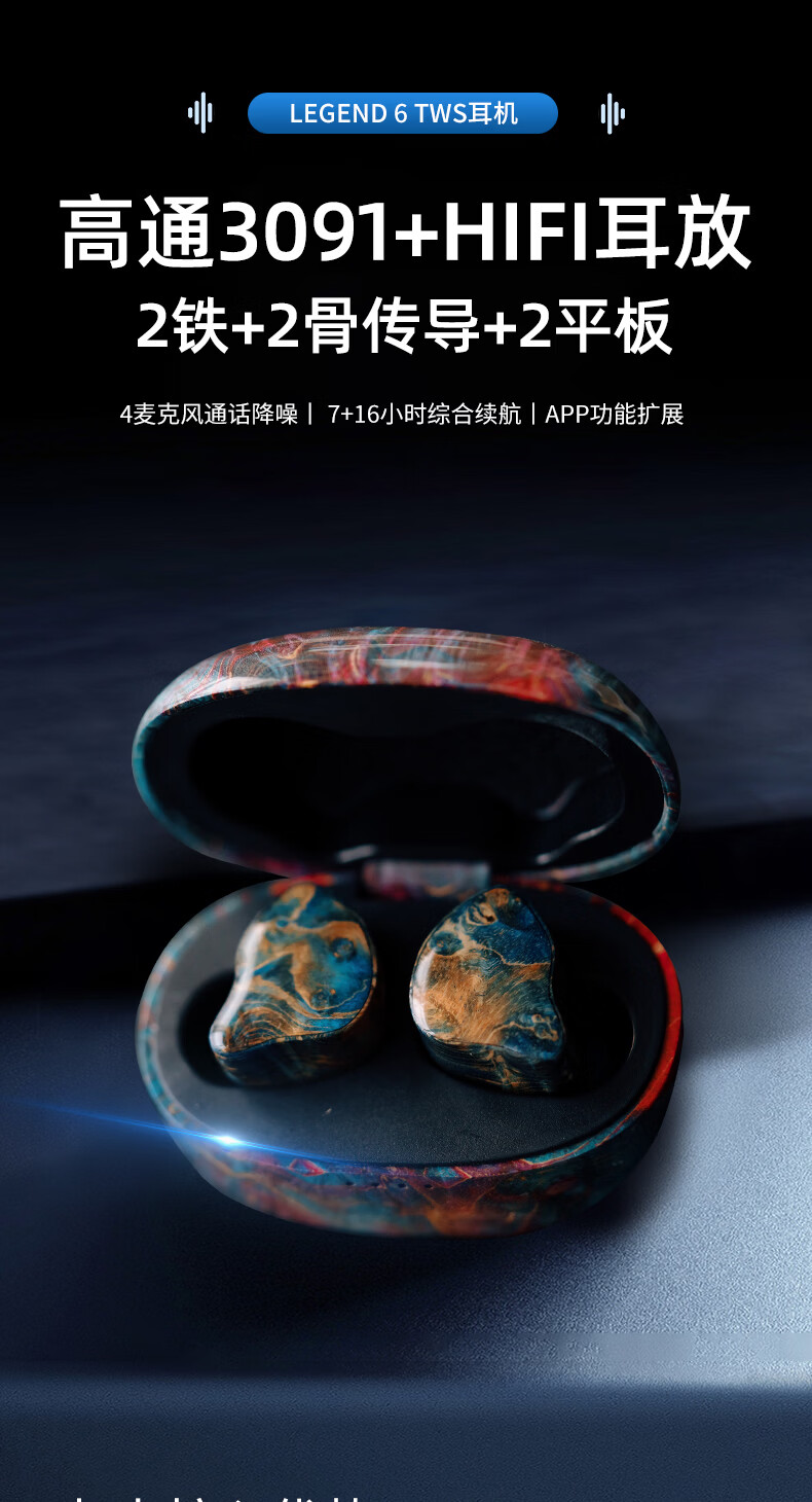 GEEKFLYLegend6超旗舰6单元TWS无线蓝牙耳机音质王者音乐游戏无线耳机 充电仓蓝色(树脂+稳定木) 耳机面板颜色随机发货 +FS01蓝牙发射器