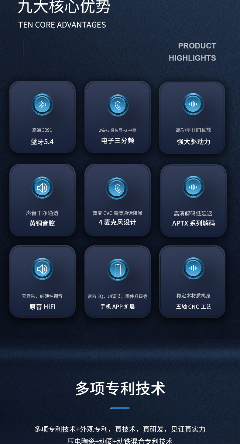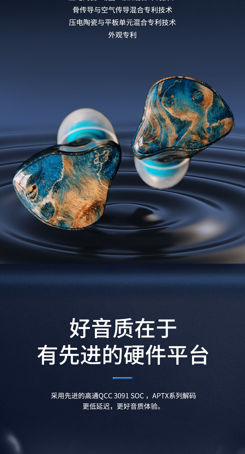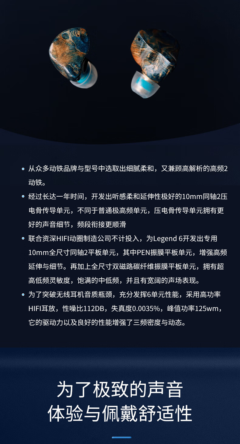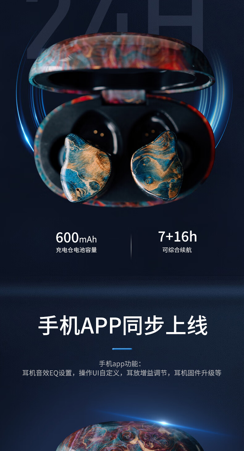 GEEKFLYLegend6超旗舰6单元TWS无线蓝牙耳机音质王者音乐游戏无线耳机 充电仓蓝色(树脂+稳定木) 耳机面板颜色随机发货 +FS01蓝牙发射器