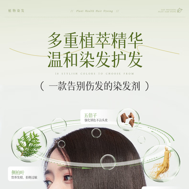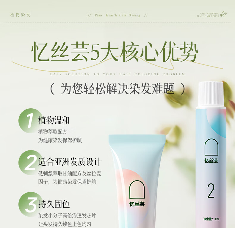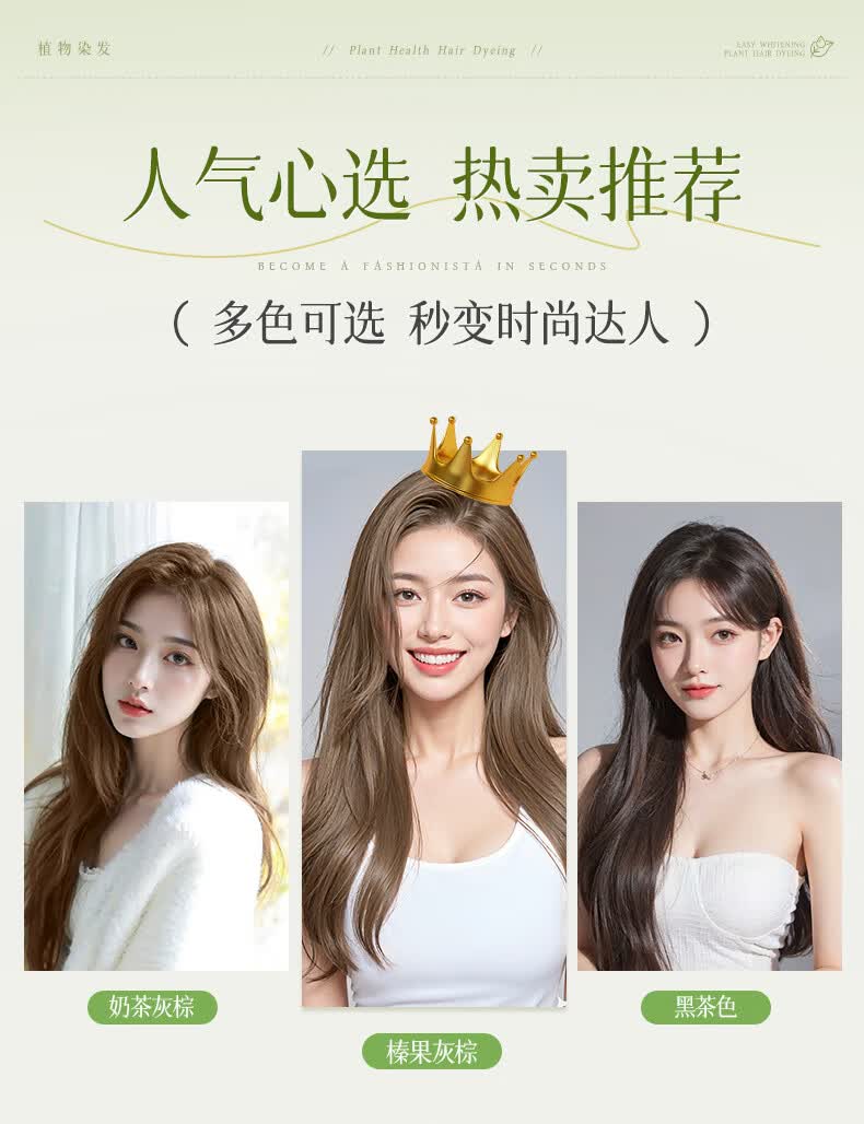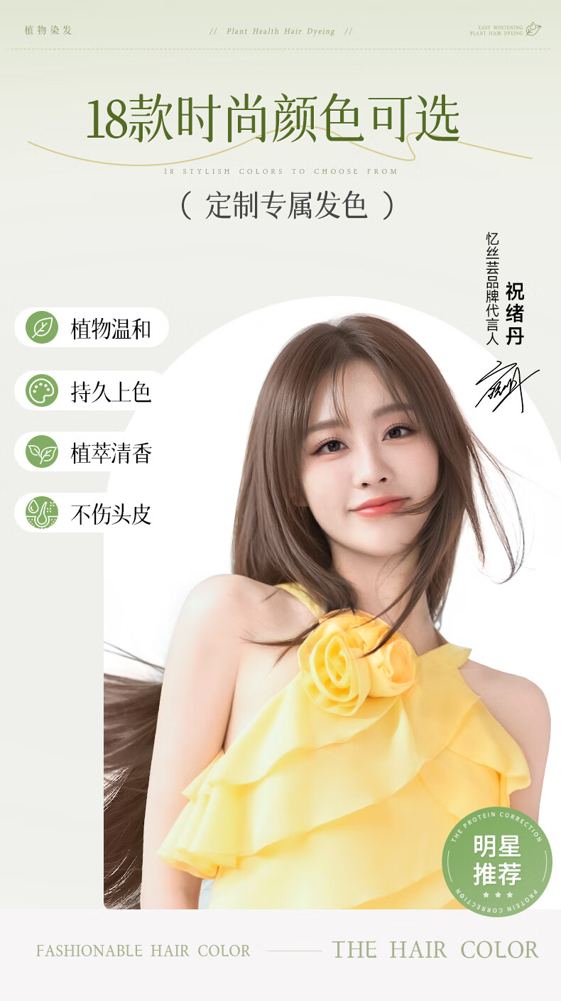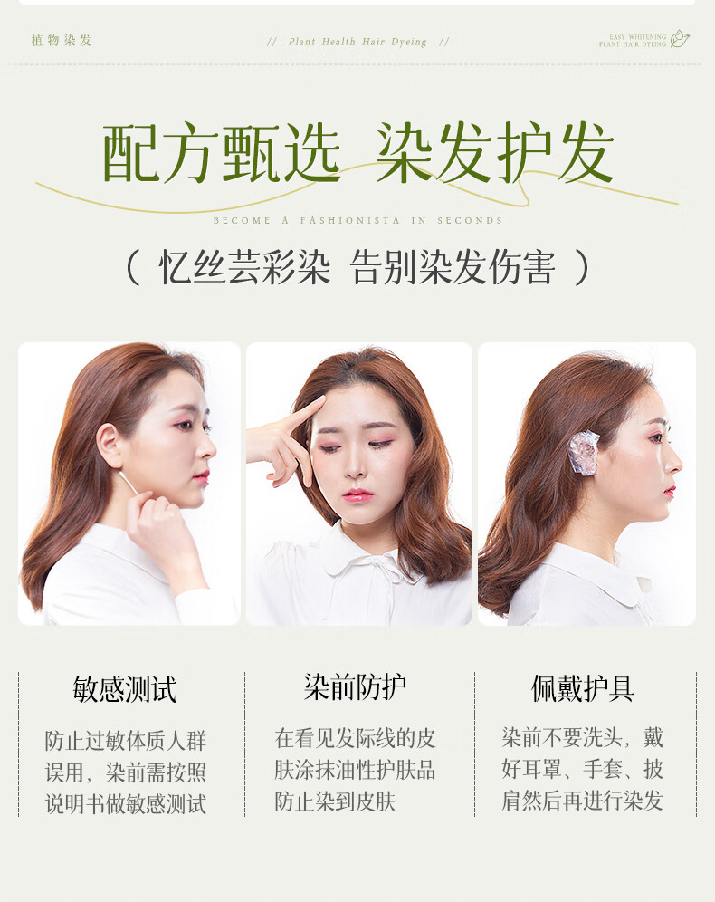 忆丝芸榛果灰棕染发膏100%在家染发剂天然植物无刺盖白纯不沾男女士专用
