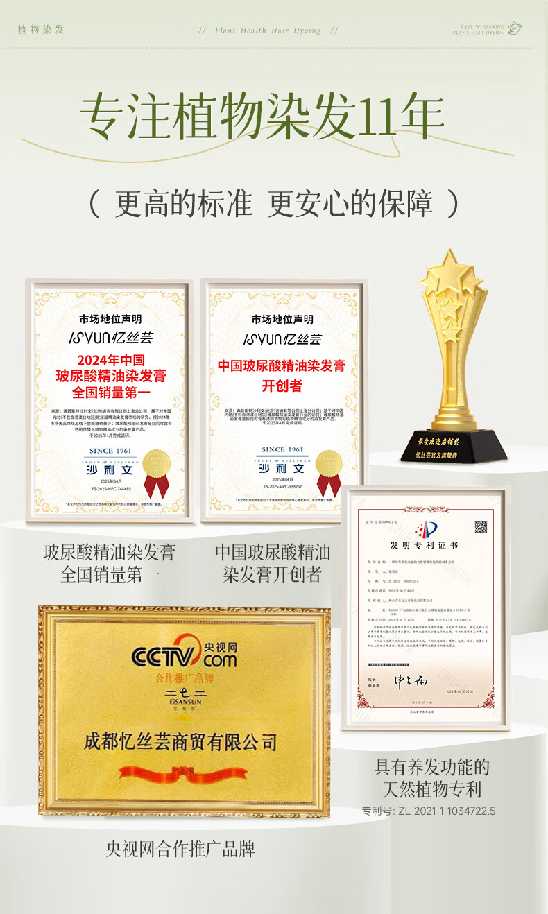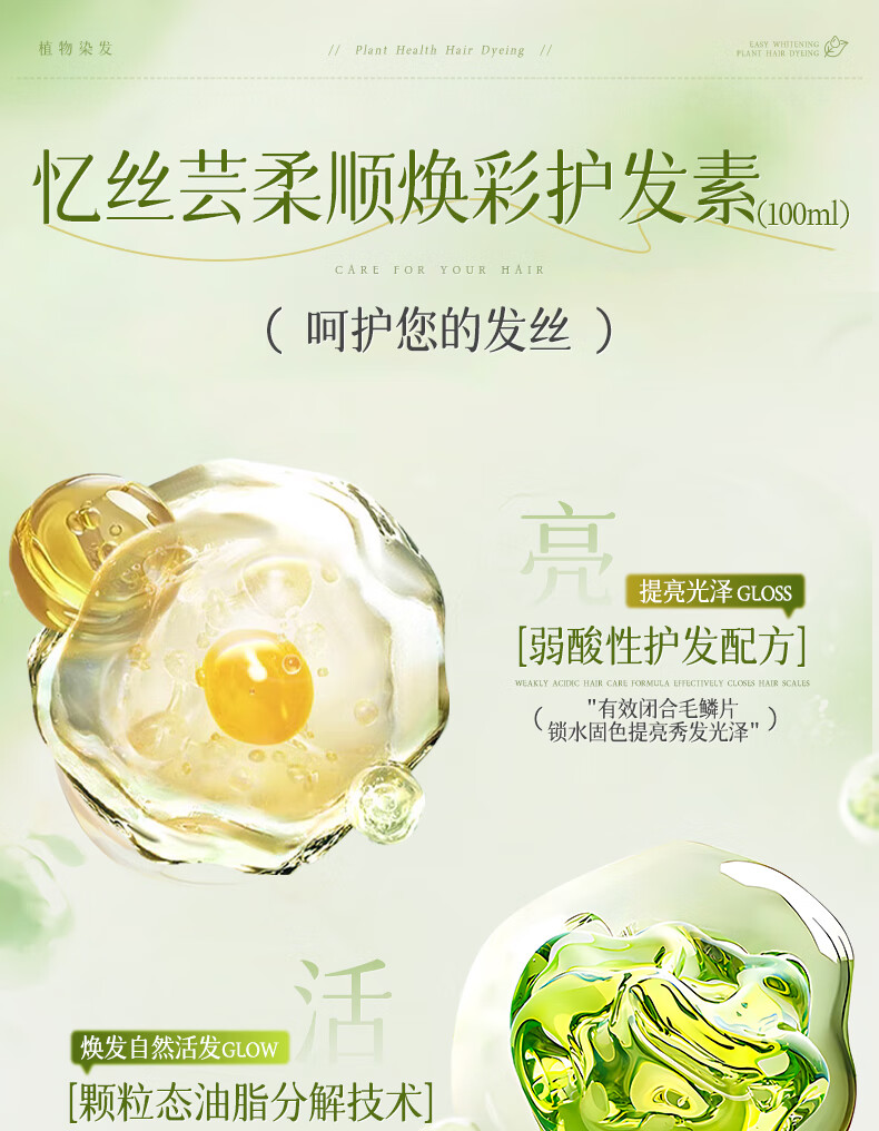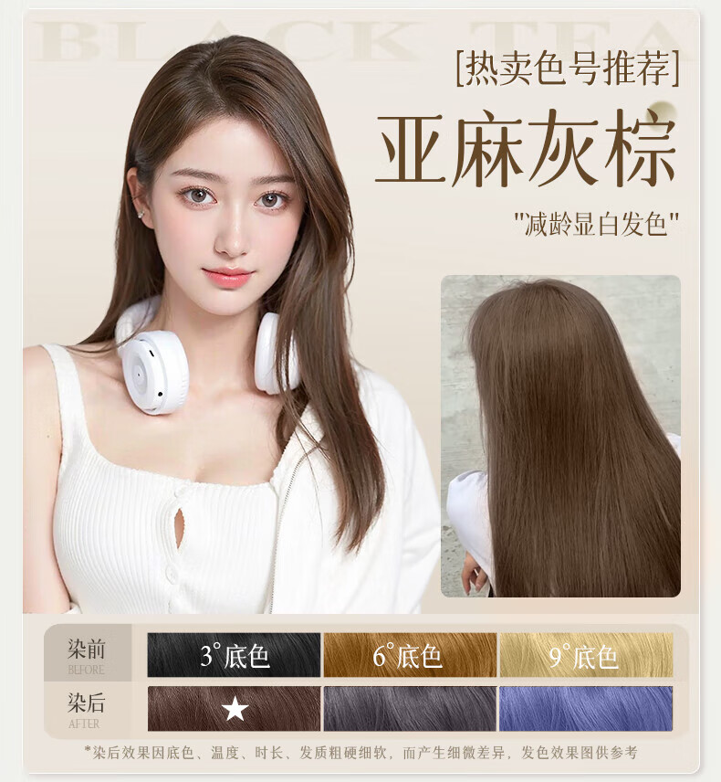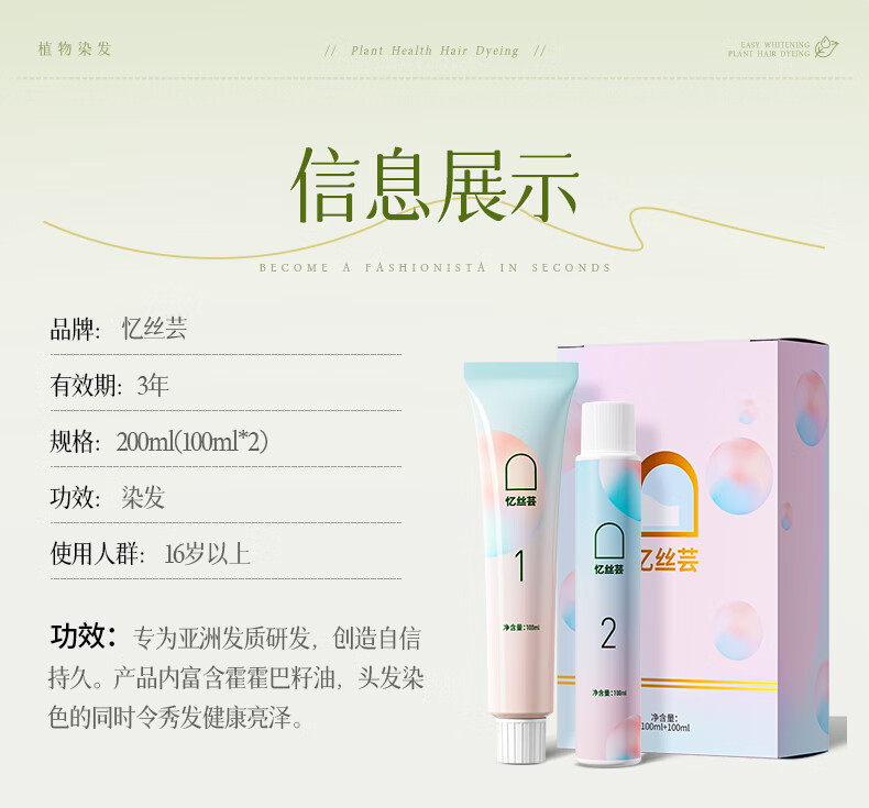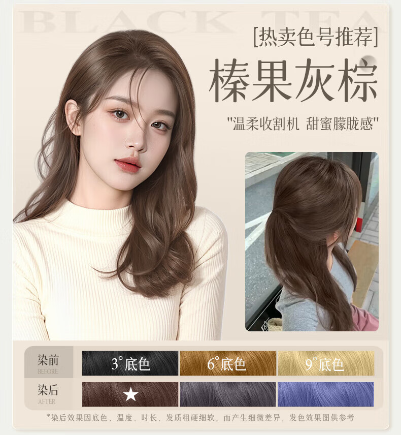 忆丝芸榛果灰棕染发膏100%在家染发剂天然植物无刺盖白纯不沾男女士专用