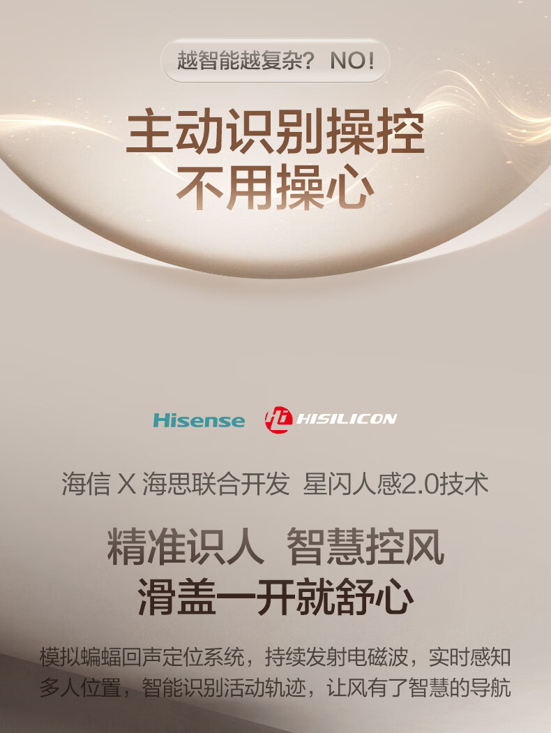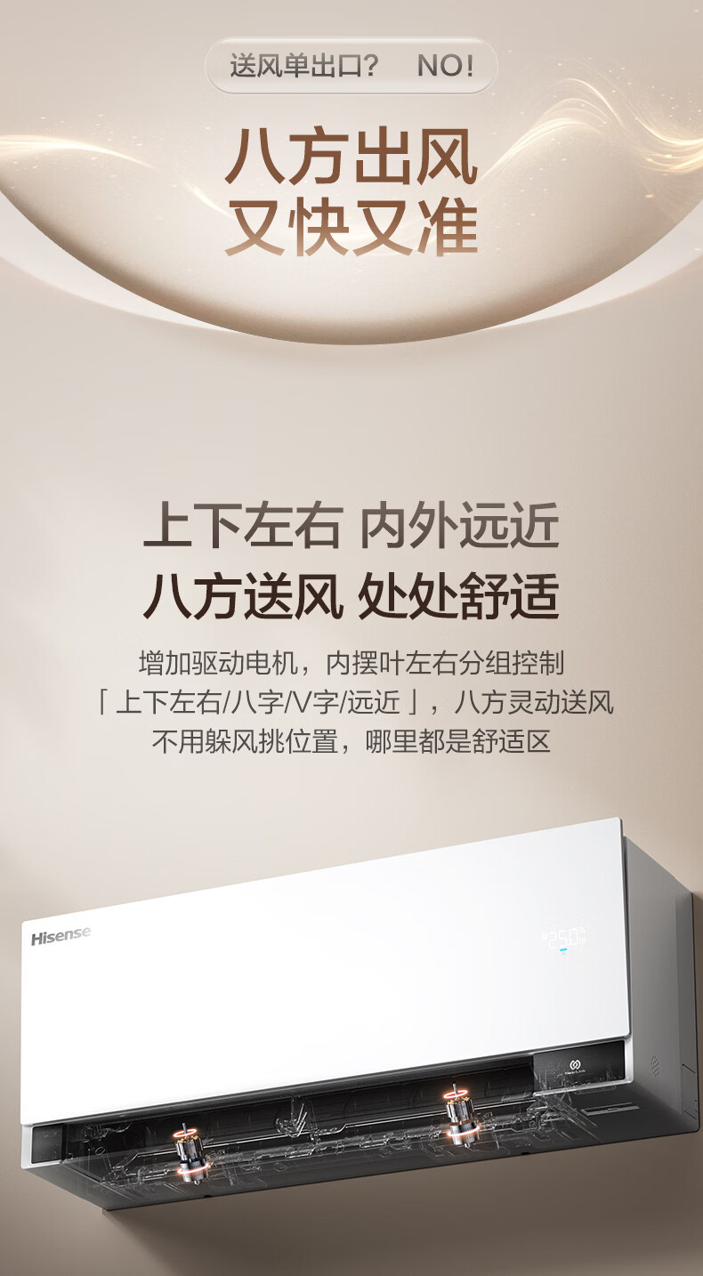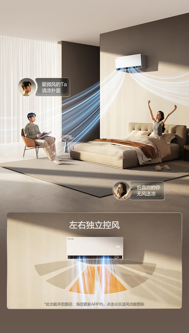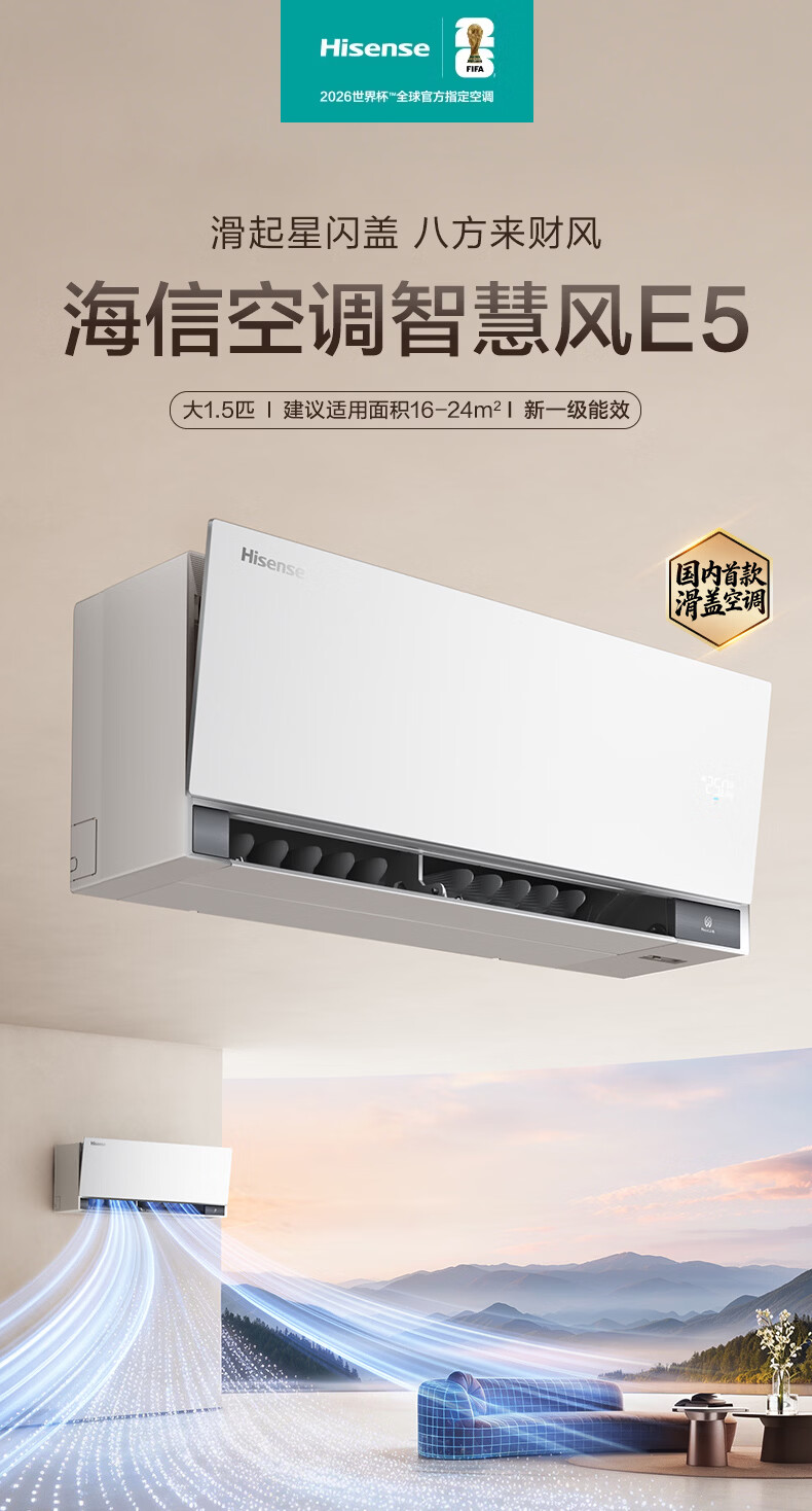 海信(Hisense)智慧风 大1.5匹挂机 星闪人感 风随人动 滑盖开启 Deepseek语音智控 0至90度出风角度 智慧风 E5 大1.5匹 星闪人感 风随人动语音空调 送整机十年包修