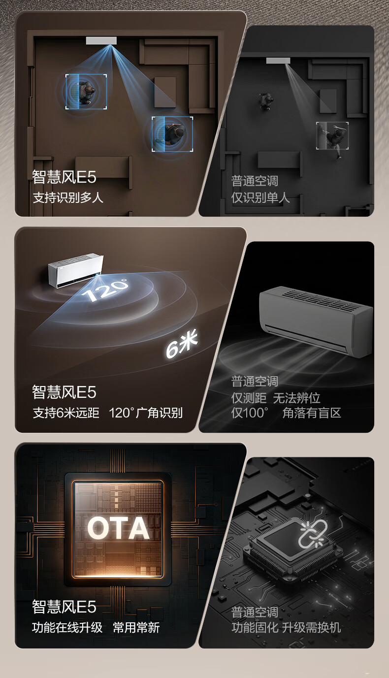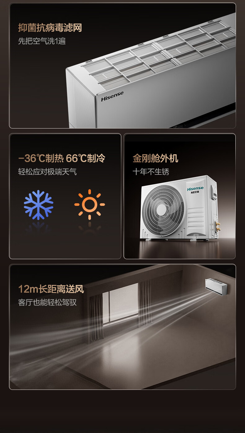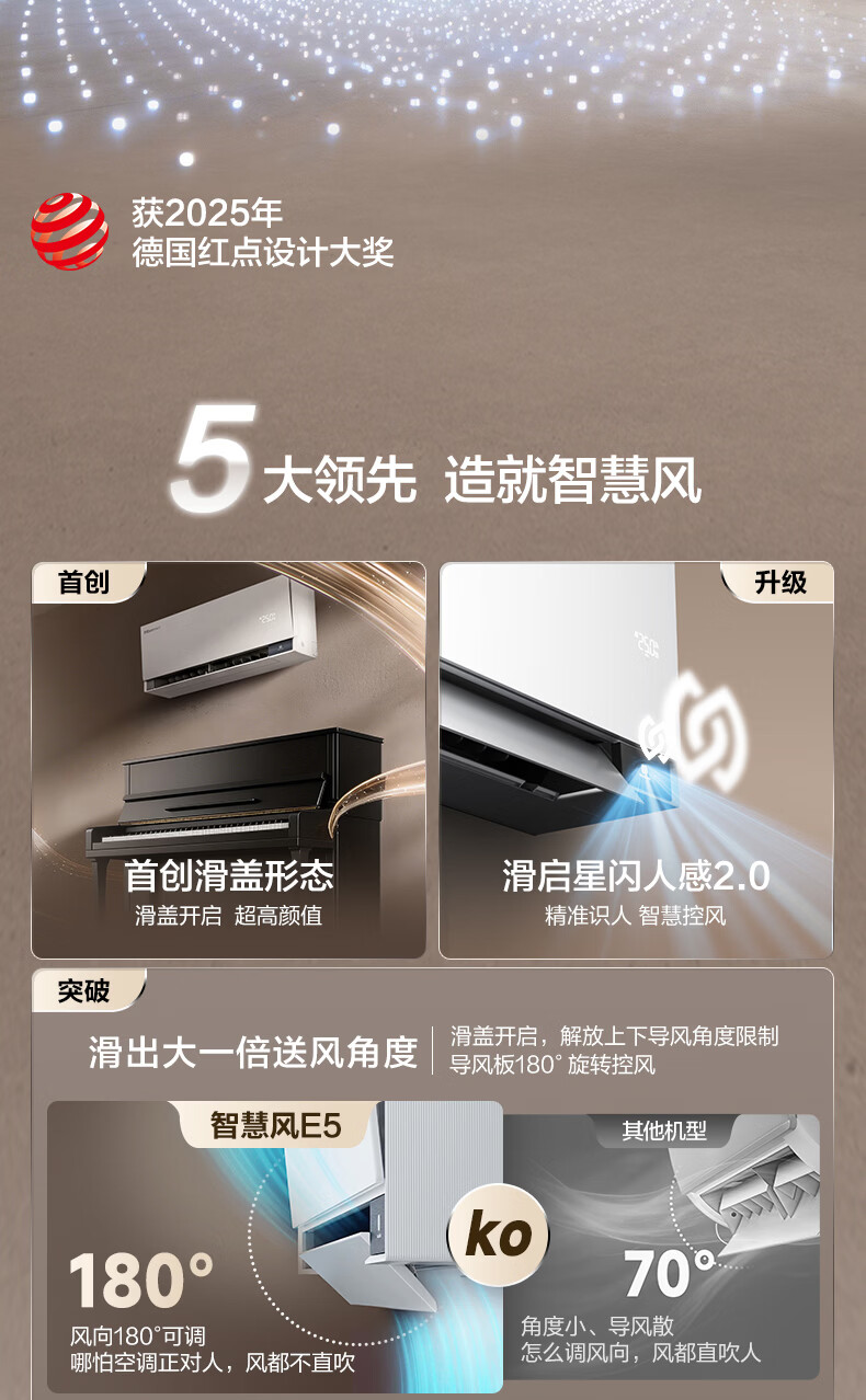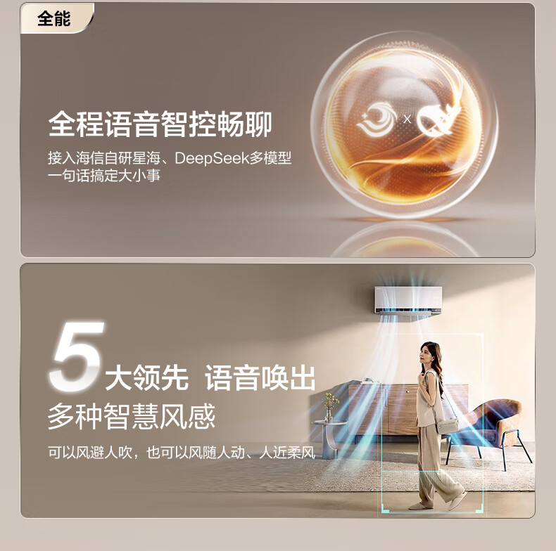 海信(Hisense)智慧风 大1.5匹挂机 星闪人感 风随人动 滑盖开启 Deepseek语音智控 0至90度出风角度 智慧风 E5 大1.5匹 星闪人感 风随人动语音空调 送整机十年包修