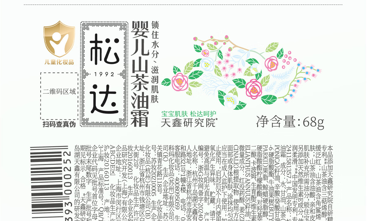 松达儿童面霜干痒红婴儿山茶油霜滋润保湿温和宝宝面霜四季润肤霜 【店长推荐】婴儿面霜68g*2瓶+旅行装