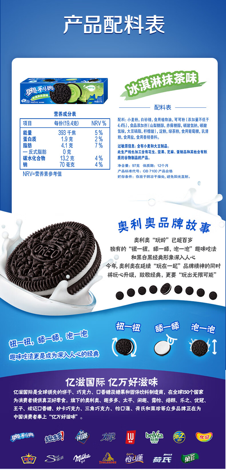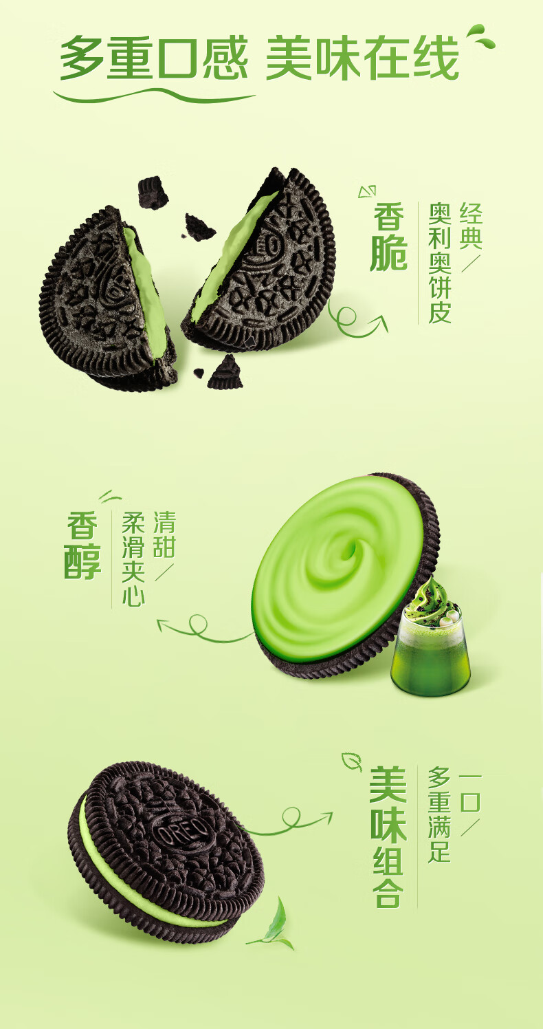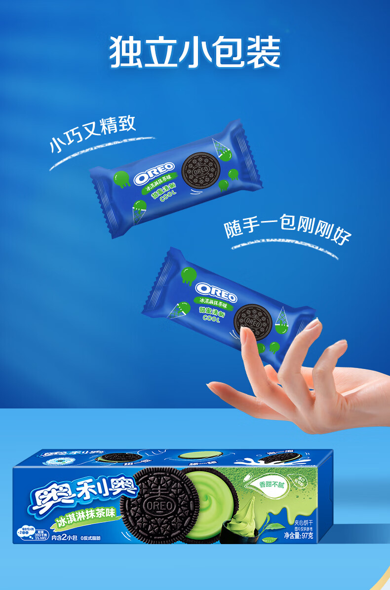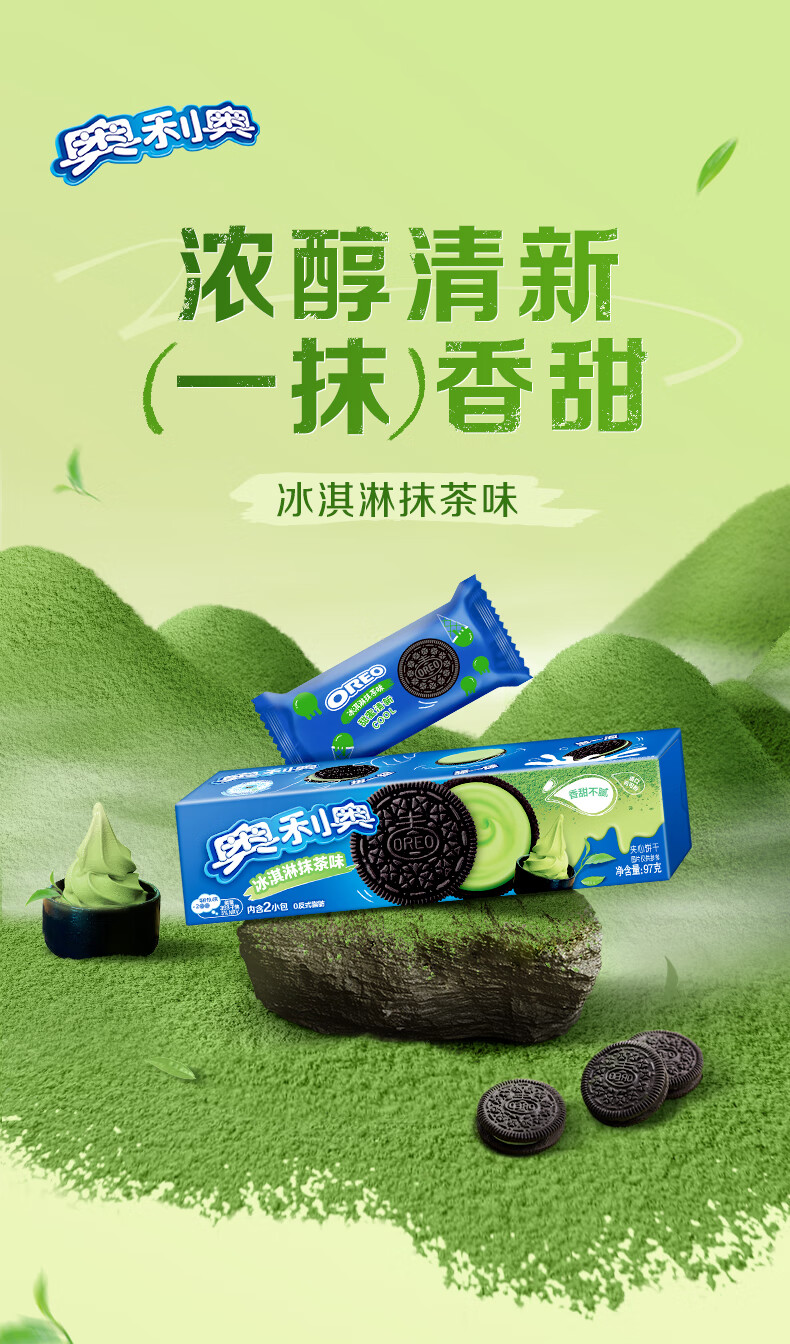 奥利奥(Oreo) 夹心饼干 冰淇淋抹茶味97g 办公室下午茶早餐 休闲零食