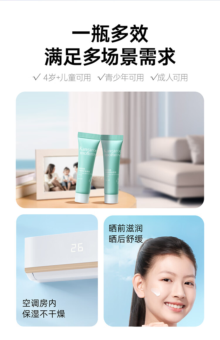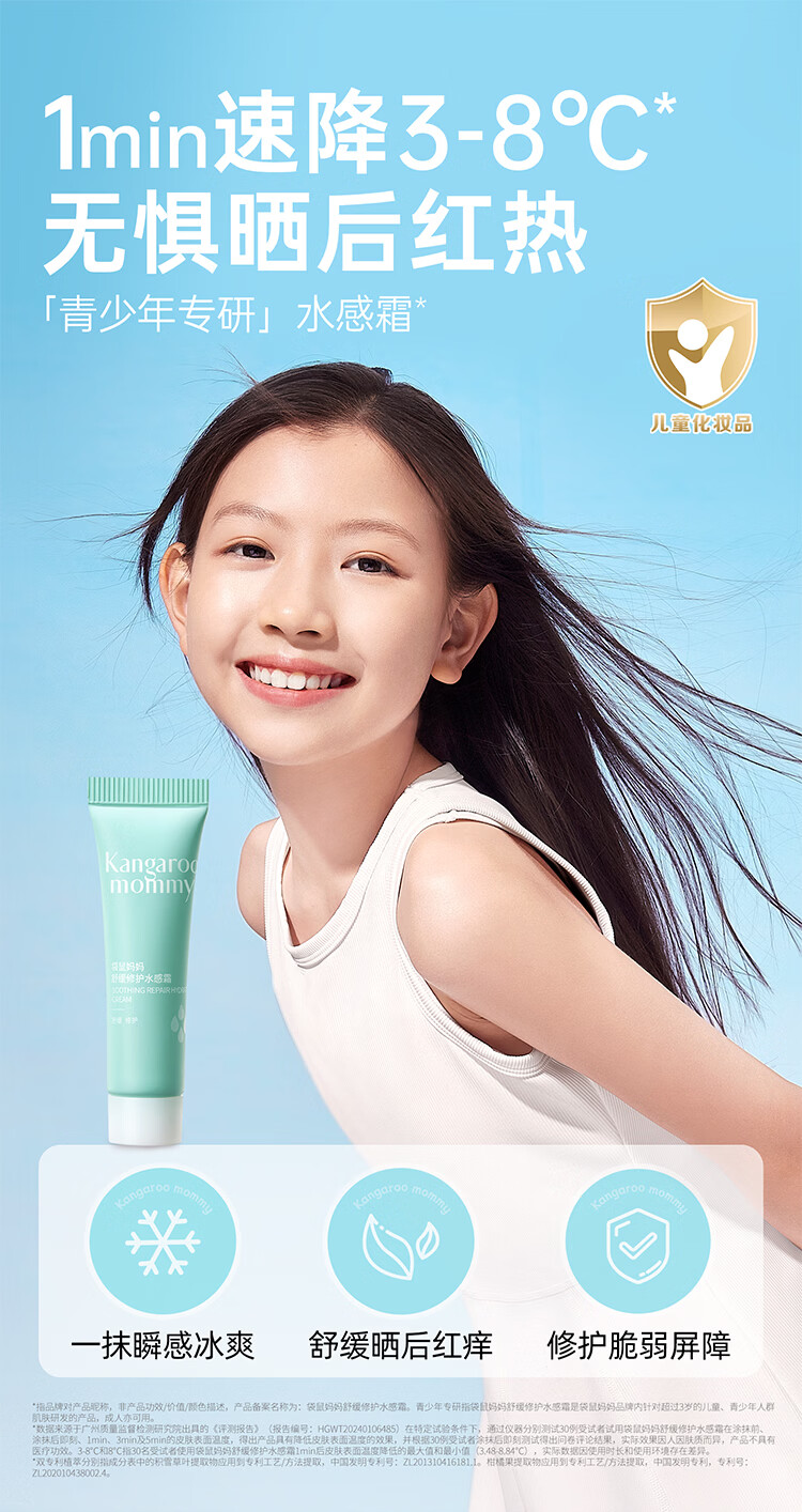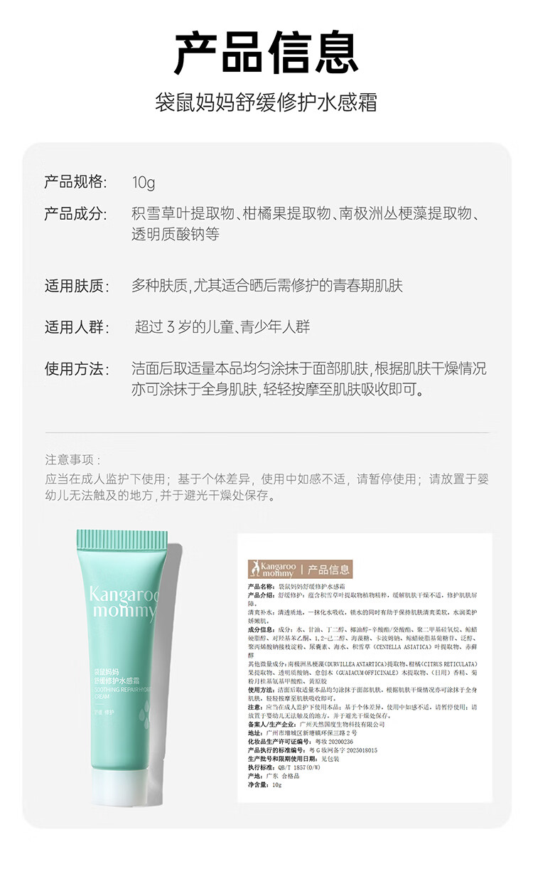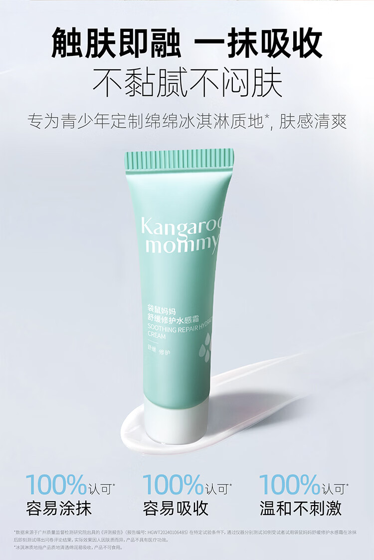 袋鼠妈妈青少年面霜 补水保湿改善干痒红 舒缓修护水感霜10g【试用】