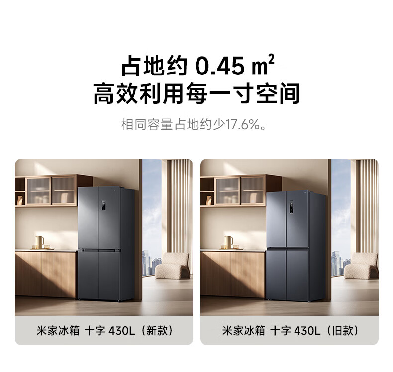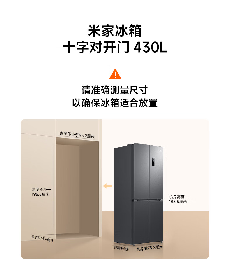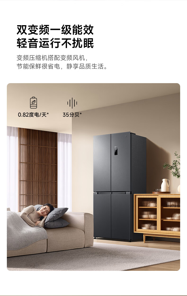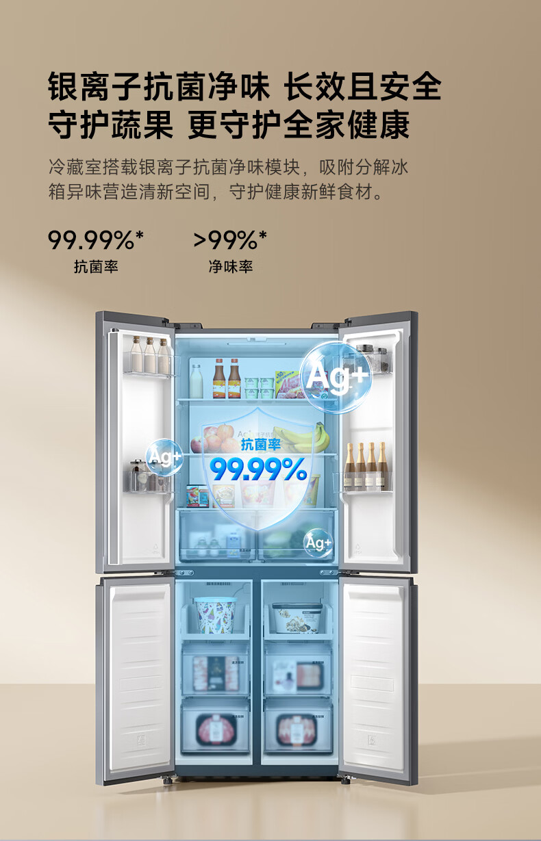 米家小米430L十字对开门冰箱 60cm超薄机身银离子抗菌净味 一级能效变频家用大容量2026款 BCD-430WSMP