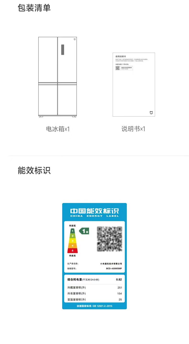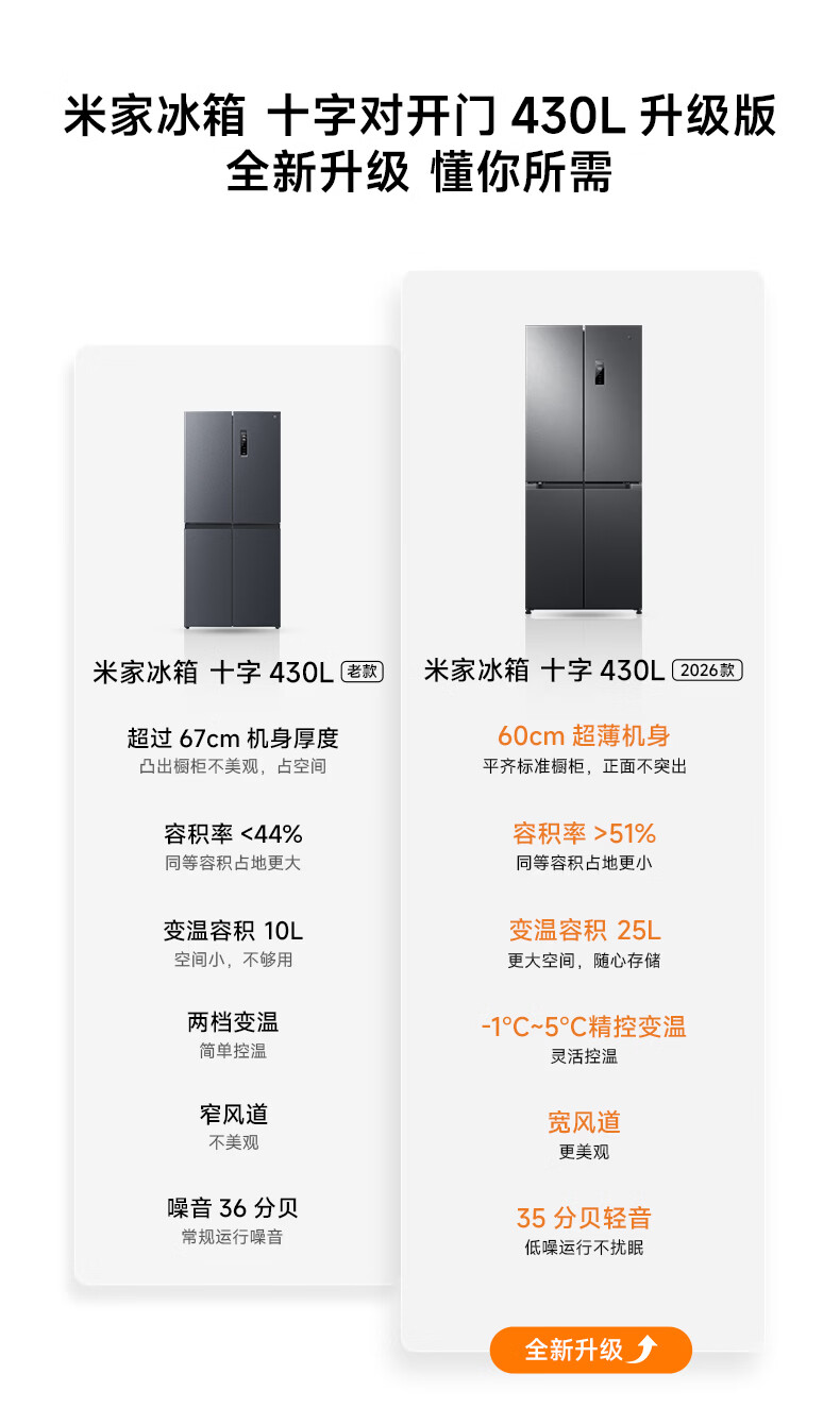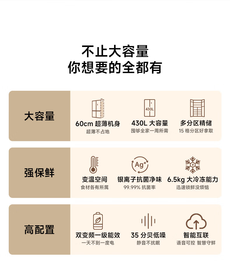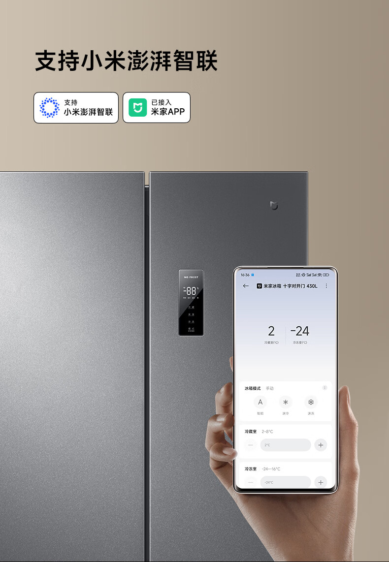 米家小米430L十字对开门冰箱 60cm超薄机身银离子抗菌净味 一级能效变频家用大容量2026款 BCD-430WSMP