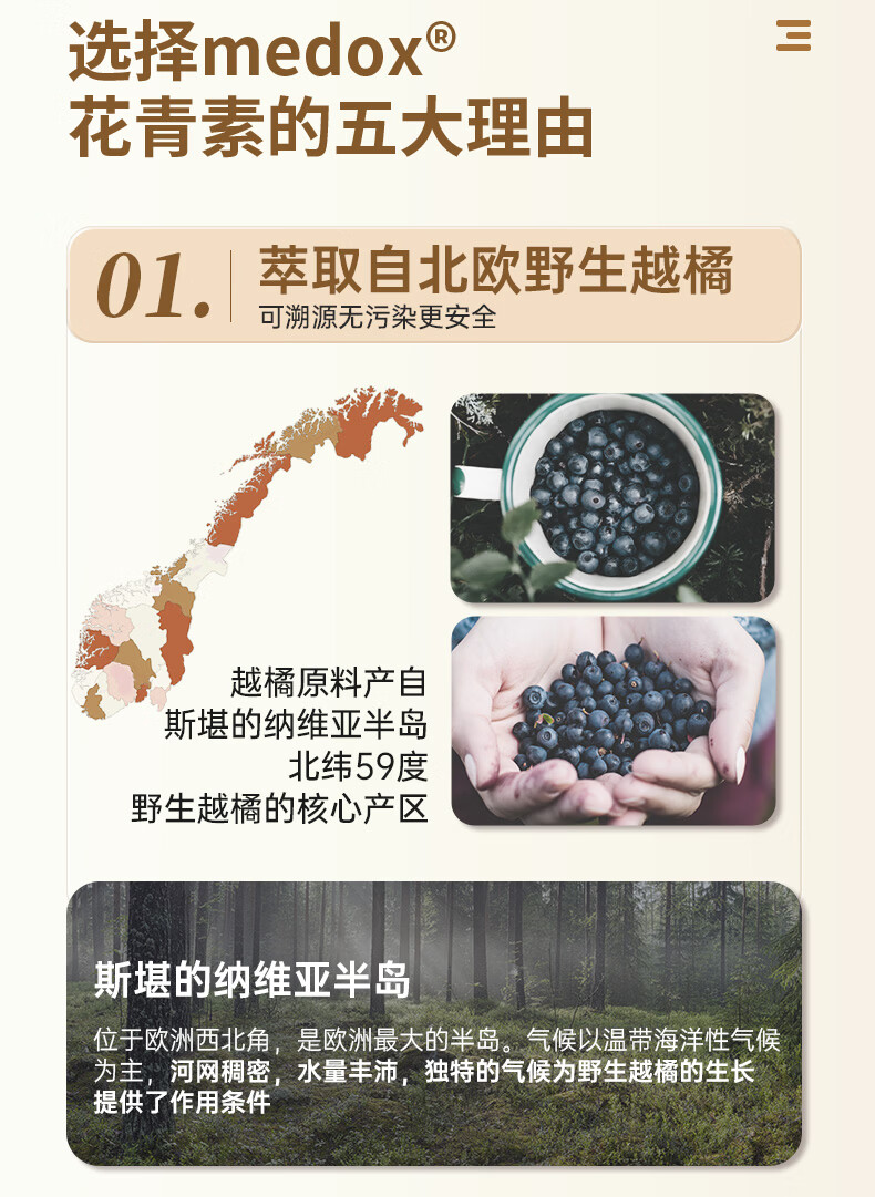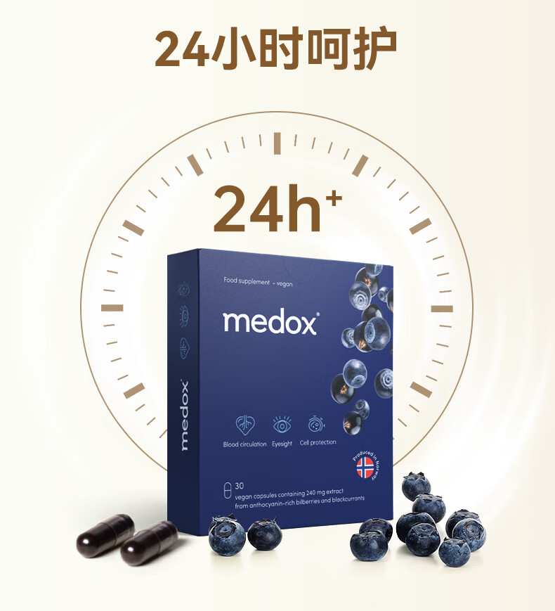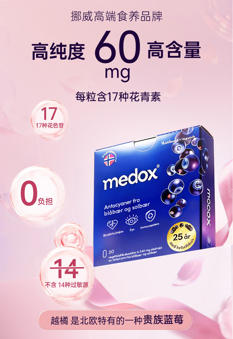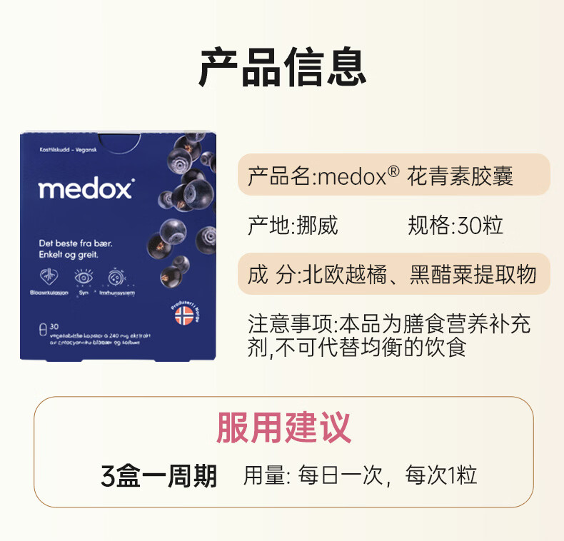 MEDOX挪威天然花青素胶囊野生越橘提取非葡萄籽精华花少礼盒装 30粒*1盒