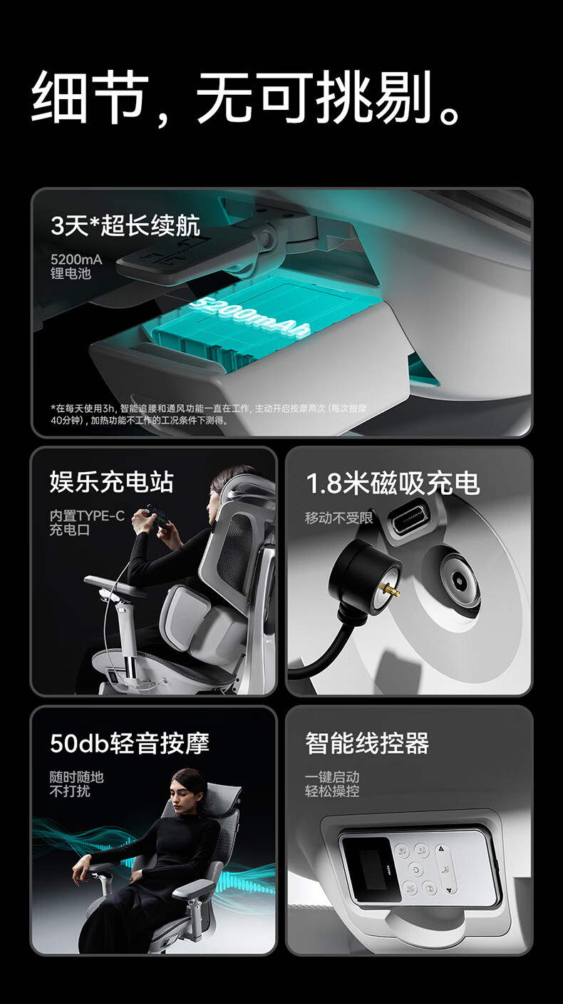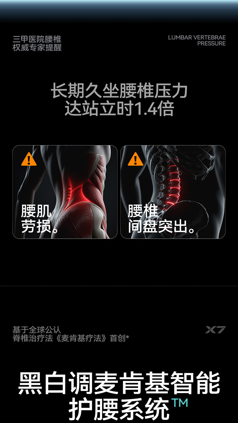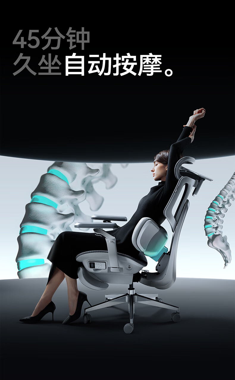 黑白调X7人体工学椅电脑椅办公椅人工力学座椅按摩加热AI智能追腰