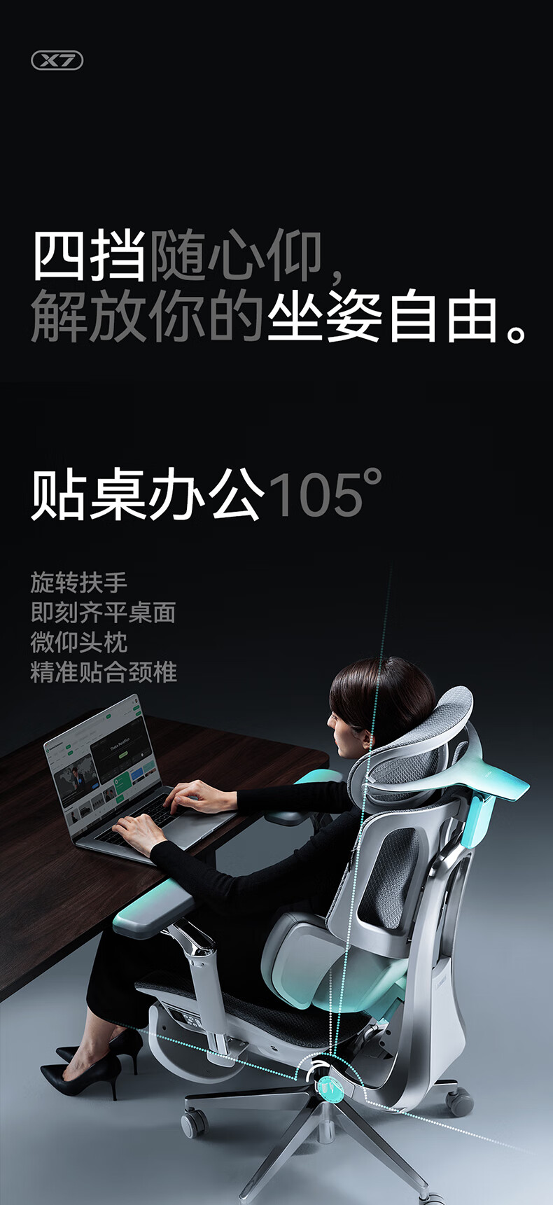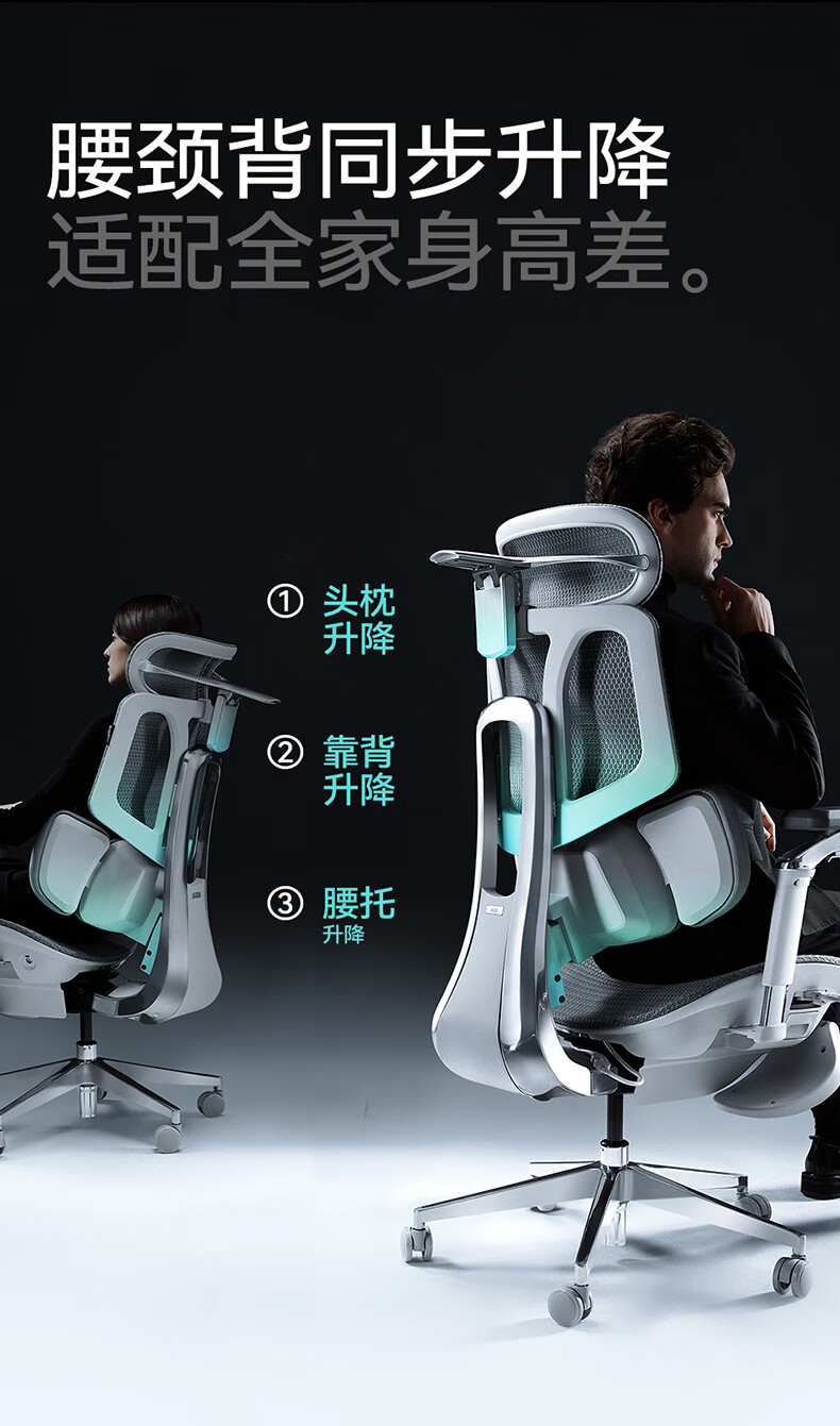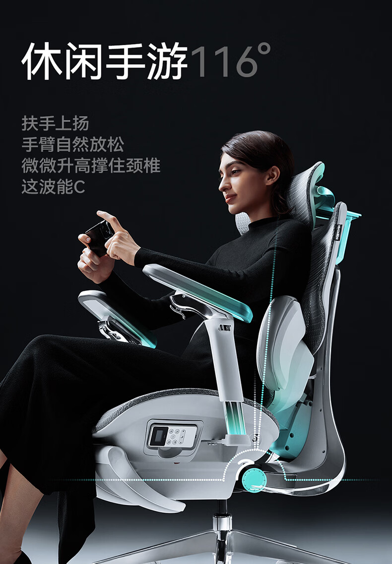 黑白调X7人体工学椅电脑椅办公椅人工力学座椅按摩加热AI智能追腰