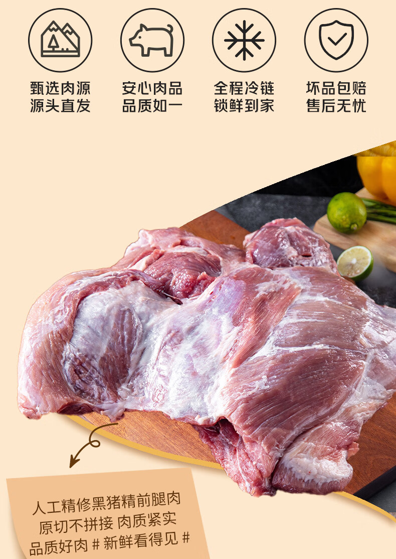 鲜京采黑猪精前腿 净重4斤 猪腿肉黑猪炒菜食材 生鲜 源头直发