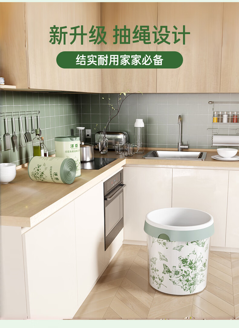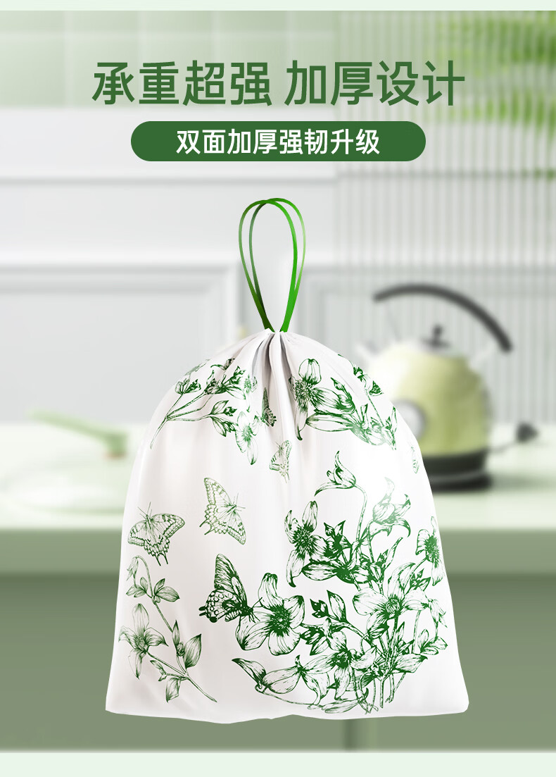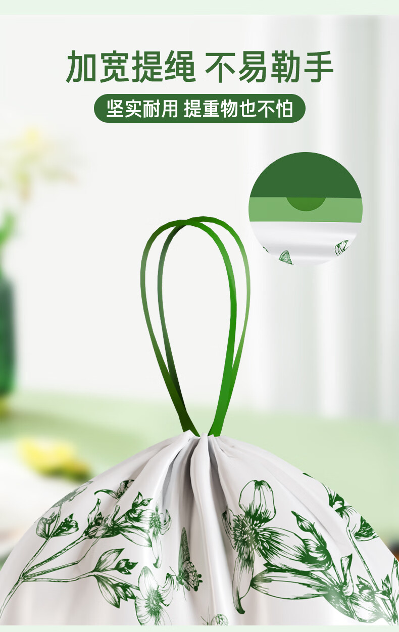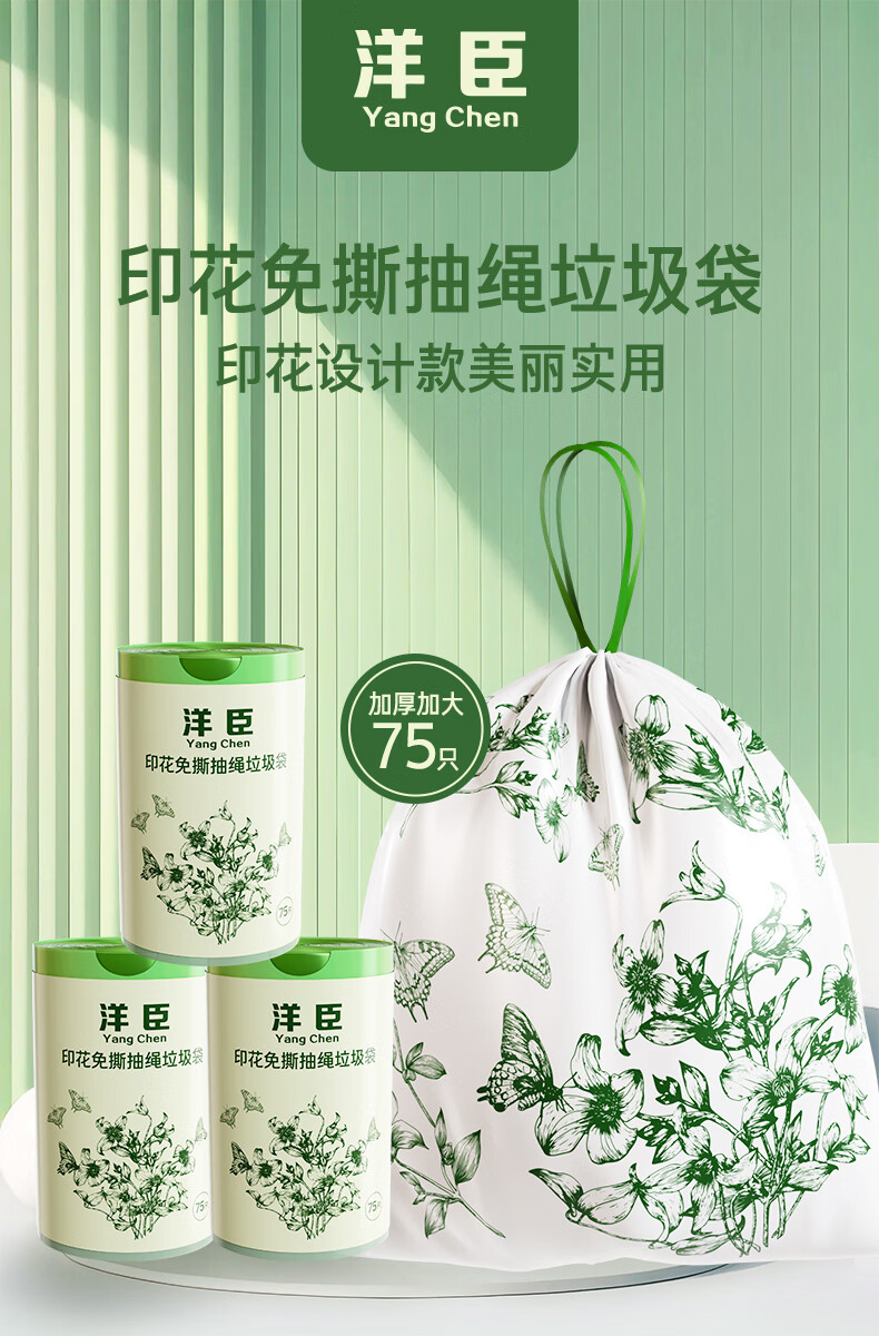 洋臣家用印花抽绳垃圾袋厨房大容量加厚防漏耐高温大号收口手提垃圾袋 2大卷150只【加厚+大承重+免撕款】