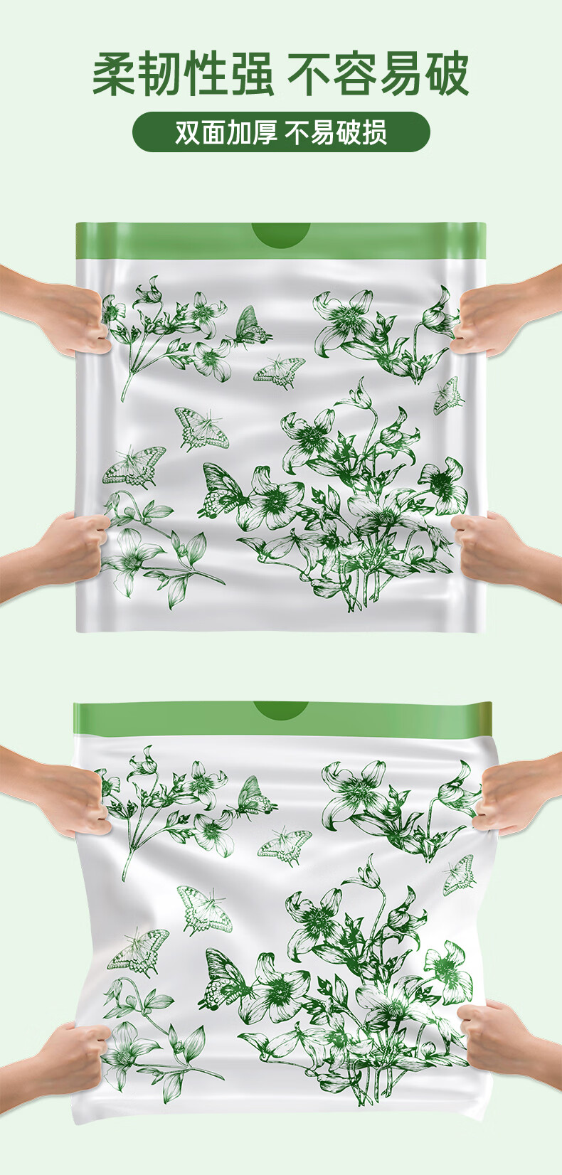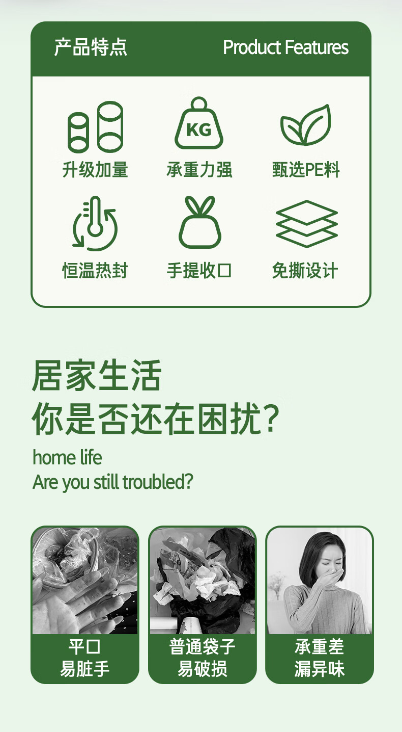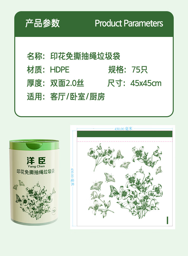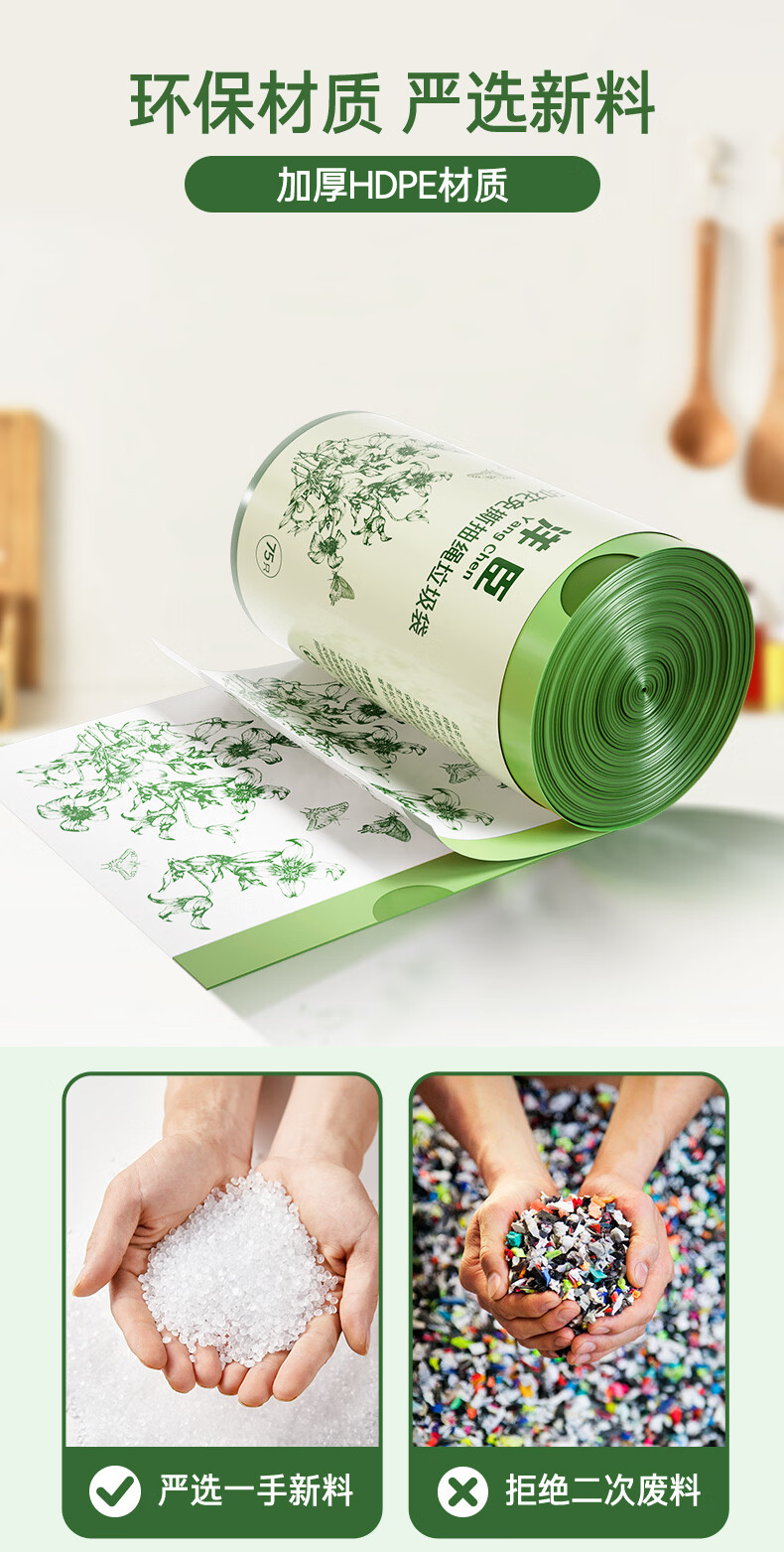 洋臣家用印花抽绳垃圾袋厨房大容量加厚防漏耐高温大号收口手提垃圾袋 2大卷150只【加厚+大承重+免撕款】
