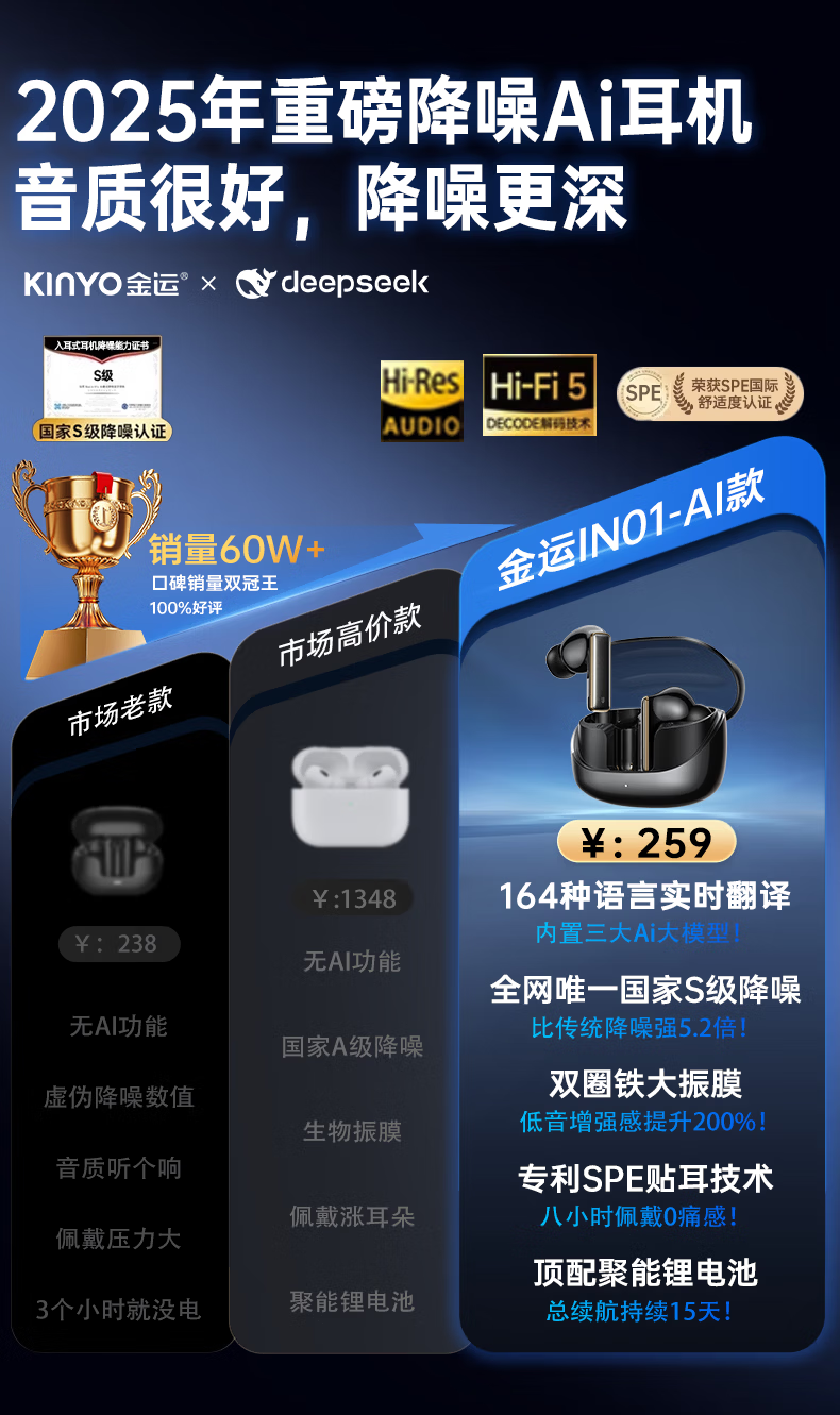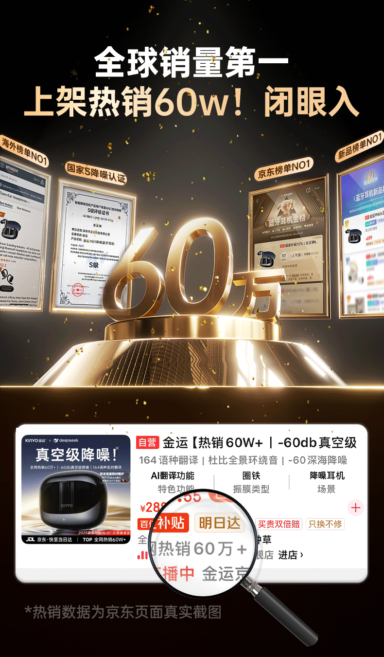 金运【 千元S级降噪认证】主动降噪耳机1金榜第深度降噪蓝牙入耳式超长续航榜前十睡眠隔音柏林之声 【S级降噪丨超舒适入耳】