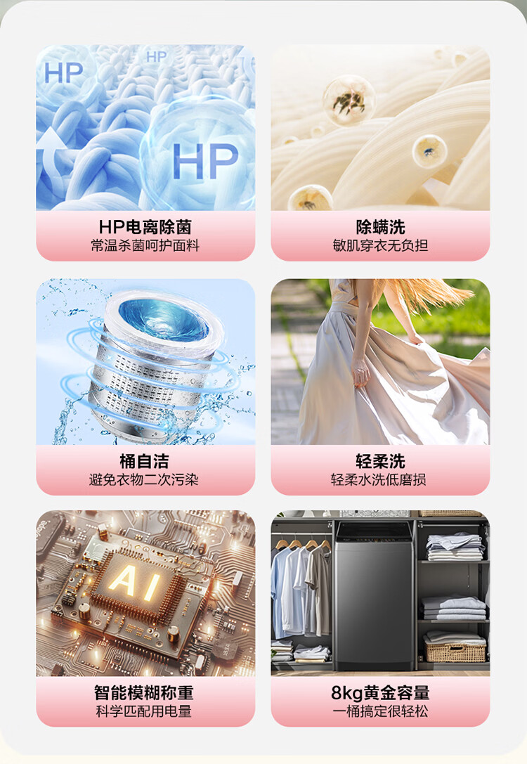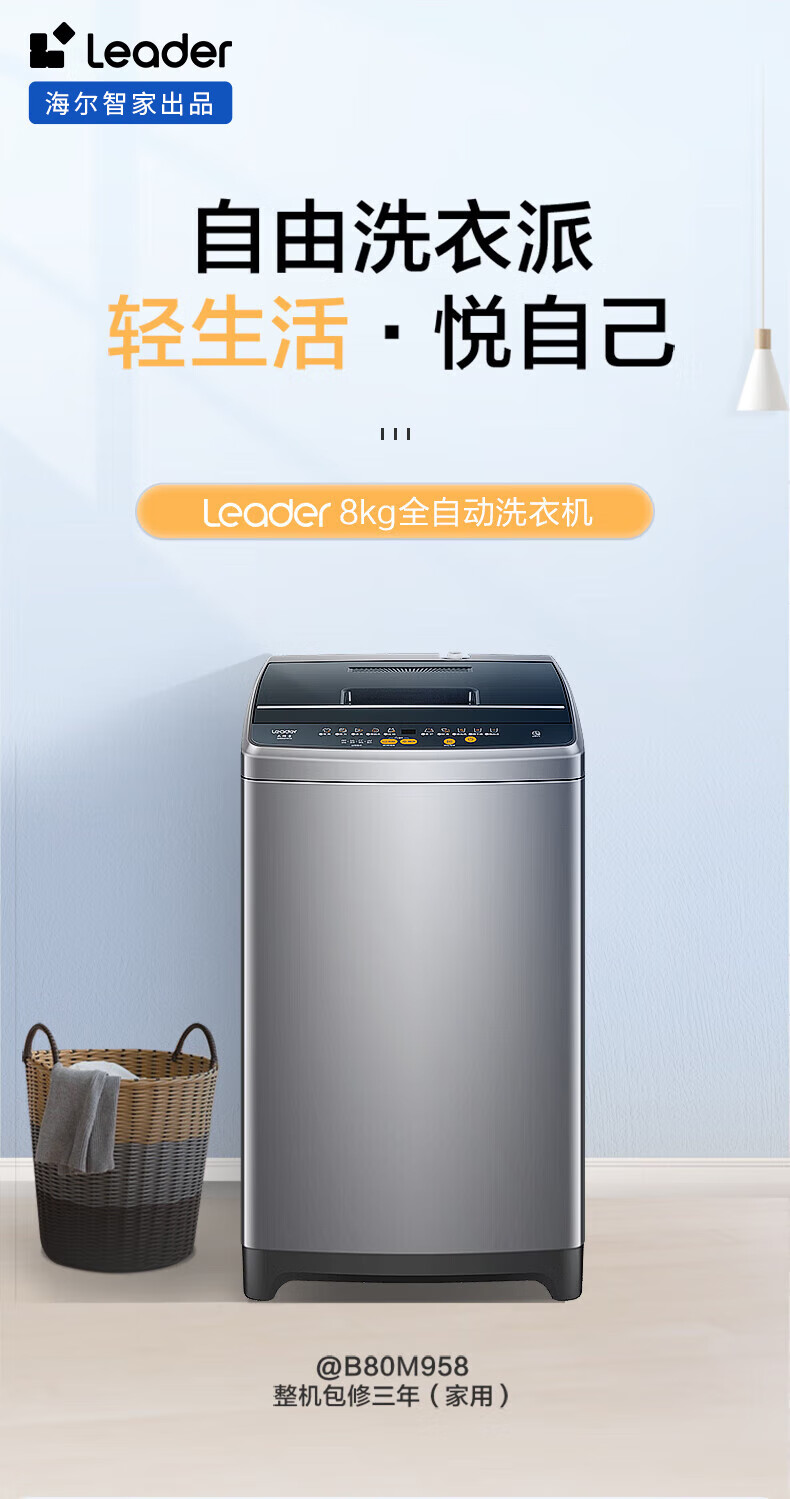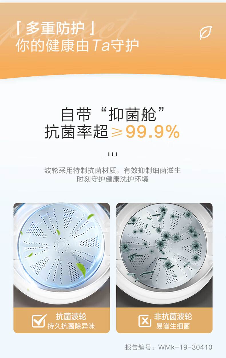 Haier海尔波轮洗衣机8公斤大神童全自动洗脱一体漂甩合一智能称重量衣进水流强度可调租房宿舍家用统帅 抗菌波轮+超净洗+水流强度可调+童锁+桶自洁 波轮