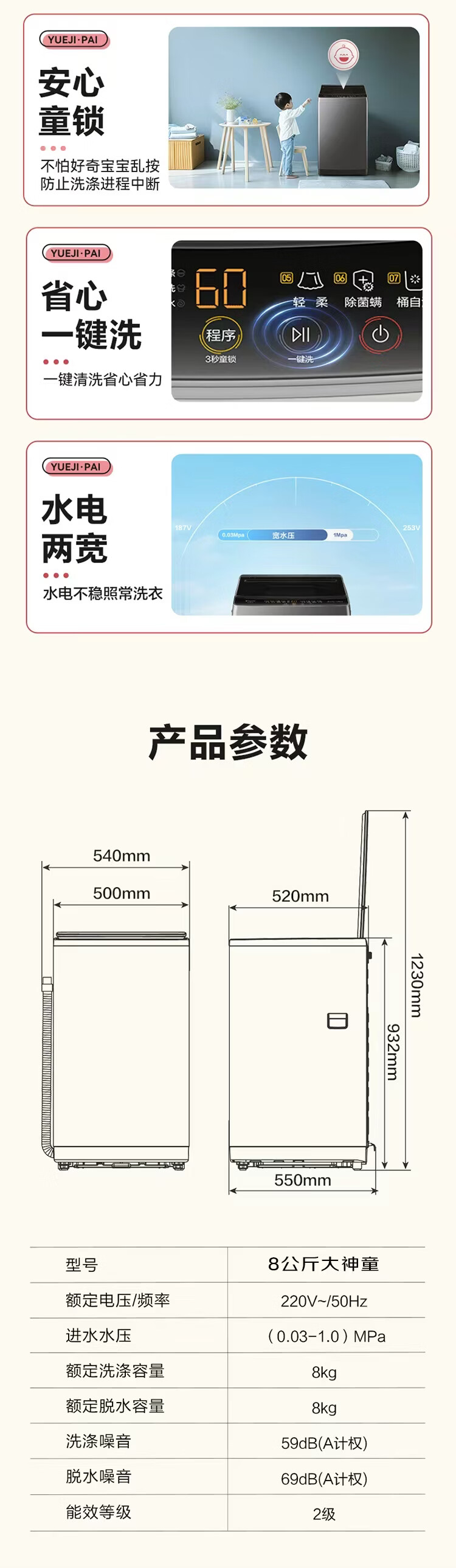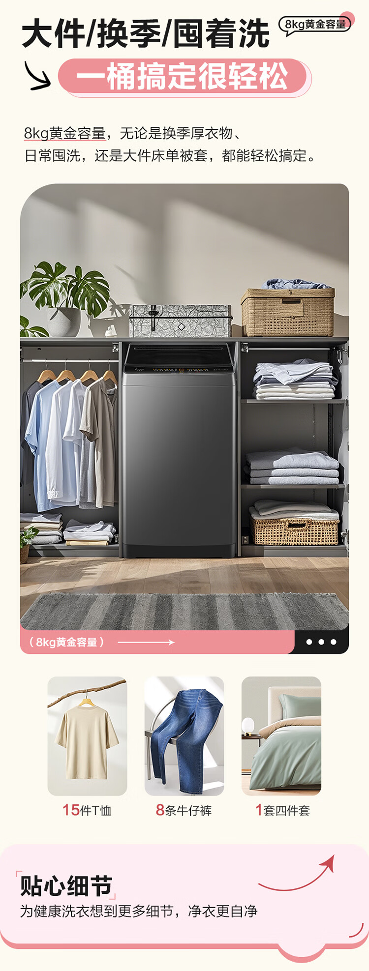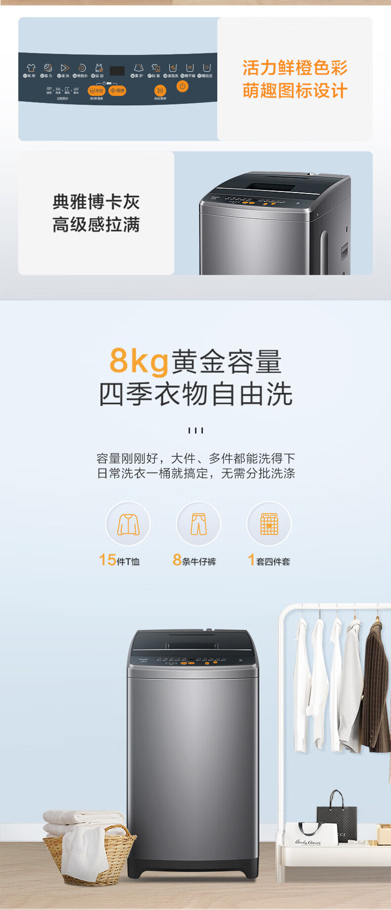 Haier海尔波轮洗衣机8公斤大神童全自动洗脱一体漂甩合一智能称重量衣进水流强度可调租房宿舍家用统帅 抗菌波轮+超净洗+水流强度可调+童锁+桶自洁 波轮