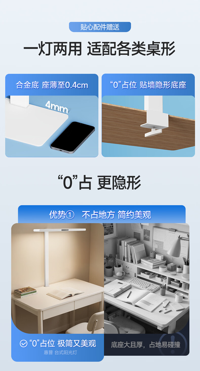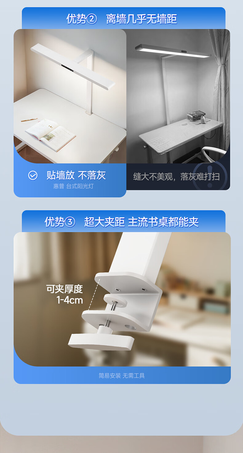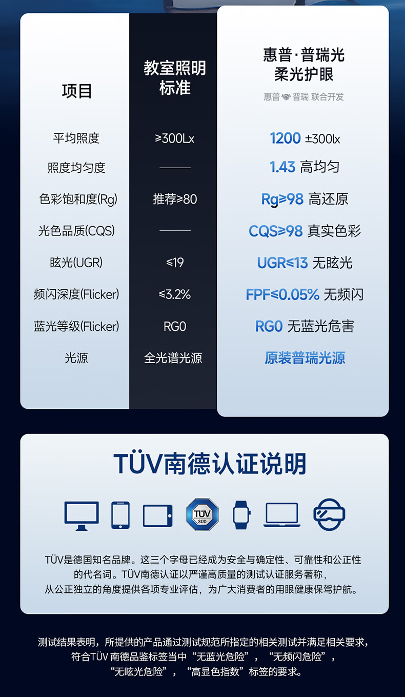 惠普全新升级LED学生儿童卧室防蓝光立式桌面大路灯护眼台灯普瑞光