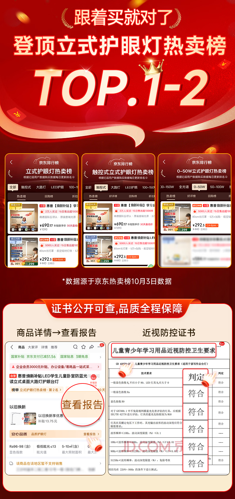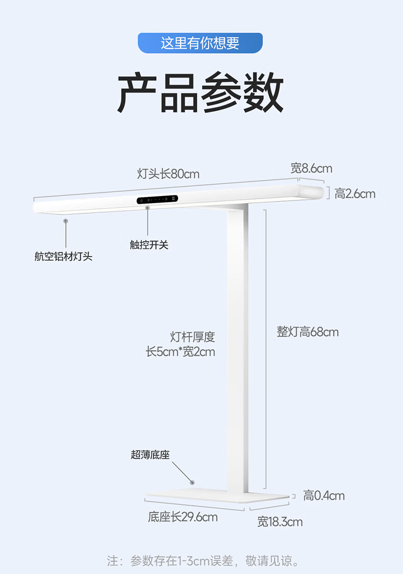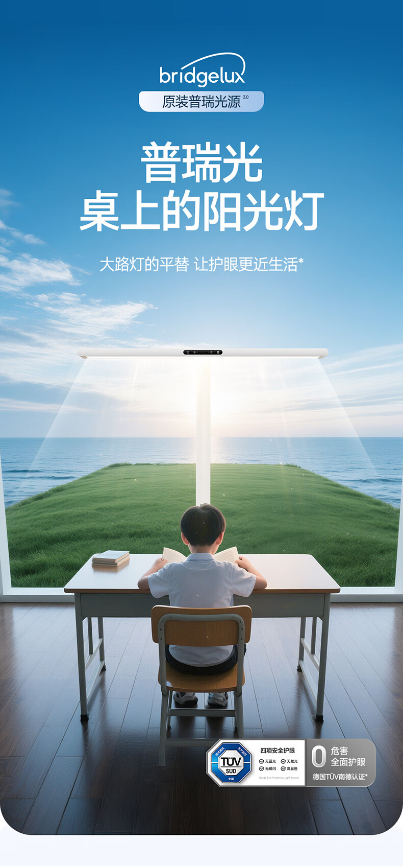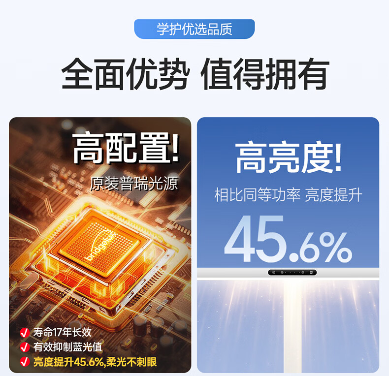 惠普全新升级LED学生儿童卧室防蓝光立式桌面大路灯护眼台灯普瑞光