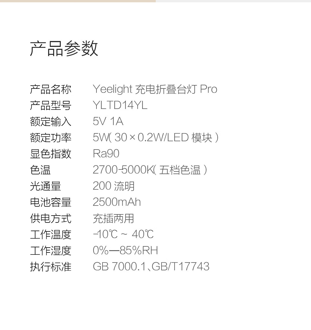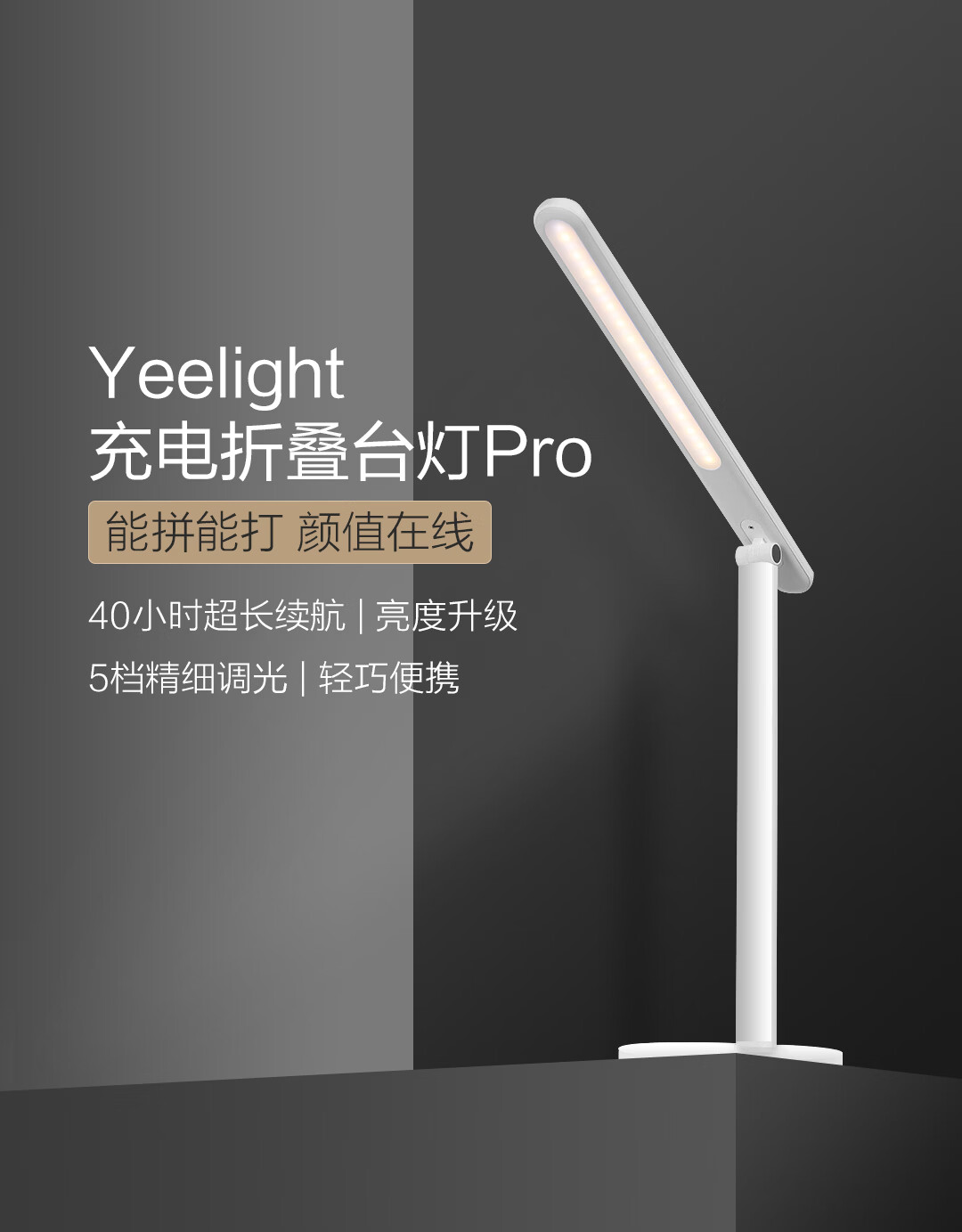 Yeelight折叠充电LED台灯床头灯卧室宿舍多挡可调 Pro版【充插两用】