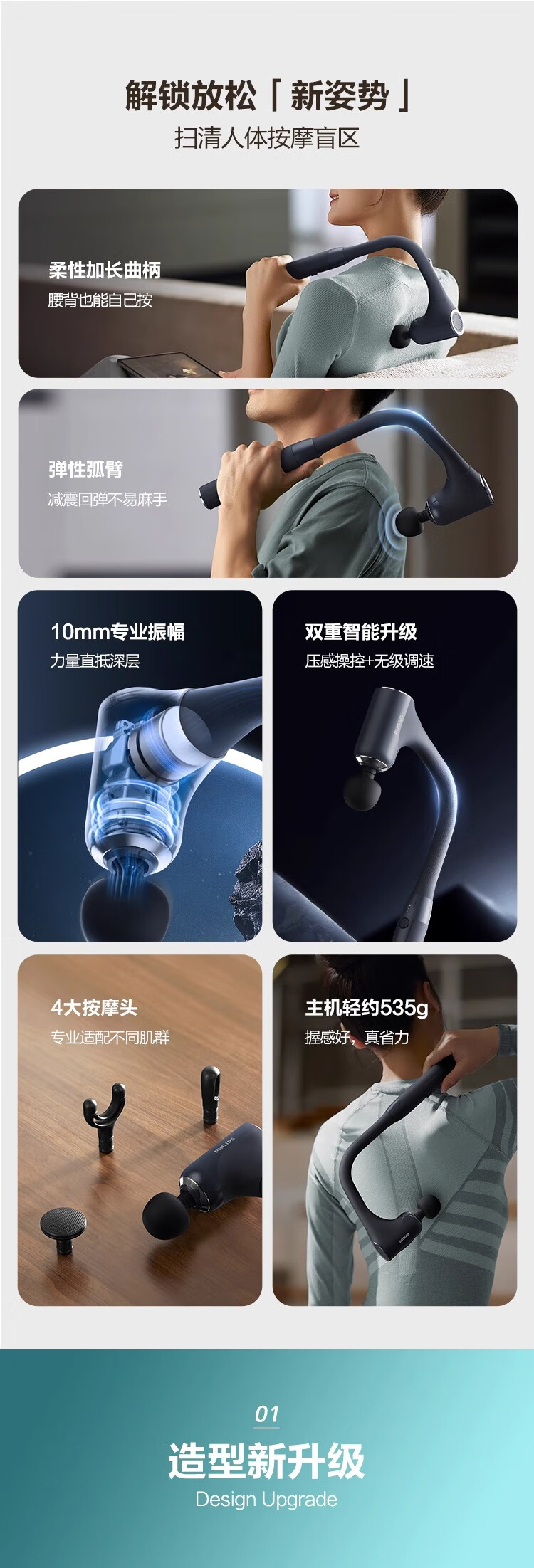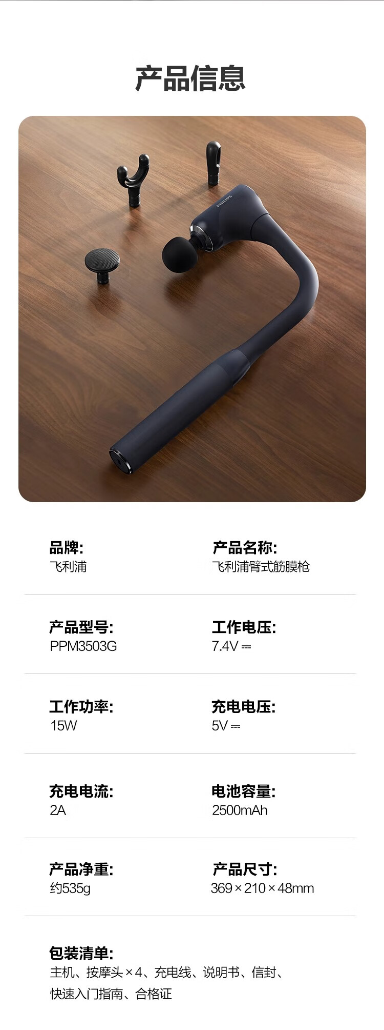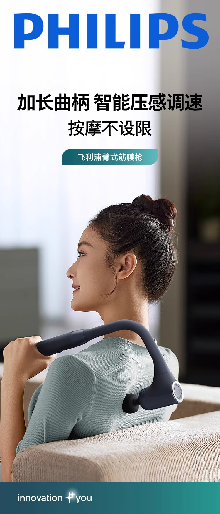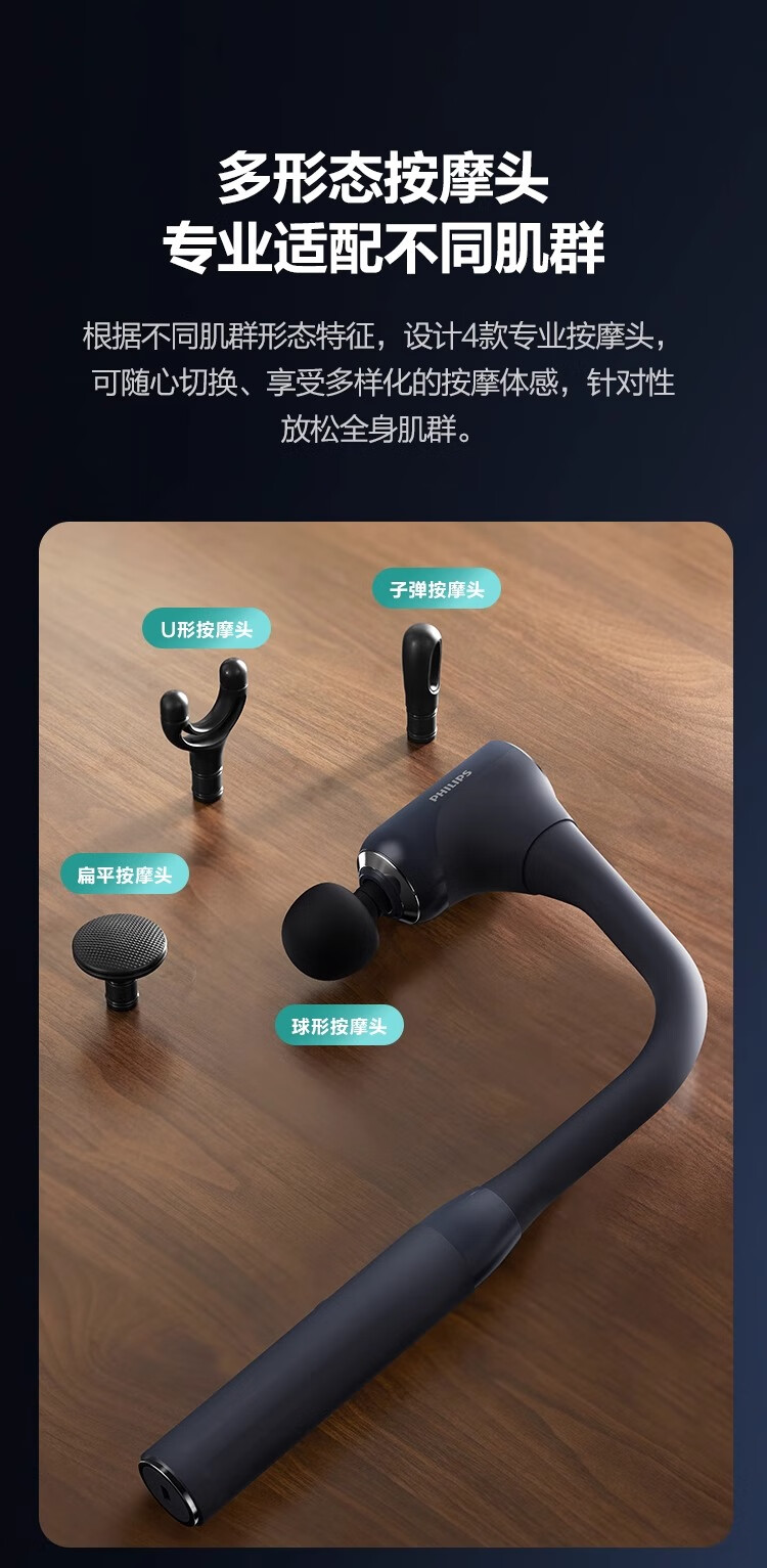 飞利浦不求人3503G筋膜枪按摩枪按摩器肩颈腰背全身肌肉放松多功能震动按摩锤送男女友节日生日礼物