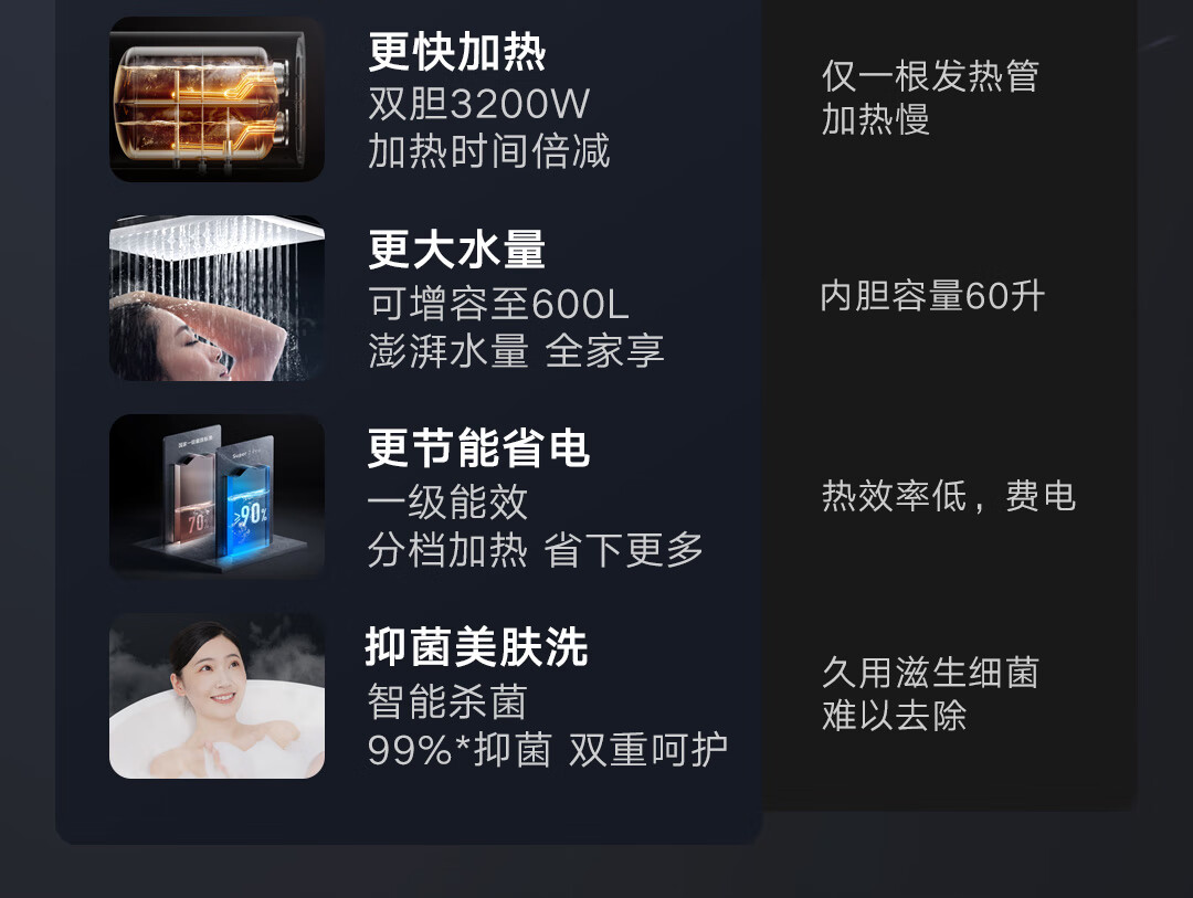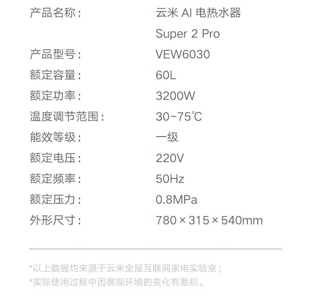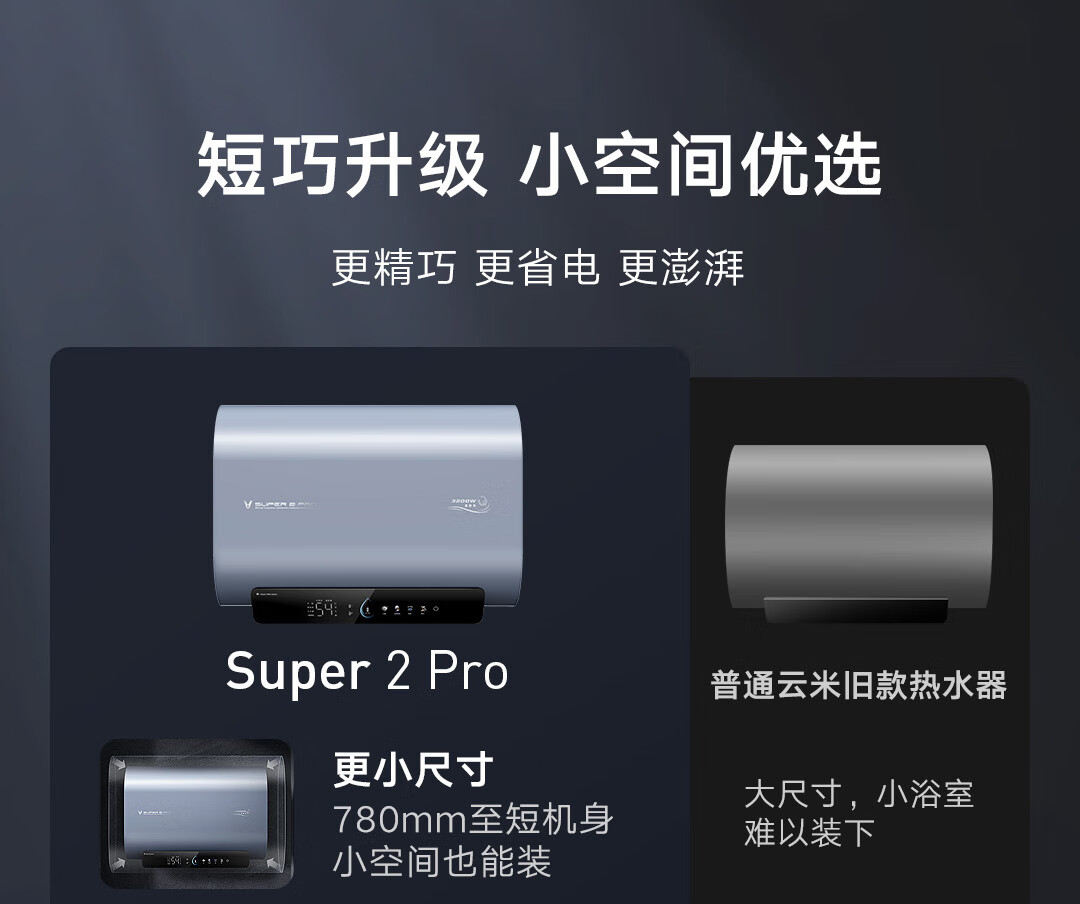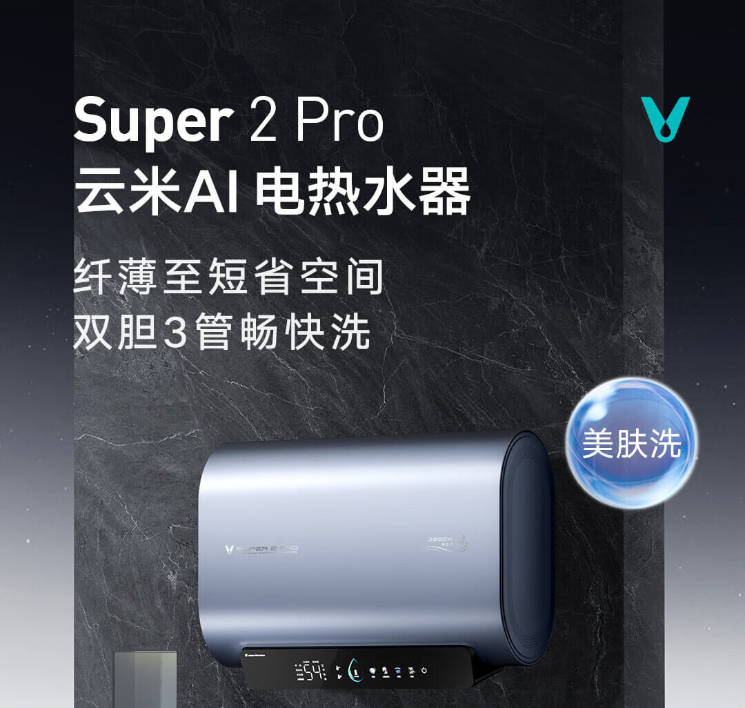 云米(VIOMI)热水器60升扁桶AI家用智能热水器3200W三管速热超薄双胆水质一级能效Super 2 pro 储水式电热水器