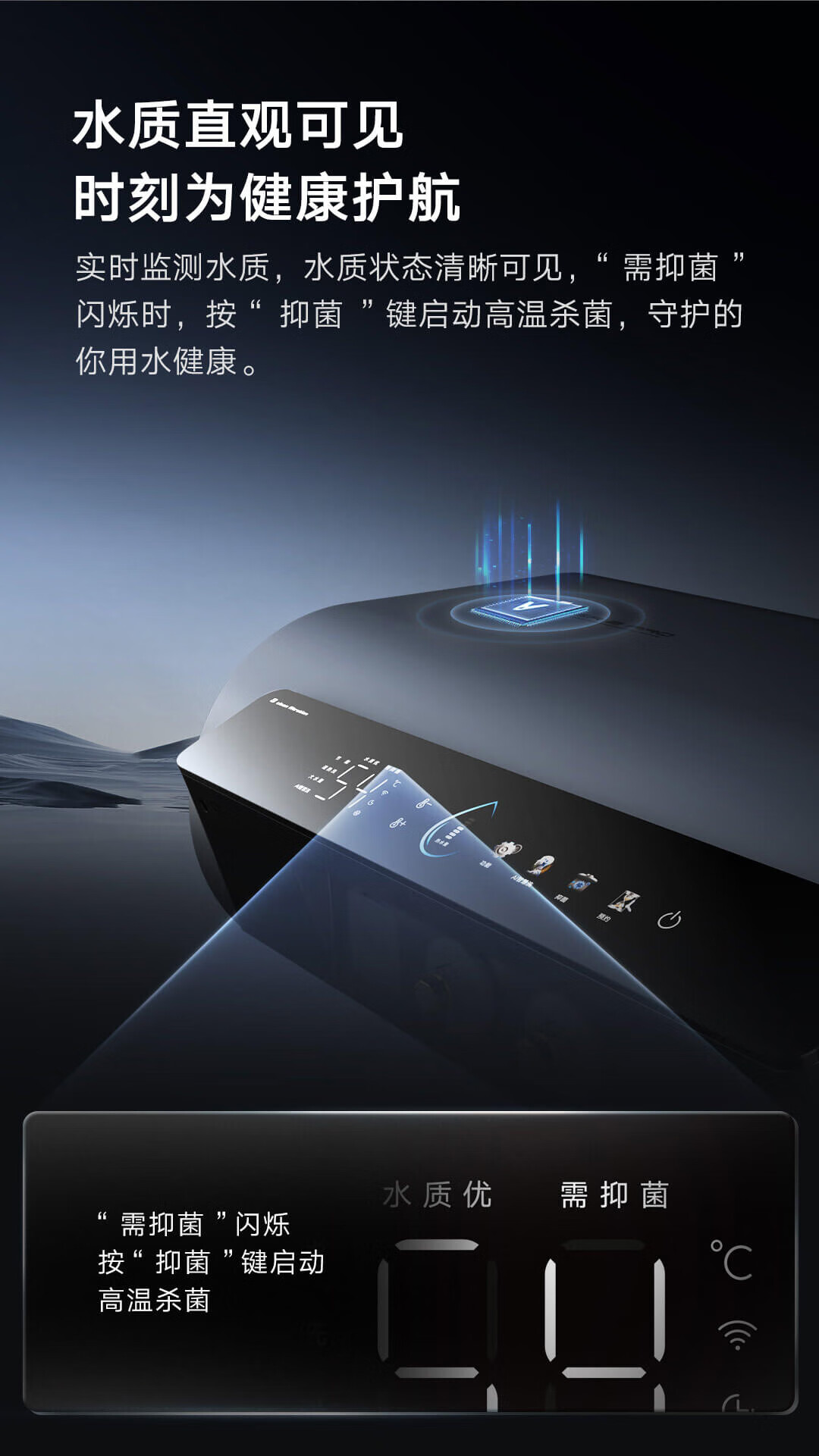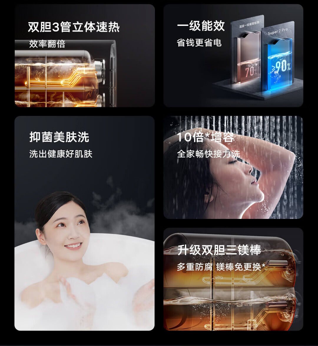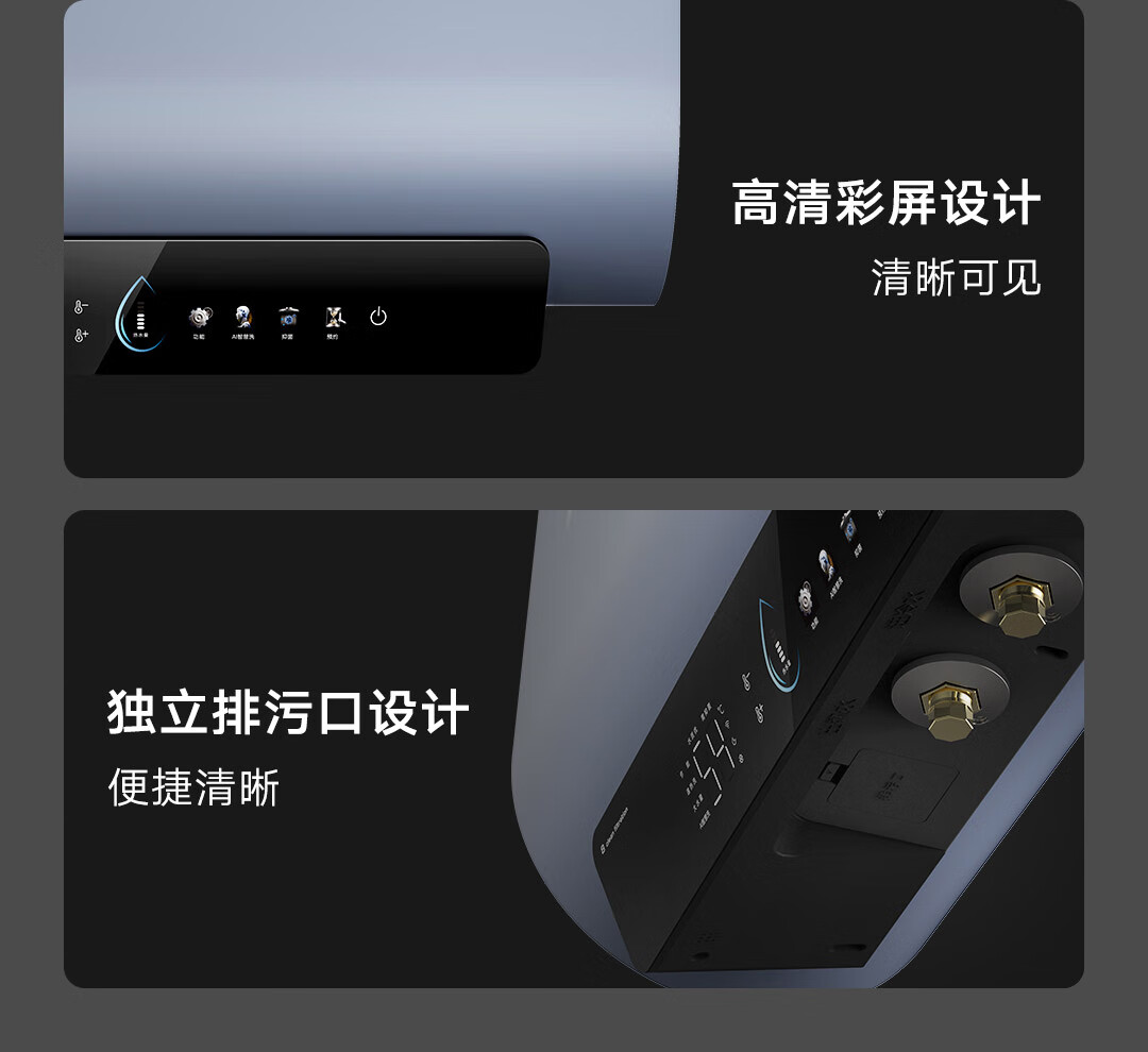 云米(VIOMI)热水器60升扁桶AI家用智能热水器3200W三管速热超薄双胆水质一级能效Super 2 pro 储水式电热水器