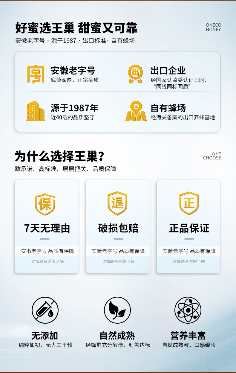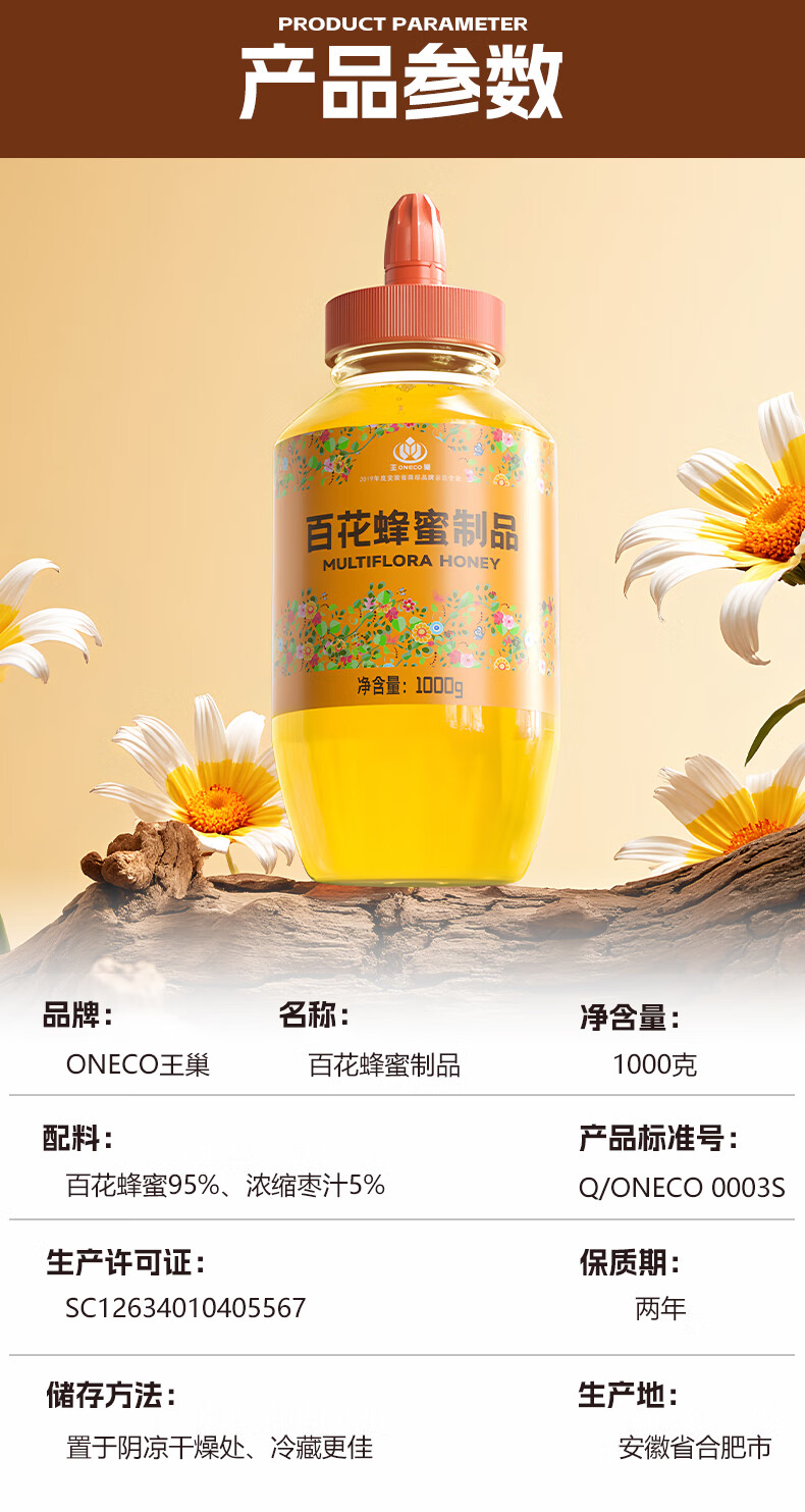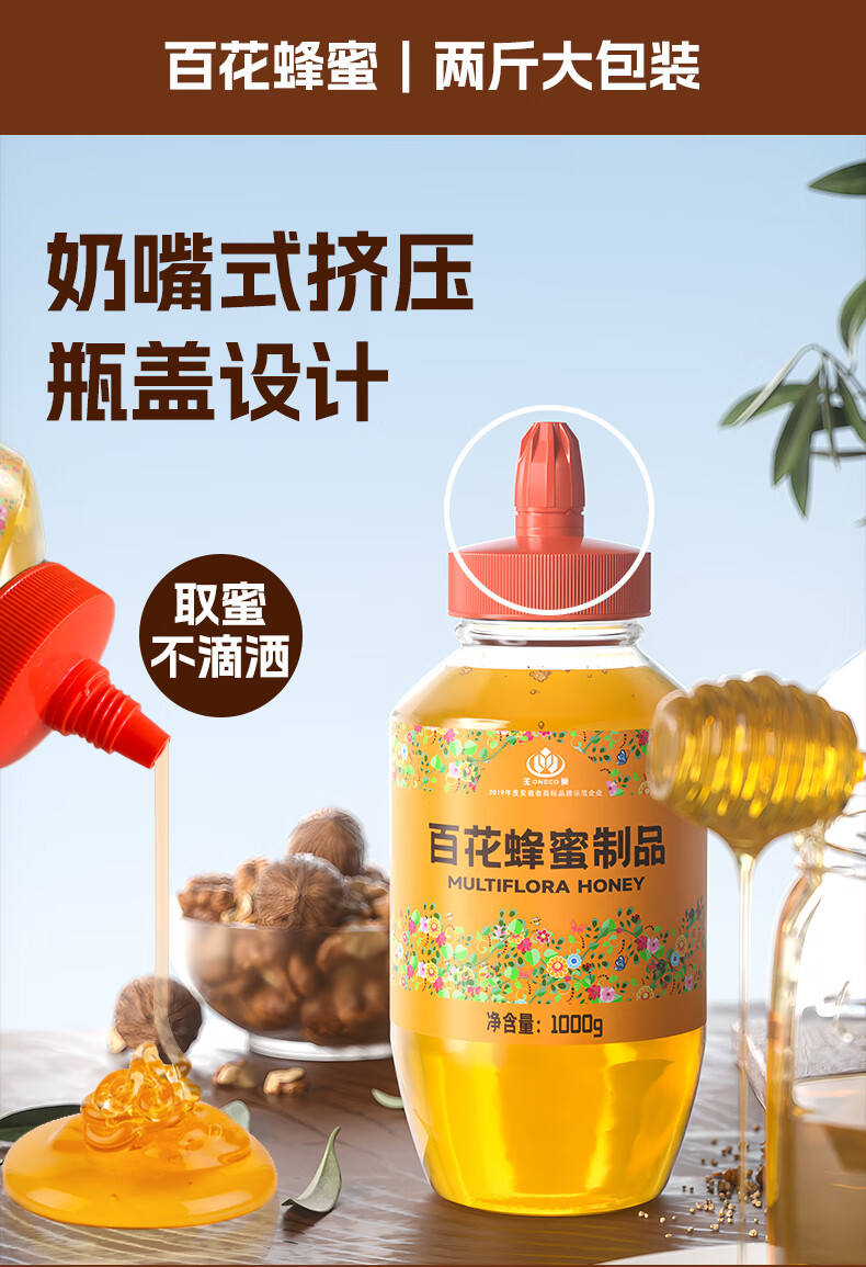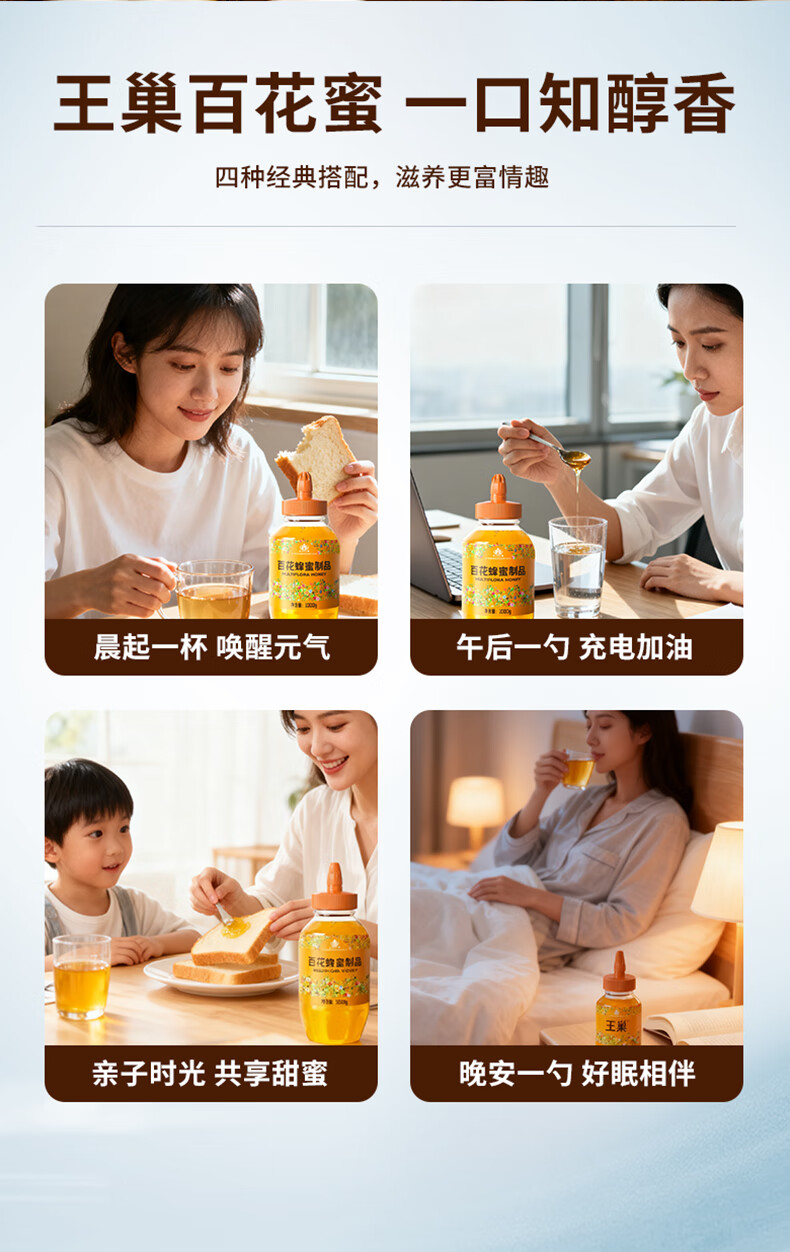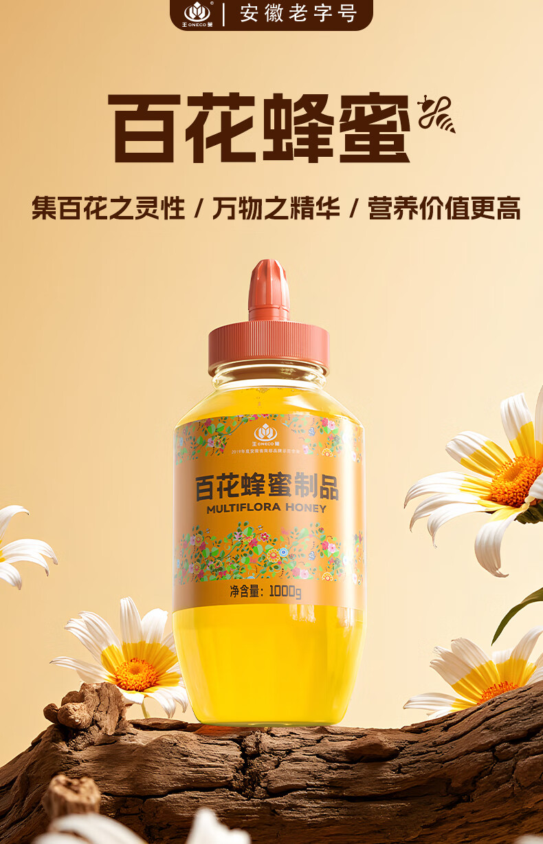 王巢百花蜂蜜 出口转内销蜂蜜1000克 礼物送父母 安徽老字号