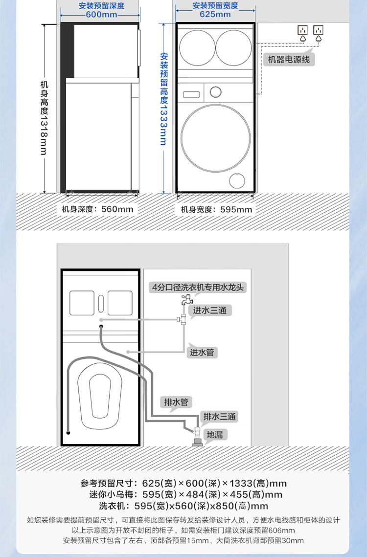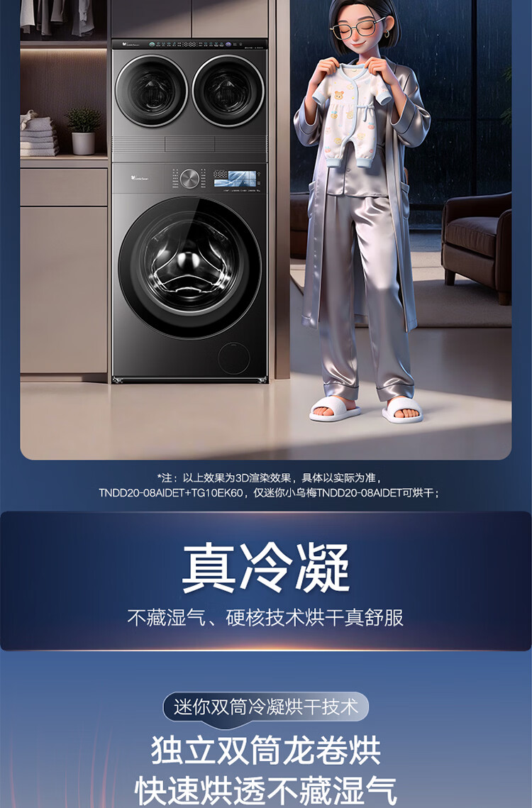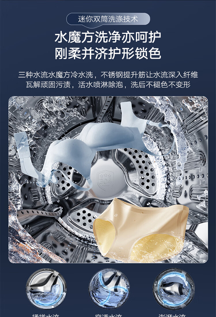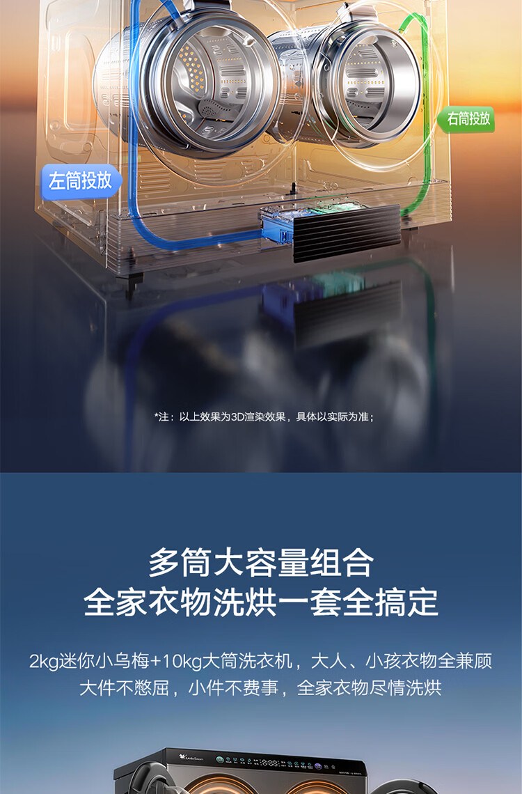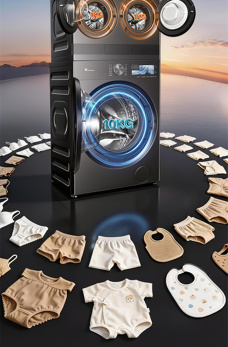 小天鹅(LittleSwan)迷你小乌梅PRO AWE同款 懒人三筒洗衣机 滚筒洗衣机全自动套装 2+10KG TG10EK60 可叠放 内衣洗