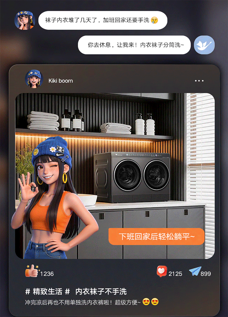 追觅【刘亦菲同款】双黄蛋双舱分区洗烘一体0.5KG+0.5KG滚筒双桶洗衣机智投 DWM01M30WACN