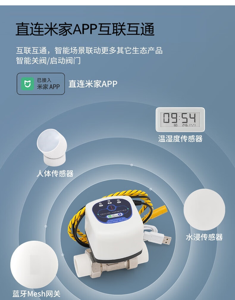 水享 ATENJOY WC已接入米家智能阀开关搭配网关遥控漏水燃气报警自动关阀门控制器 已接入米家智能阀DN25/1寸内外丝