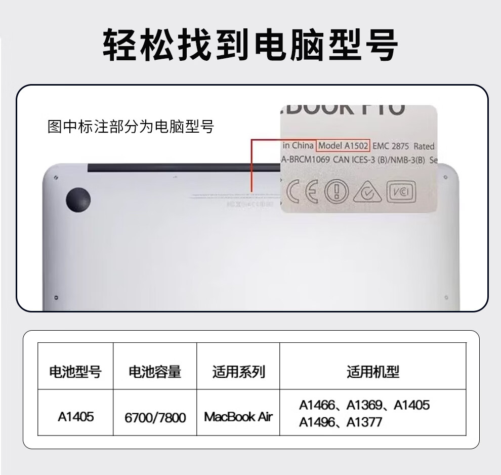 栢特利适用苹果笔记本电池 MacBook Air13寸 A1466 A1369 A1405 A1496 A1377电脑电池稳定耐用原厂芯片 【标准版】A1466笔记本电池|7000mAh 国家3C安全认证