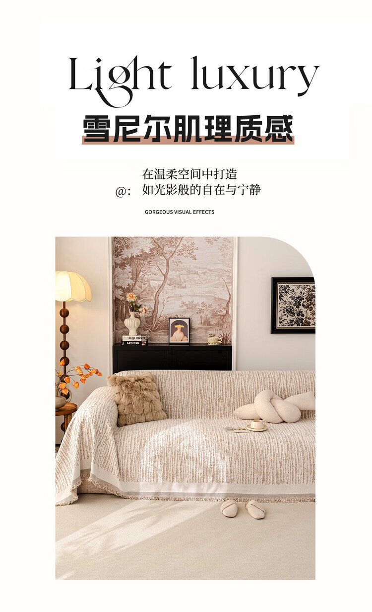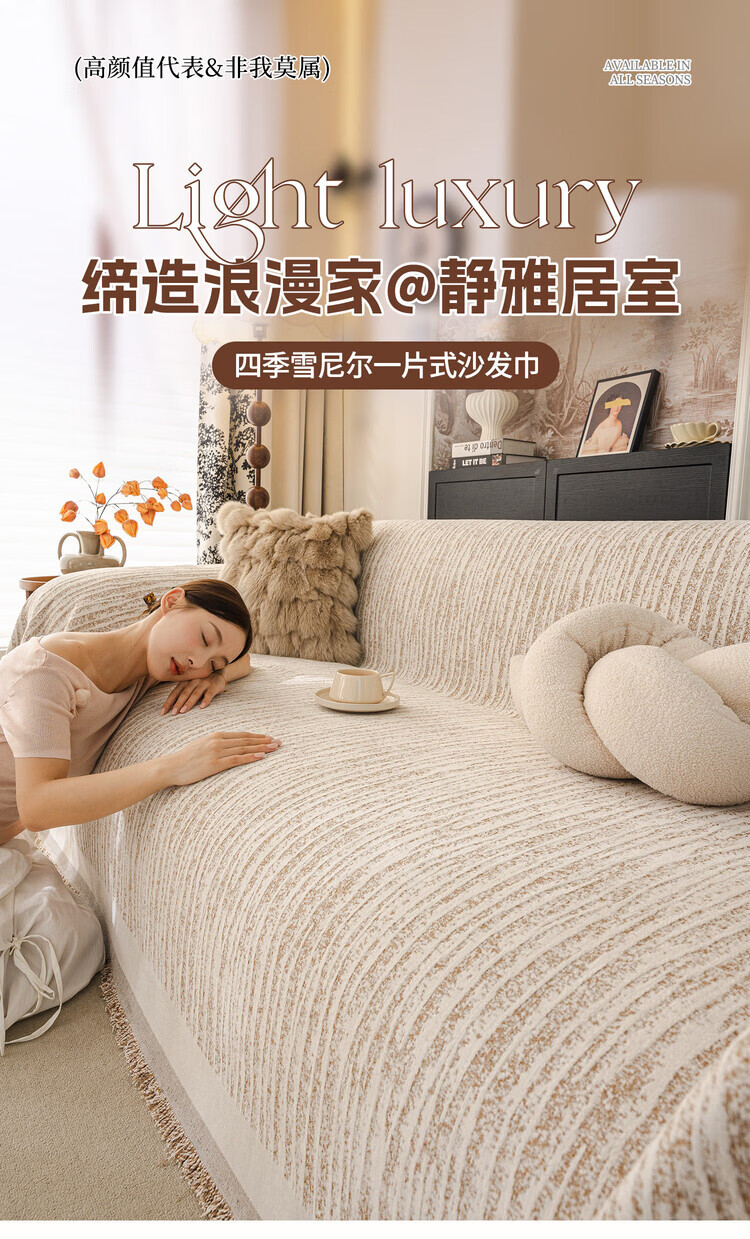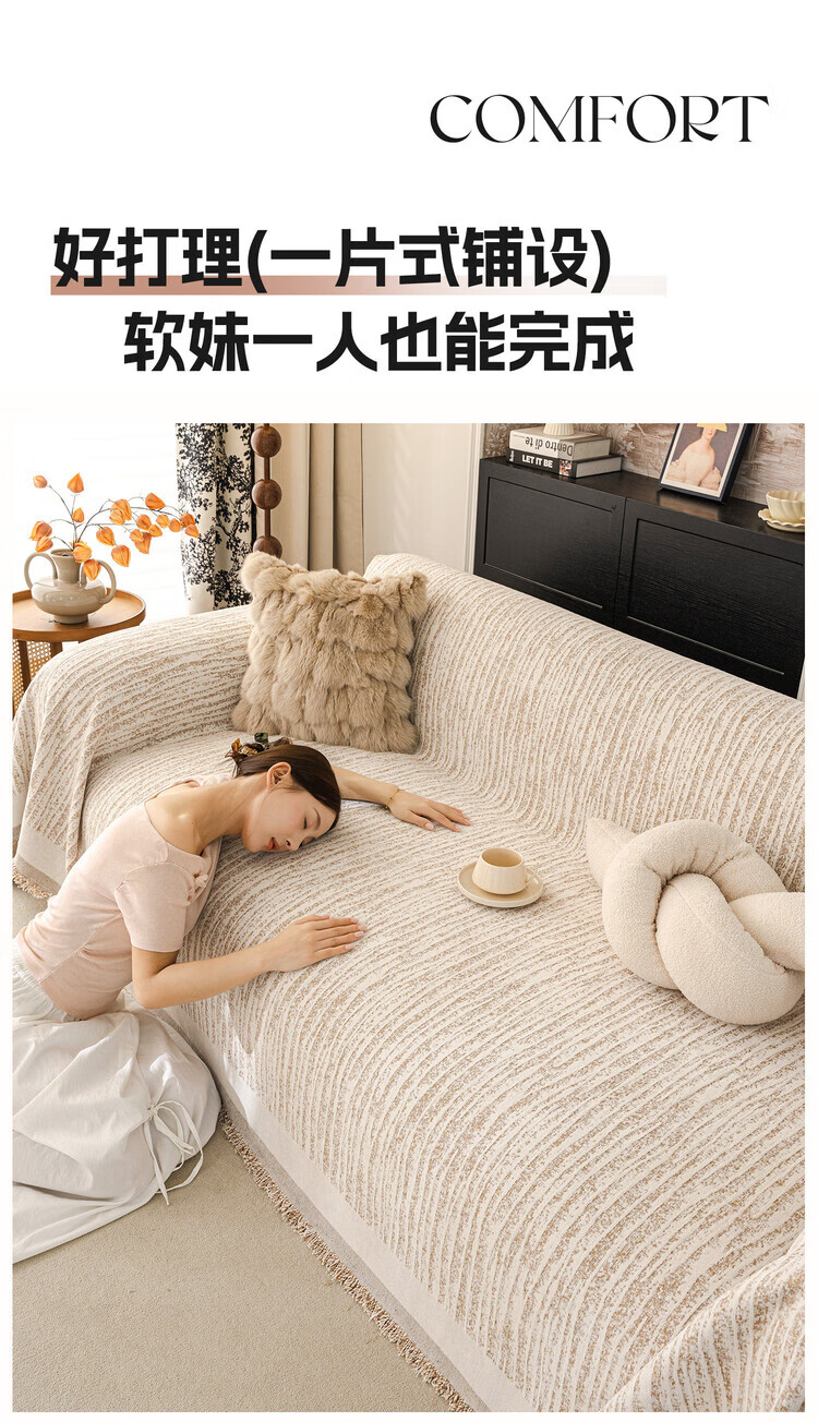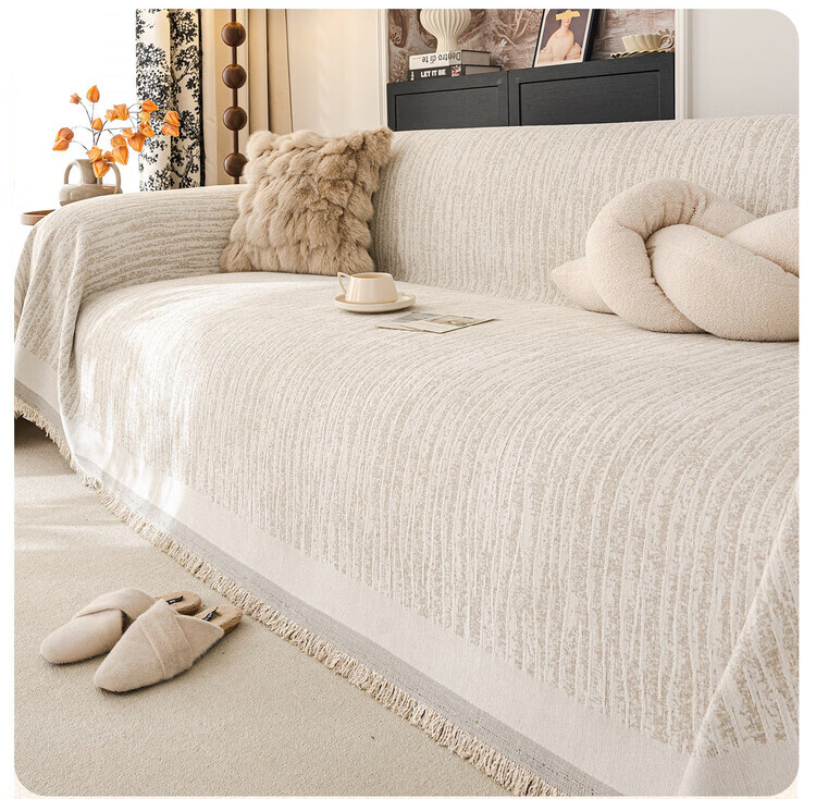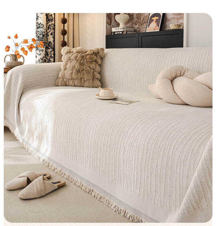 ALPLUME防猫抓沙发巾2026新款一整张全盖防滑四季通用法式奶油风盖布毯巾 碗柔-米白【自然肌理 耐磨防猫抓】 180*480cm【适合大五人位】