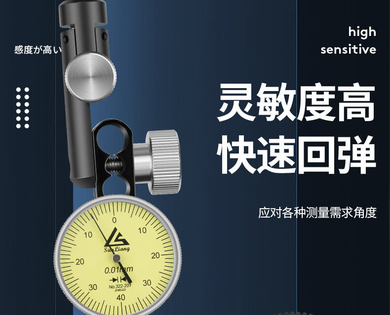 三量(sanliang)正品三量0-0.8mm杠杆百分表高精度机械测针万向校表头一套表头1丝 322-202S 0-0.8mm小表盘(铜壳红宝石款) 无规格