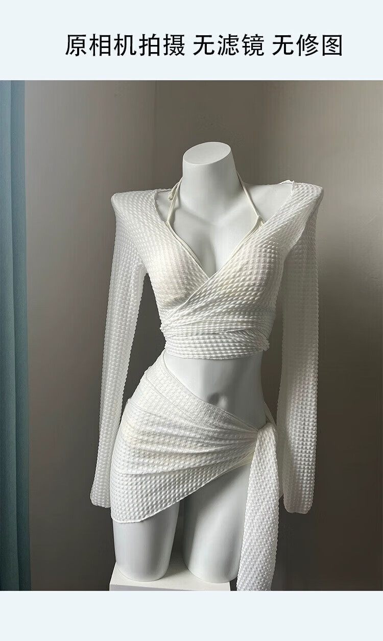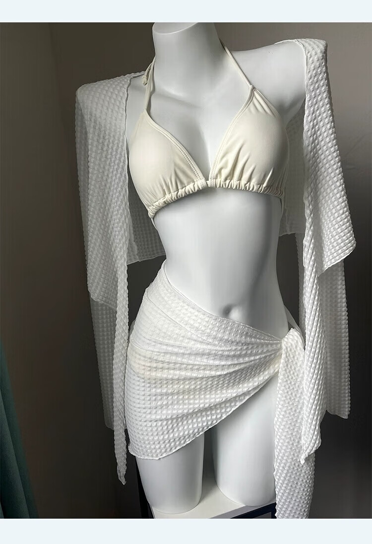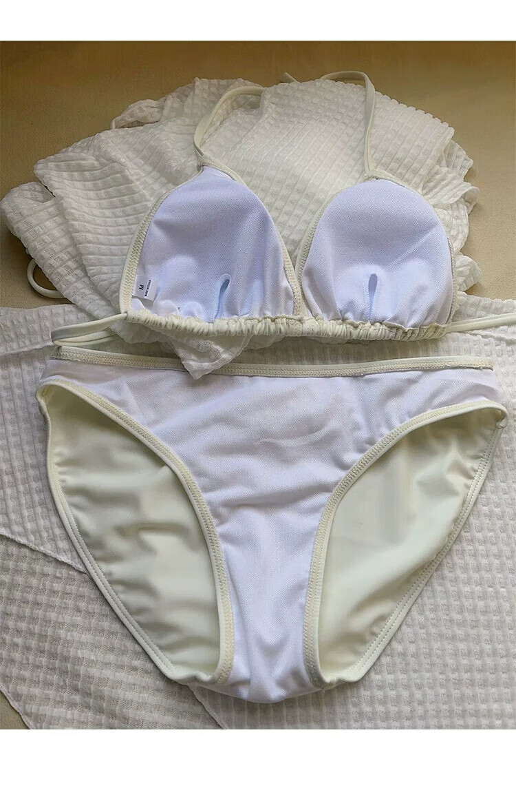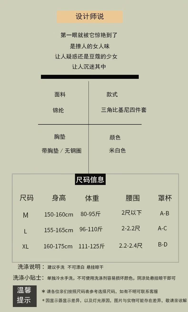 东方骆驼比基尼泳衣女2025新款四件套感白色性感分体泳衣三亚度假温泉 米白色 S 建议体重70-90斤