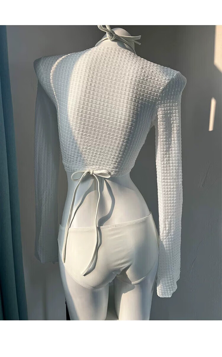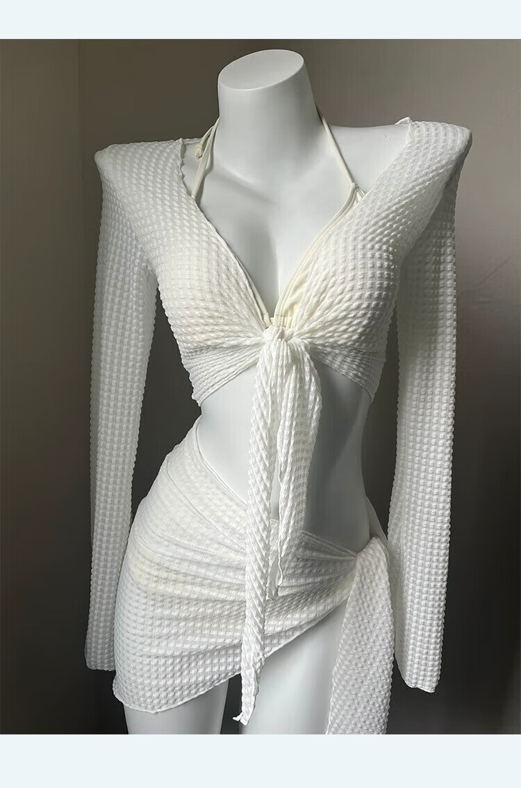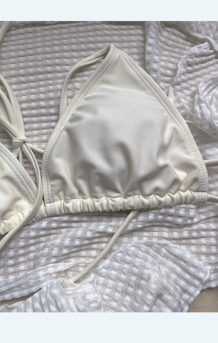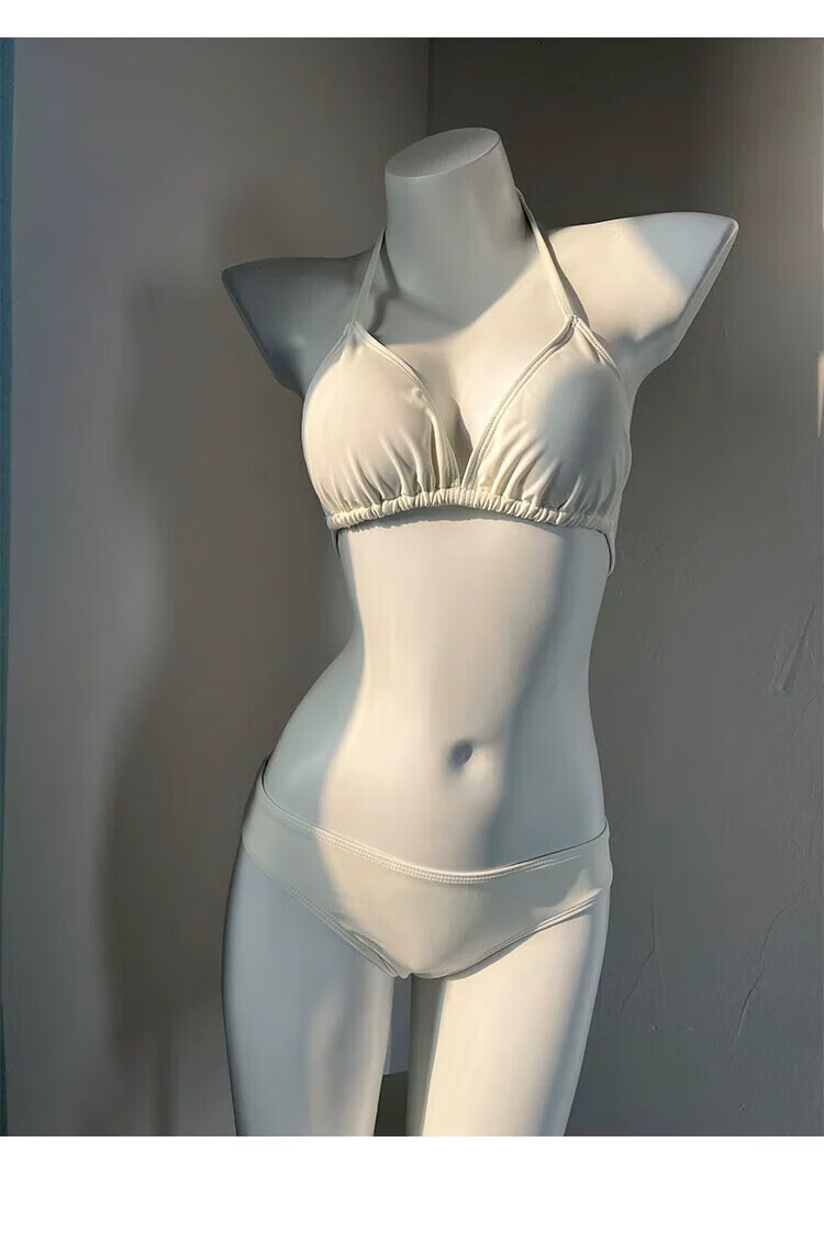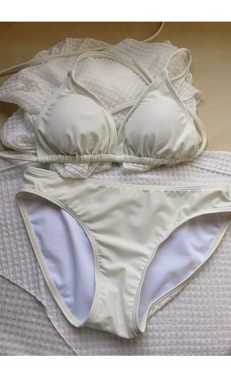 东方骆驼比基尼泳衣女2025新款四件套感白色性感分体泳衣三亚度假温泉 米白色 S 建议体重70-90斤